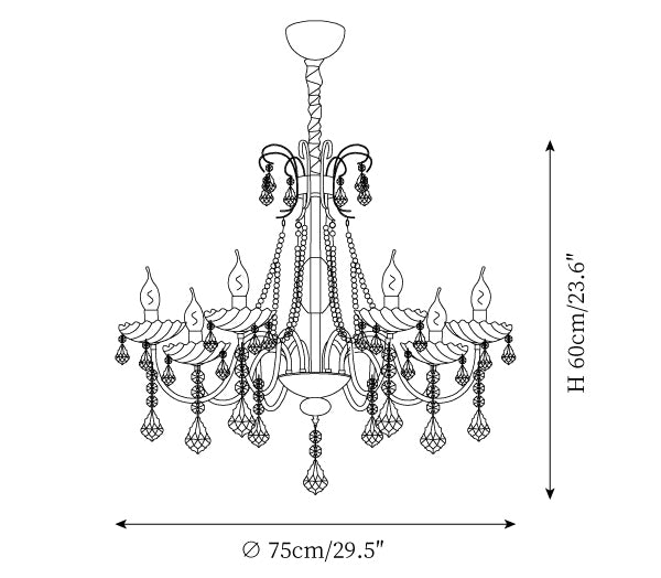 - 8-Lights Size: Dia 75cm x H 60cm / ∅ 29.5″ x H 23.6"