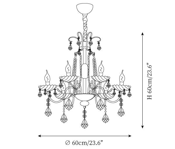 - 6-Lights Size: Dia 60cm x H 60cm / ∅ 23.6″ x H 23.6"