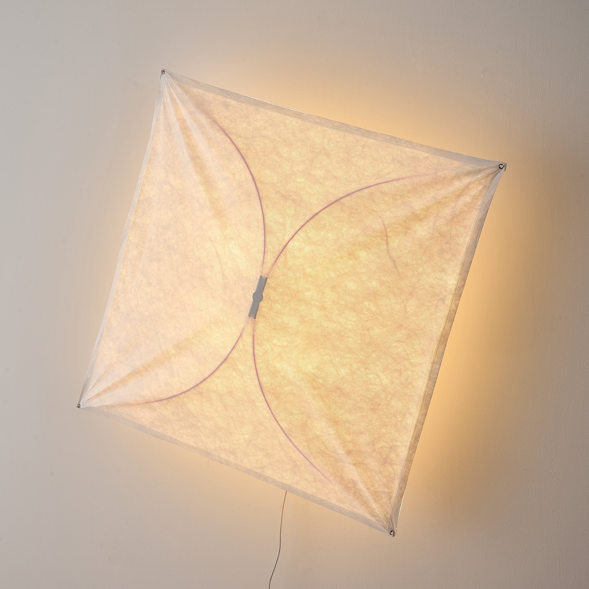 Elevate your space with the Ariette Kite Wall Lamp! Crafted with two soft fabric squares and sleek fiberglass rods, this square silhouette offers a visually stunning statement. The hidden light source casts a warm, ambient glow to create a cozy and inviting atmosphere. Perfect for any room, bring sophistication and style to your home with the Ariette Wall Lamp.