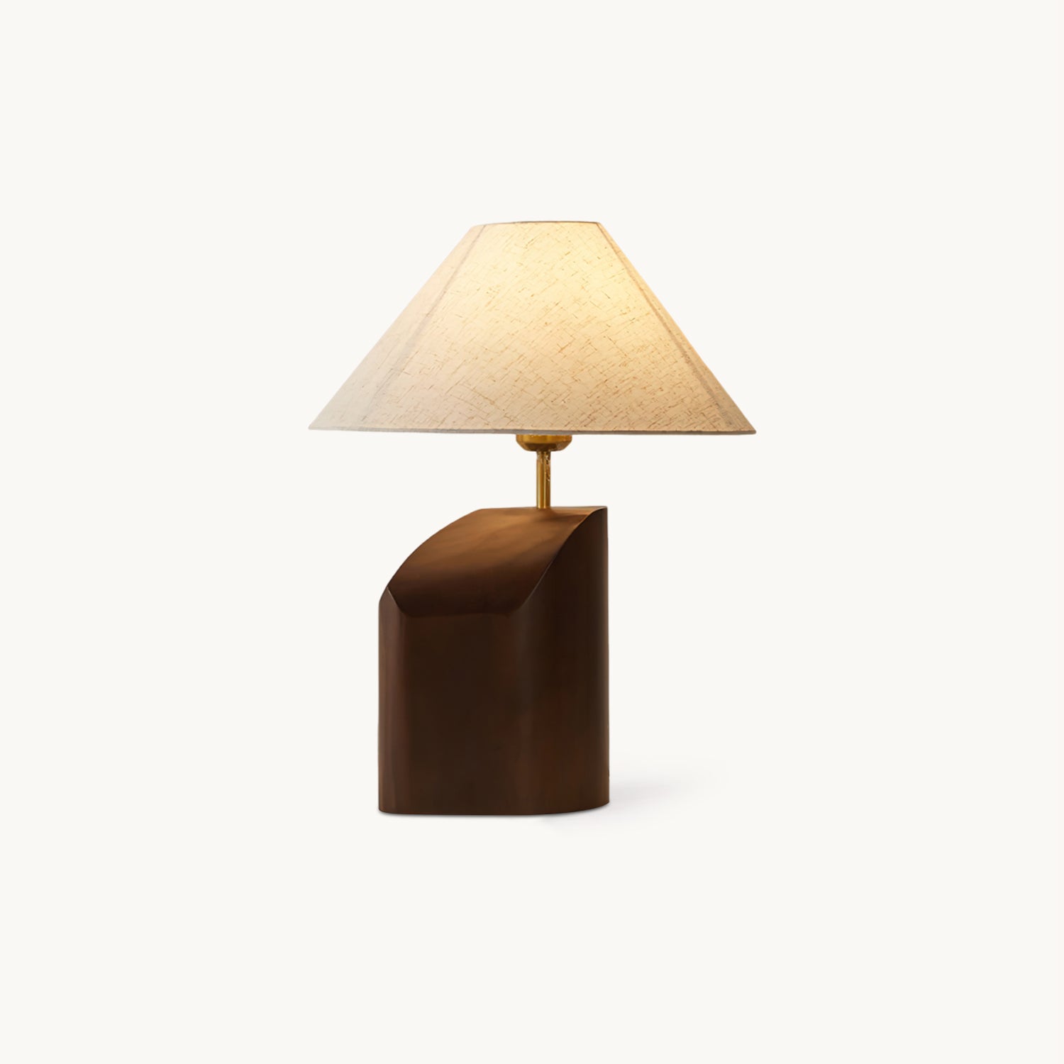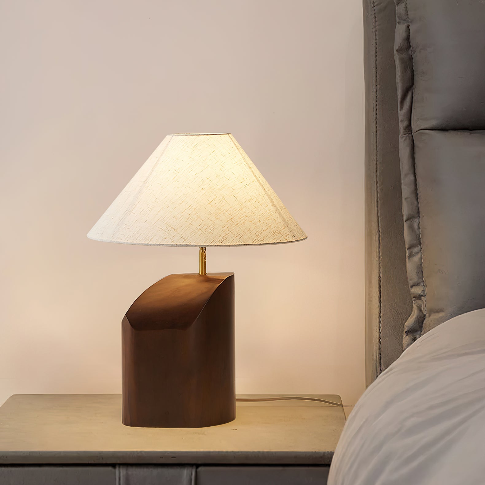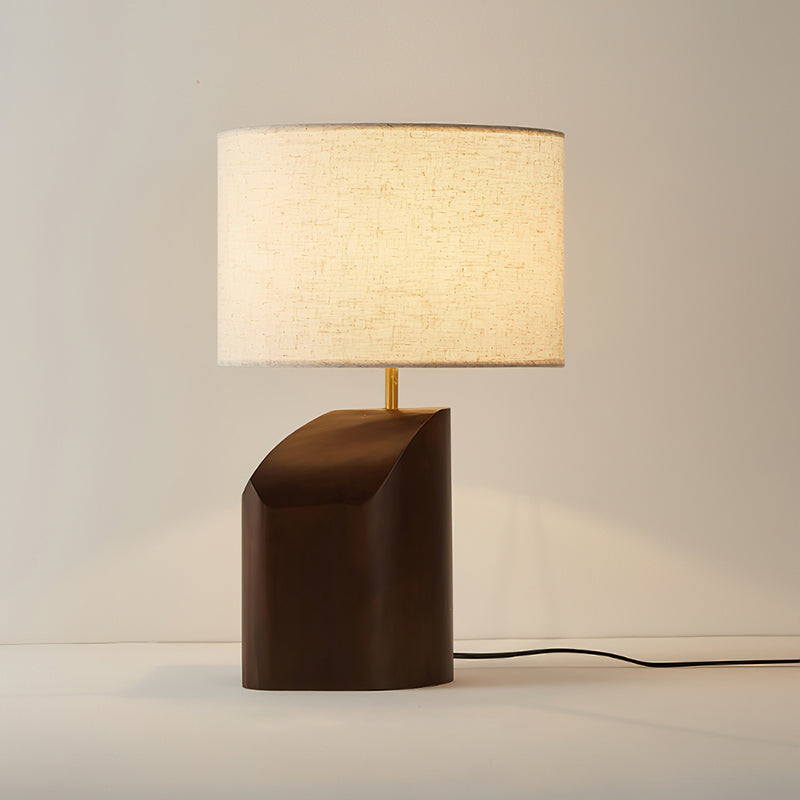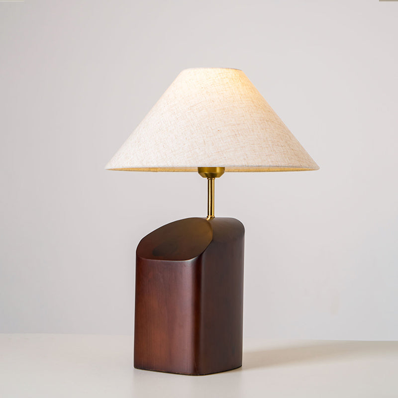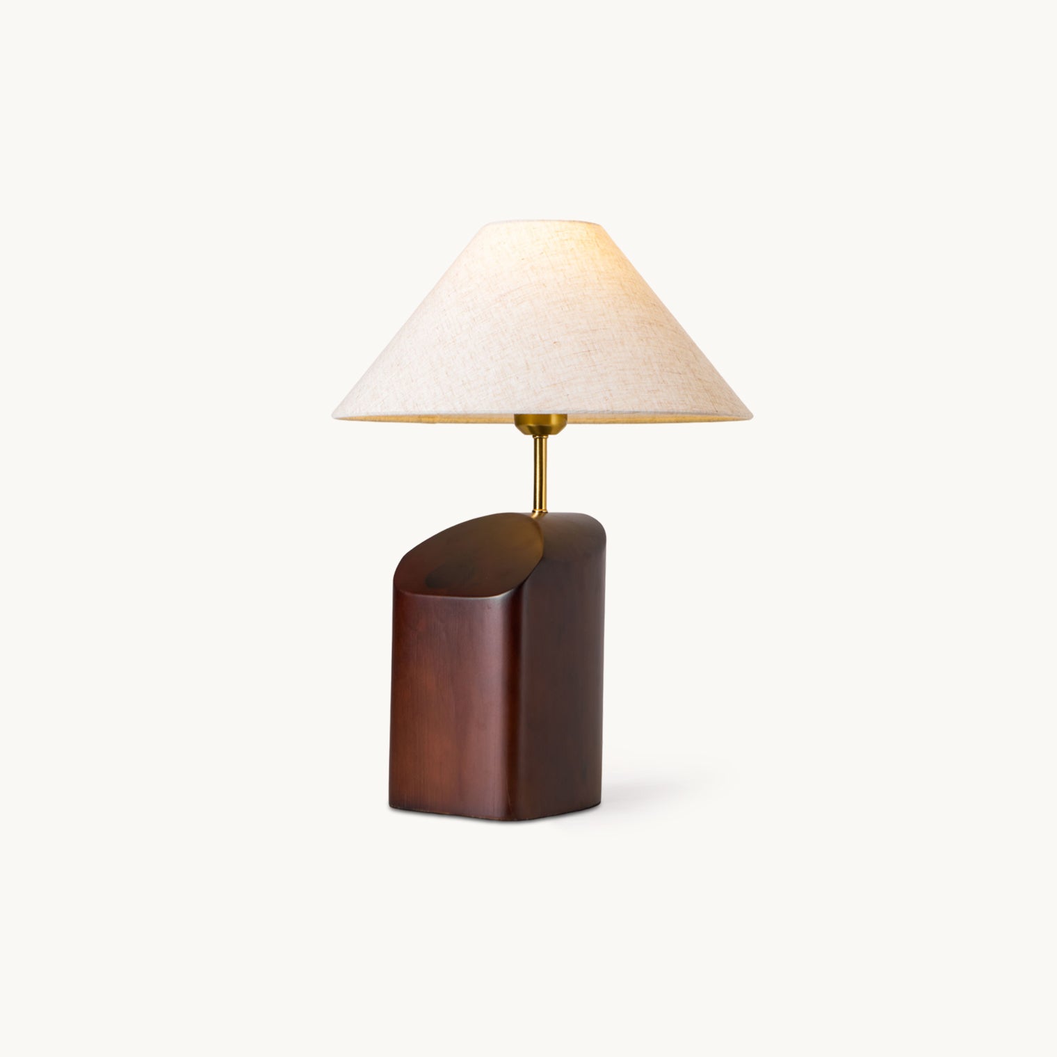 Elevate your space with the Arouca Table Lamp from Mooijane. The sculptural walnut wood base adds a touch of modern elegance, while the asymmetrical curve and warm fabric lampshade create a sophisticated ambience. Perfect for a bedroom, reading nook, or any modern living area.
