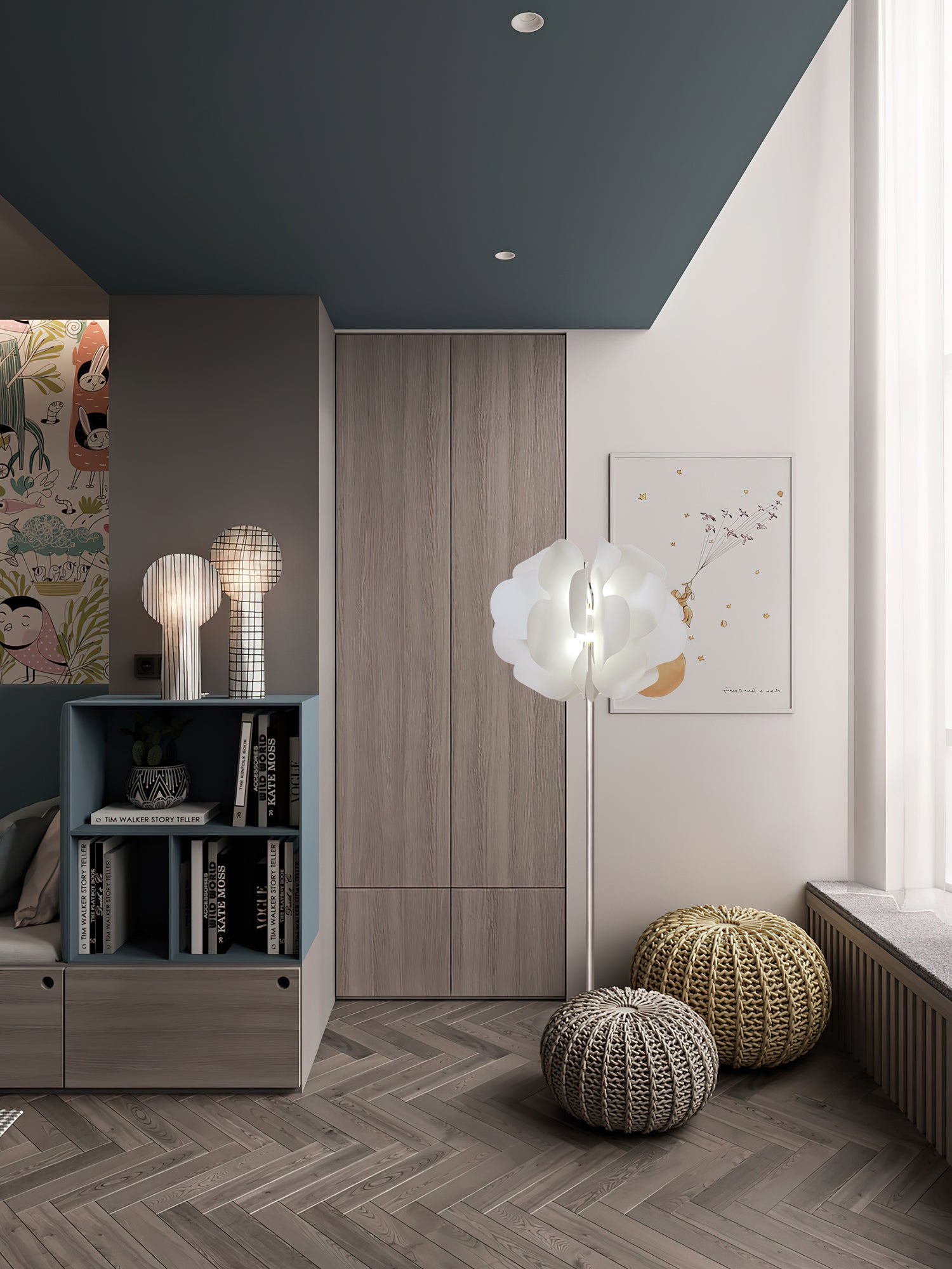 - Lampshade: White.