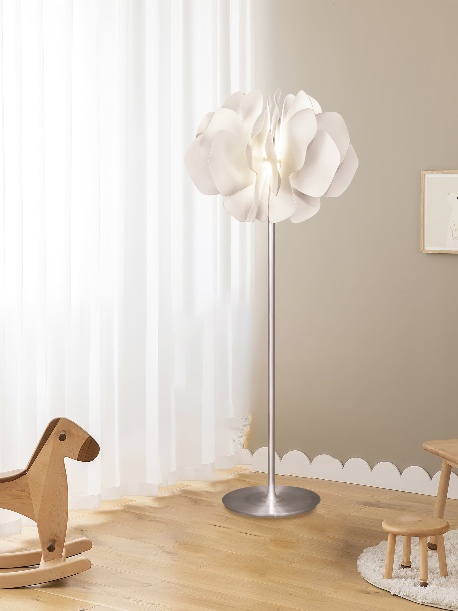Bring subtle sophistication and modern flair to any room with this Art Acrylic Flower Floor Lamp. The graceful flower structure is crafted from acrylic and possesses a beautiful shine that adds an effortless touch of luxury to any space. An ideal addition to any home or workplace, this lamp is sure to enchant.