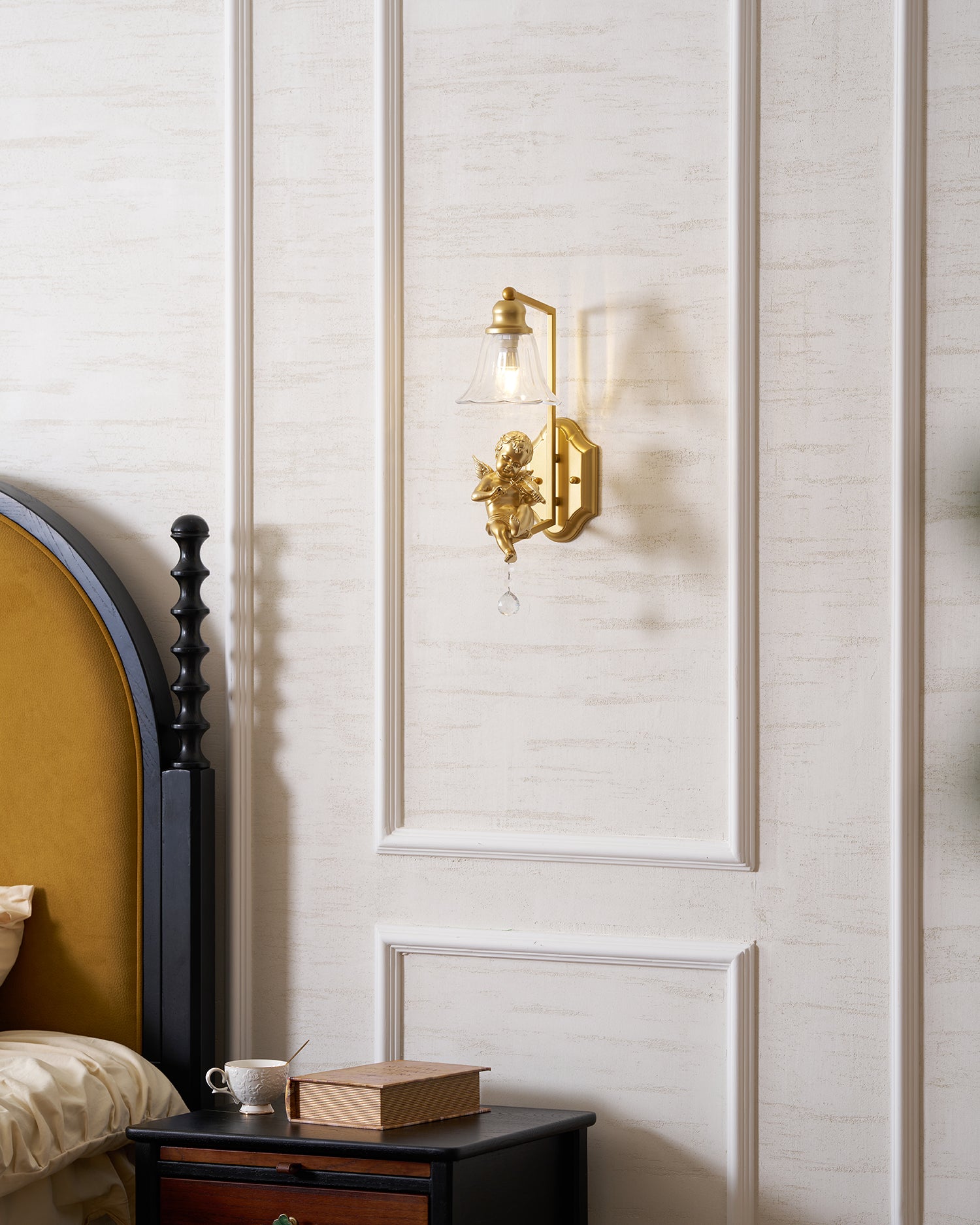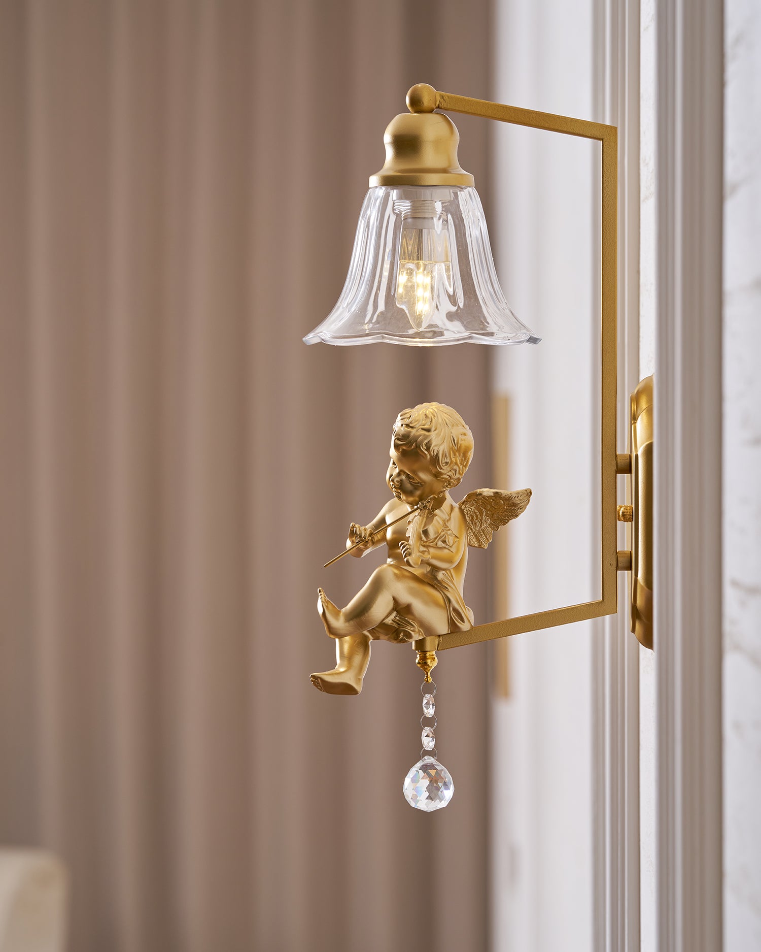 Light up your space with the Art Angel Wall Lamp. Crafted with a precious art glass lampshade and precise resin technology, this angelic wall light creates a warm and romantic ambience. Subtle curves and elegant curves, the carefully designed lamp is filled with gentle glows and different light effects, perfect for a night-time deviation. Let this little angel of love whisper its sweet “I love you” in your home.