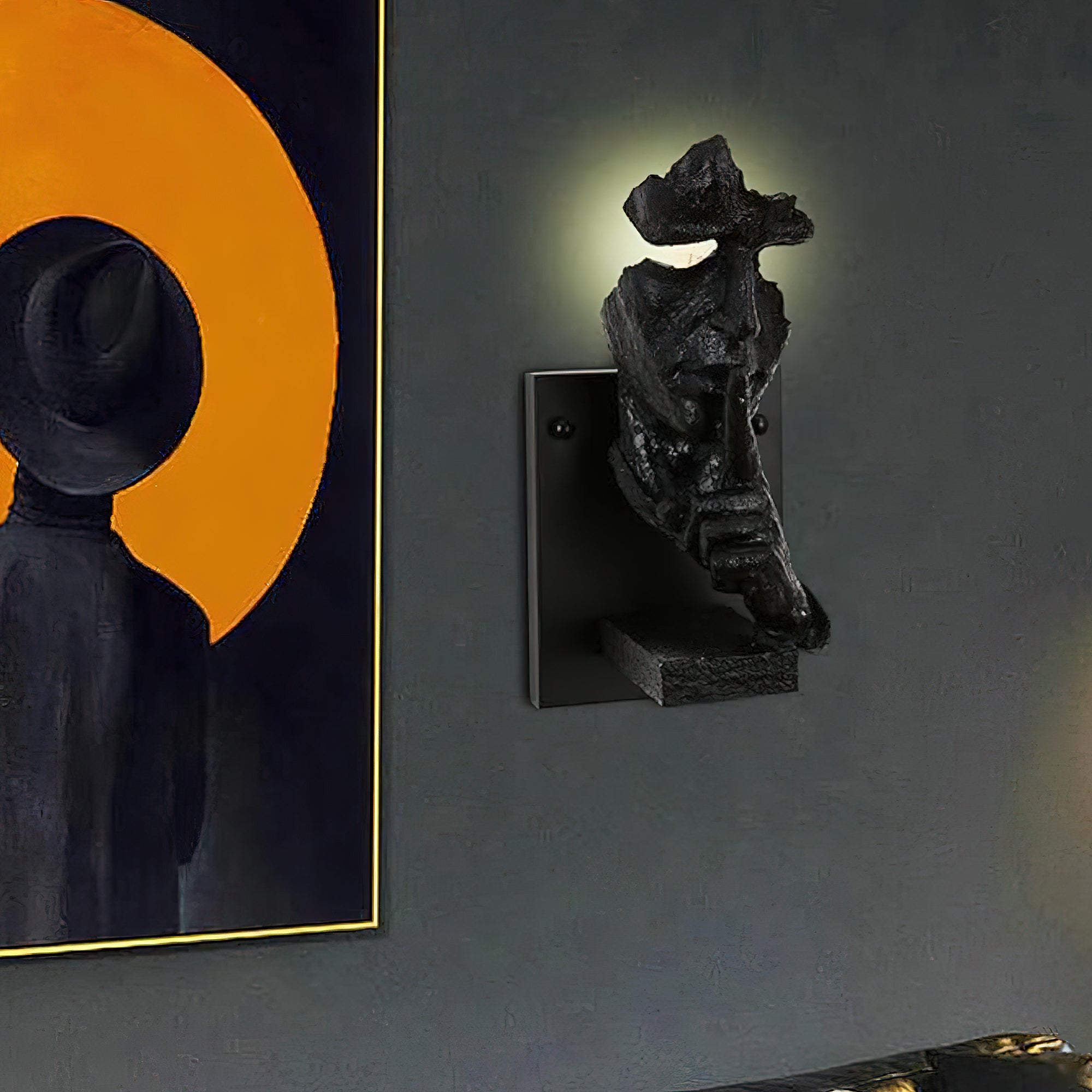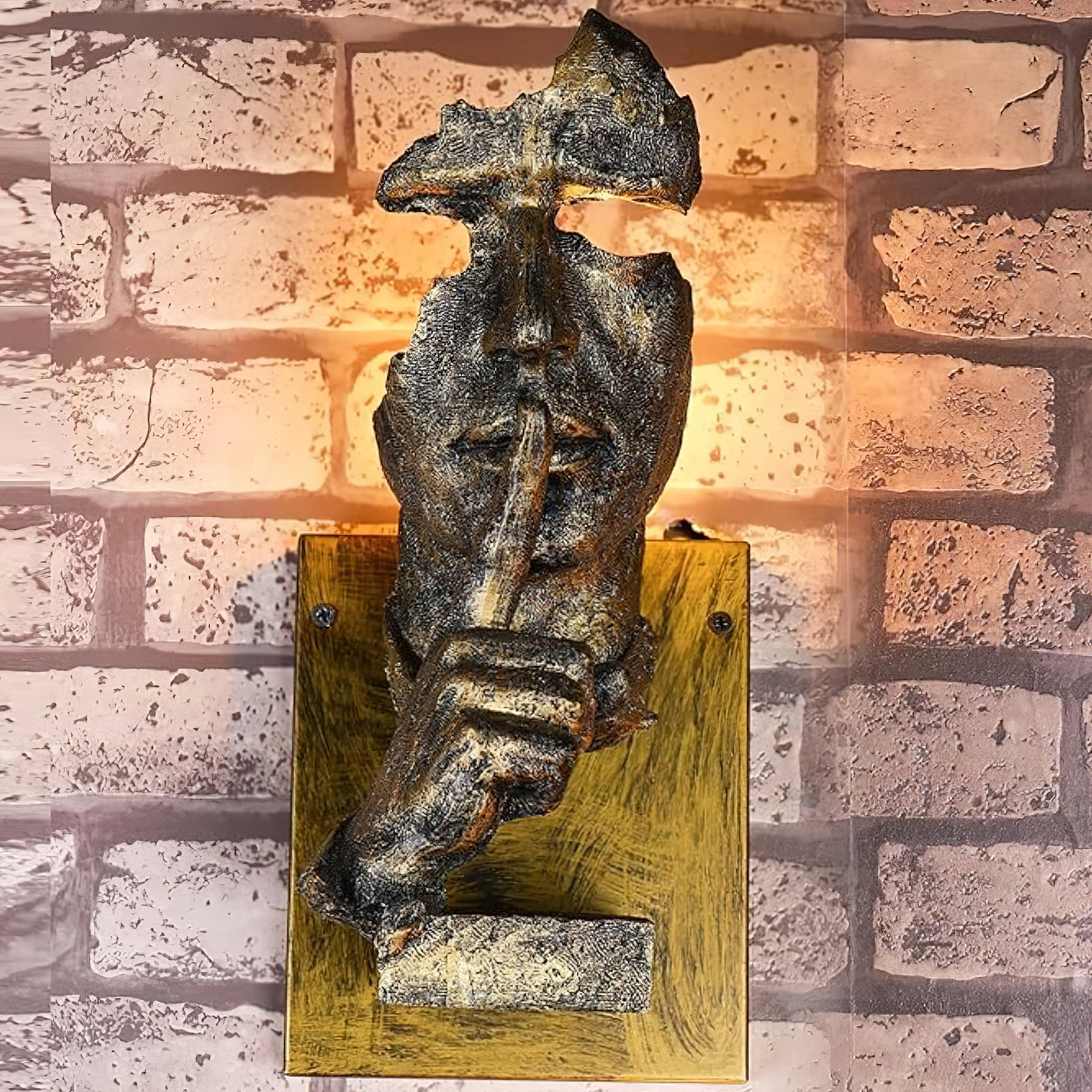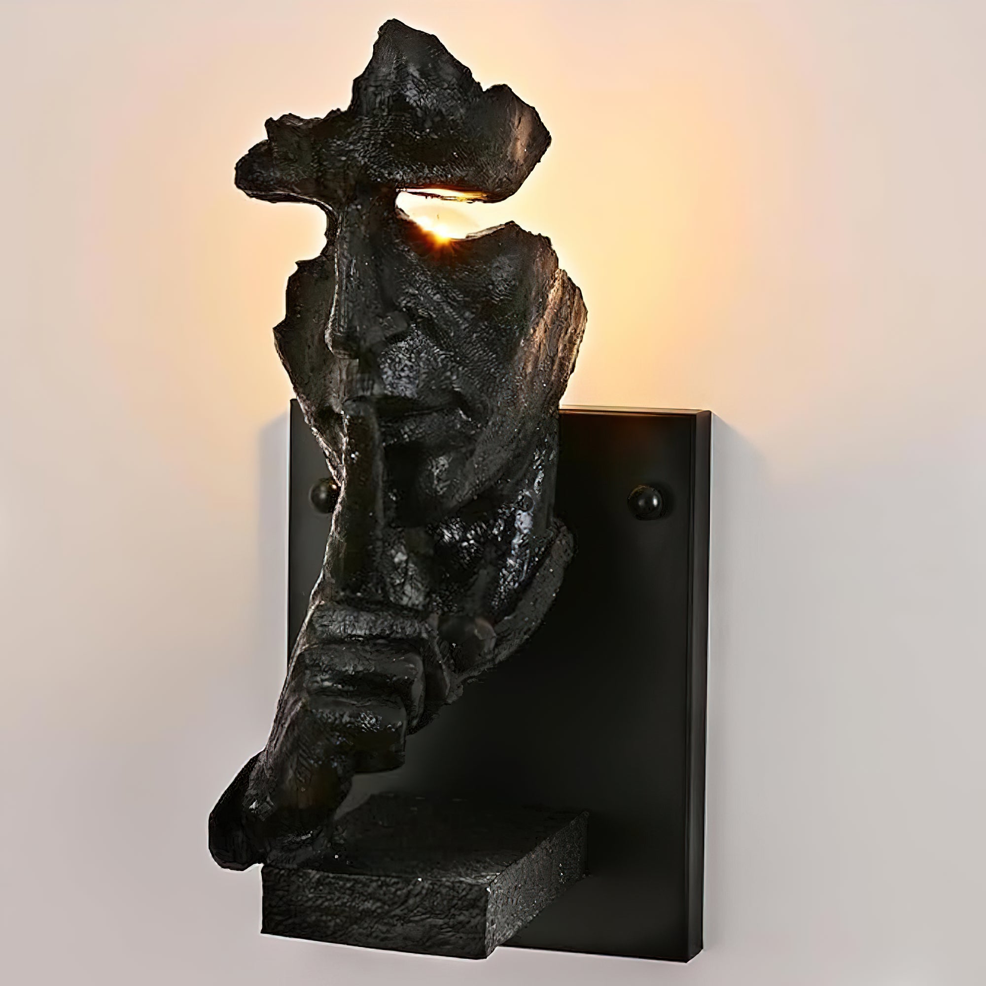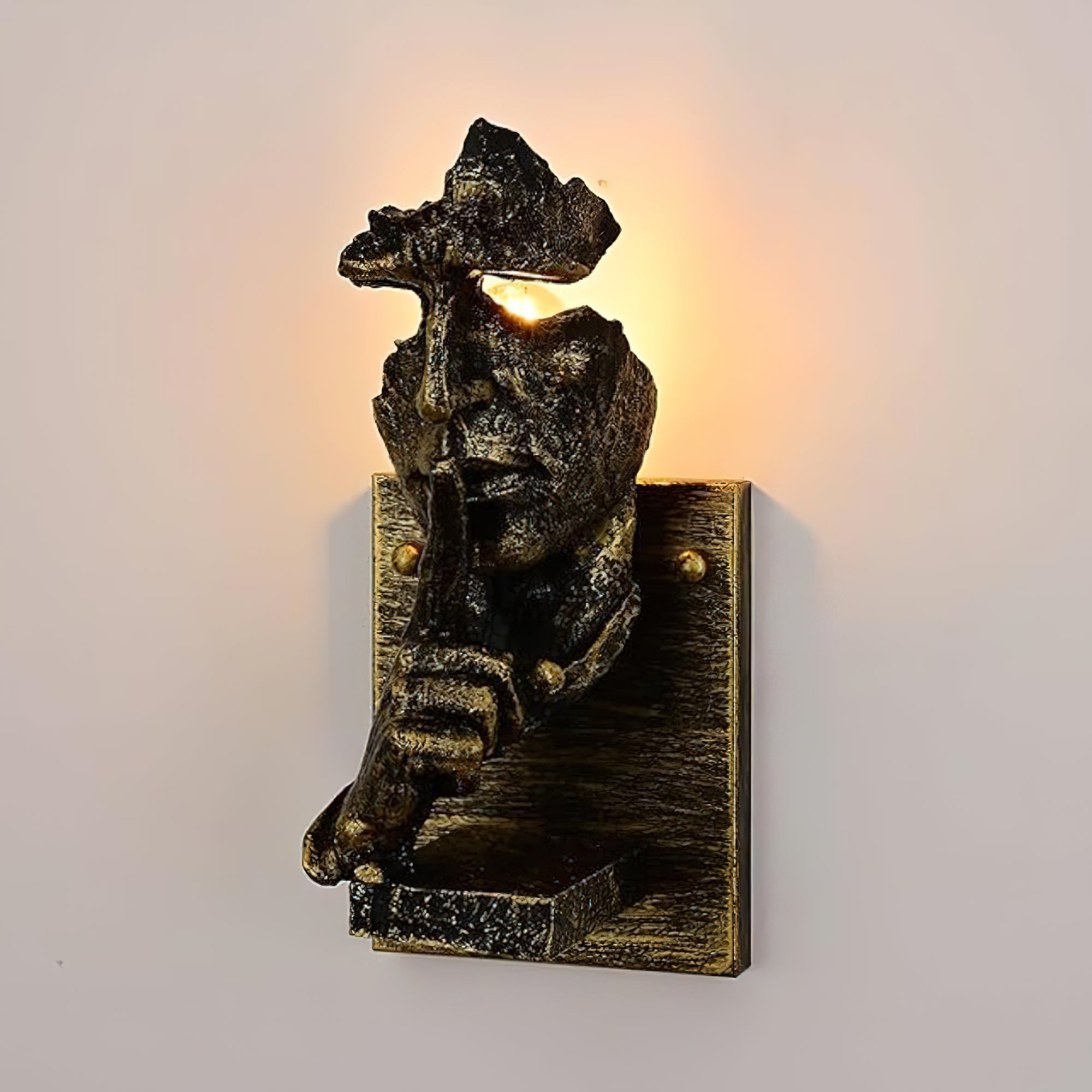 The lamp's defining feature is its artful human face design. Crafted from iron, the wall lamp presents a stylized human face that evokes a sense of intrigue and curiosity. The intricate detailing and artistic expression in the face create a visually arresting focal point on your wall.