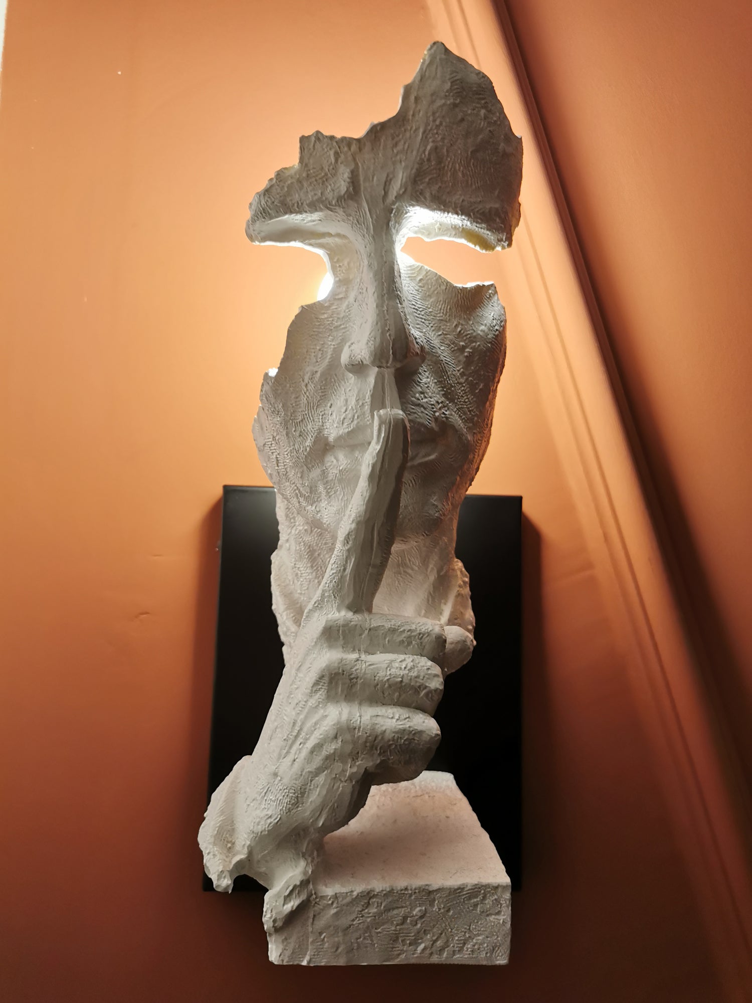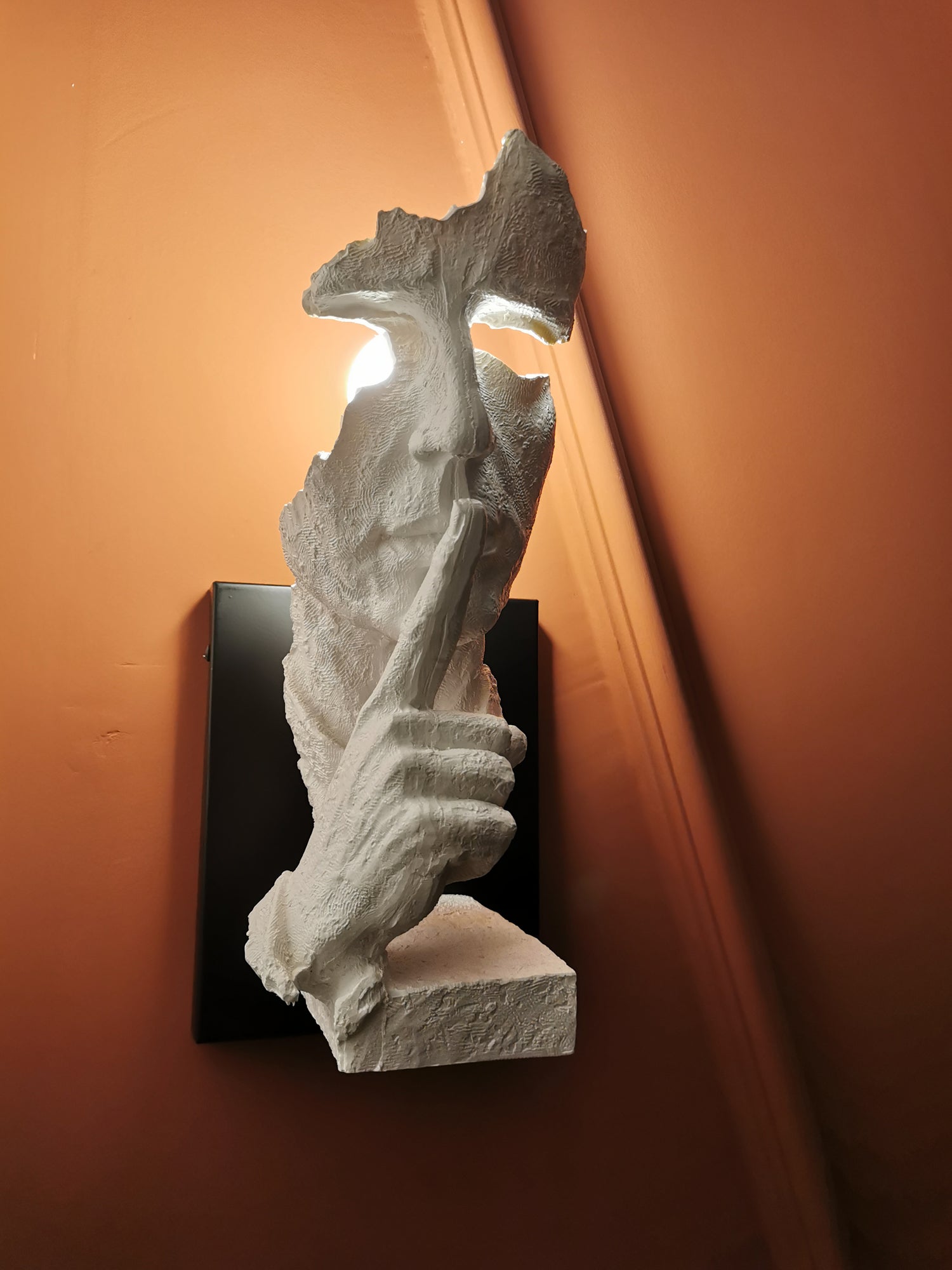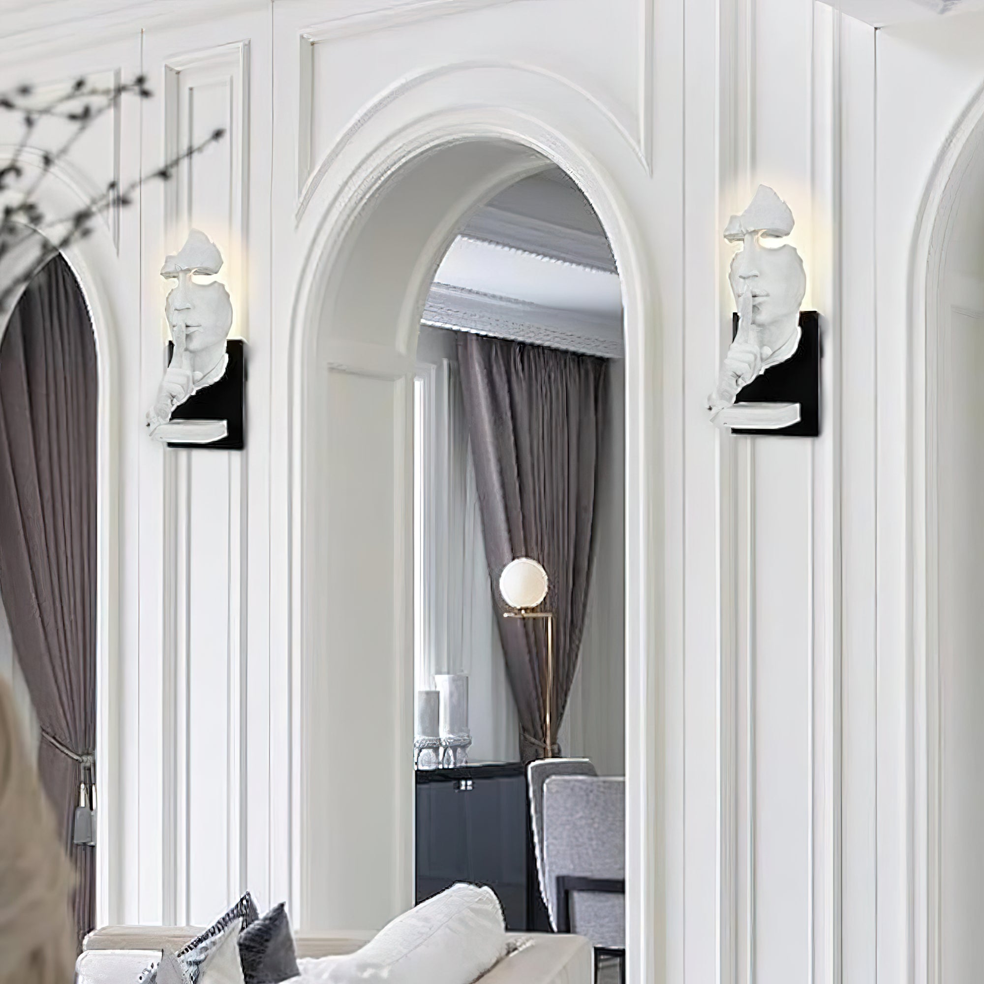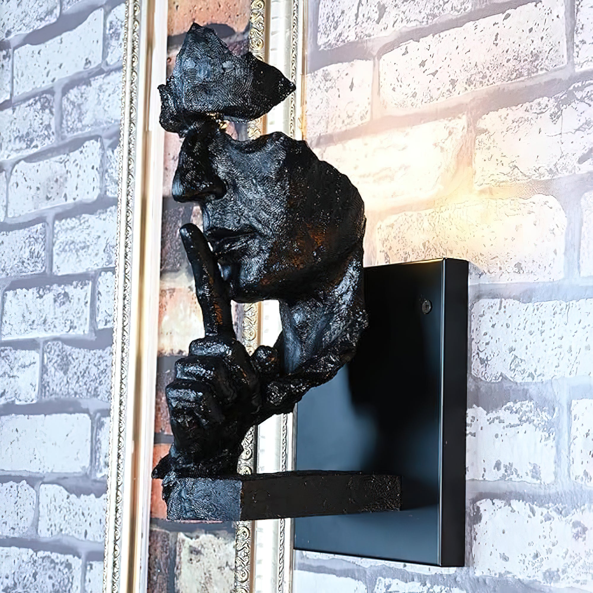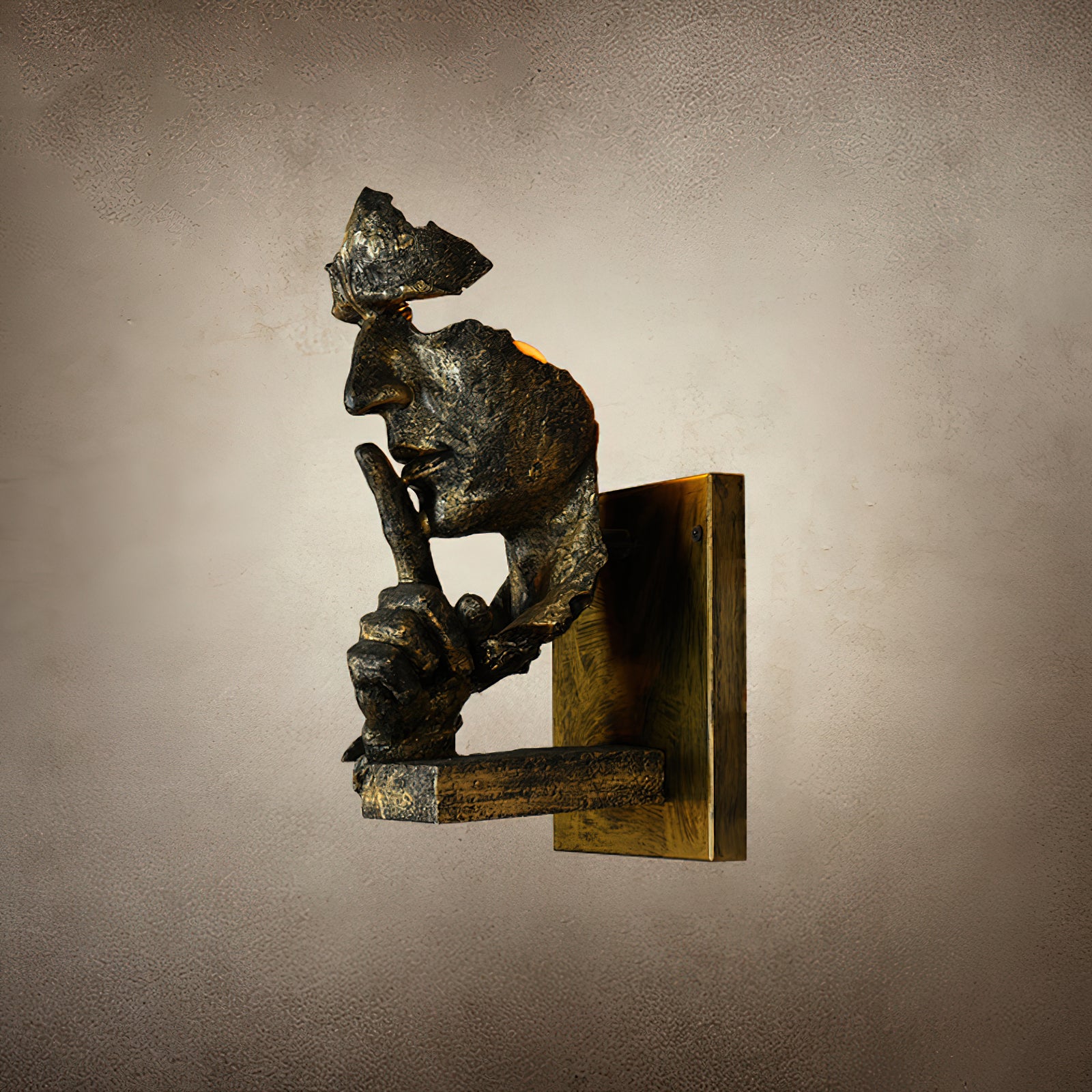 The lamp's defining feature is its artful human face design. Crafted from iron, the wall lamp presents a stylized human face that evokes a sense of intrigue and curiosity. The intricate detailing and artistic expression in the face create a visually arresting focal point on your wall.