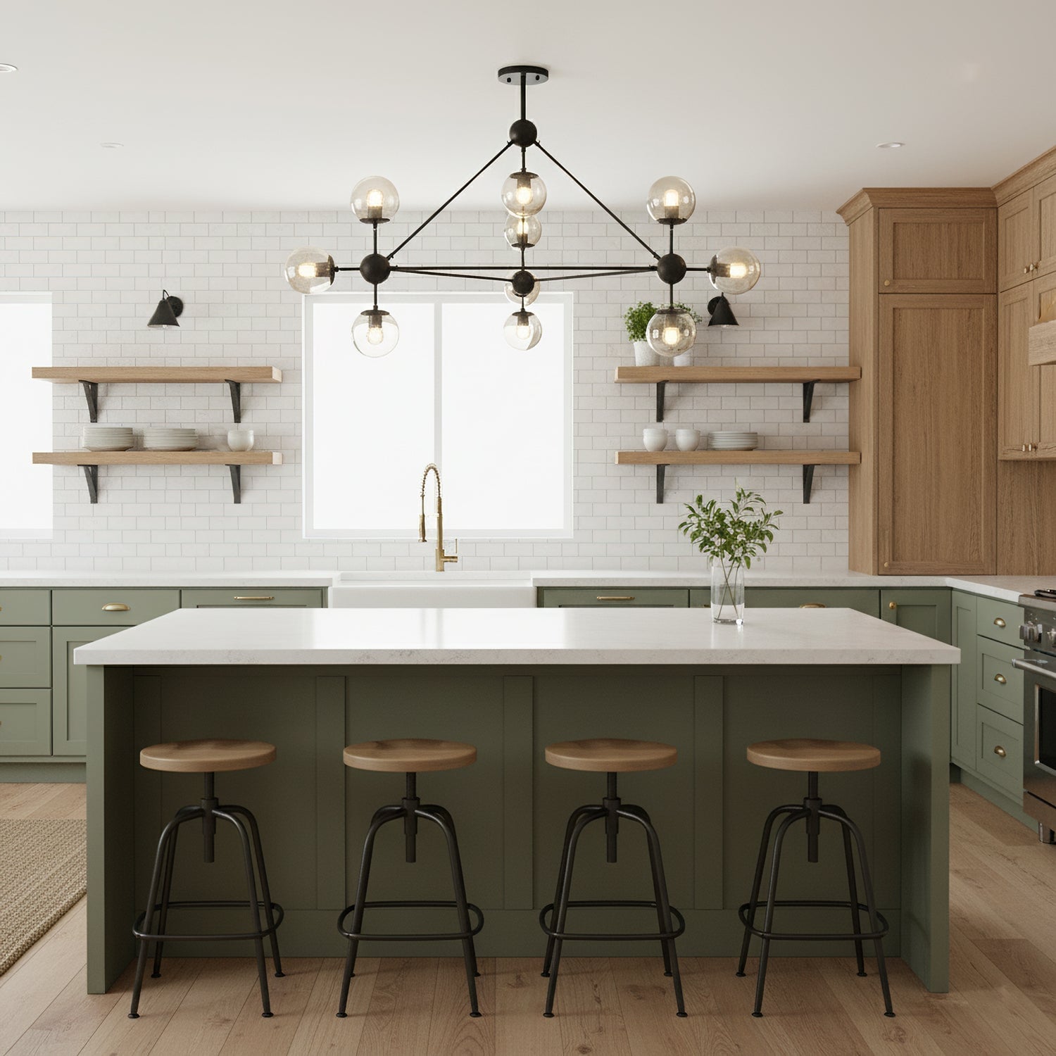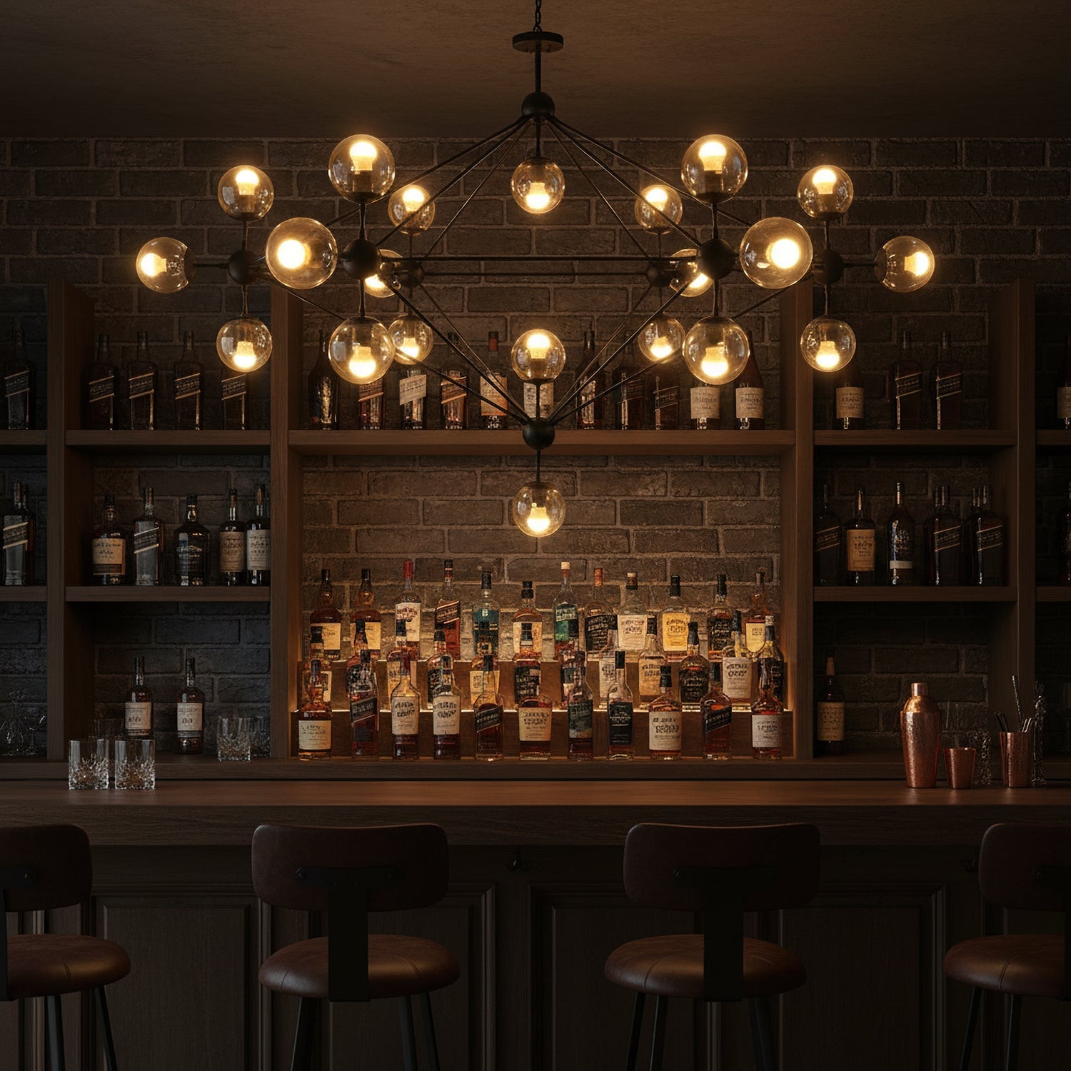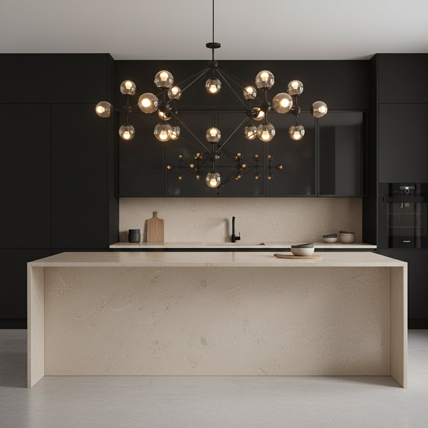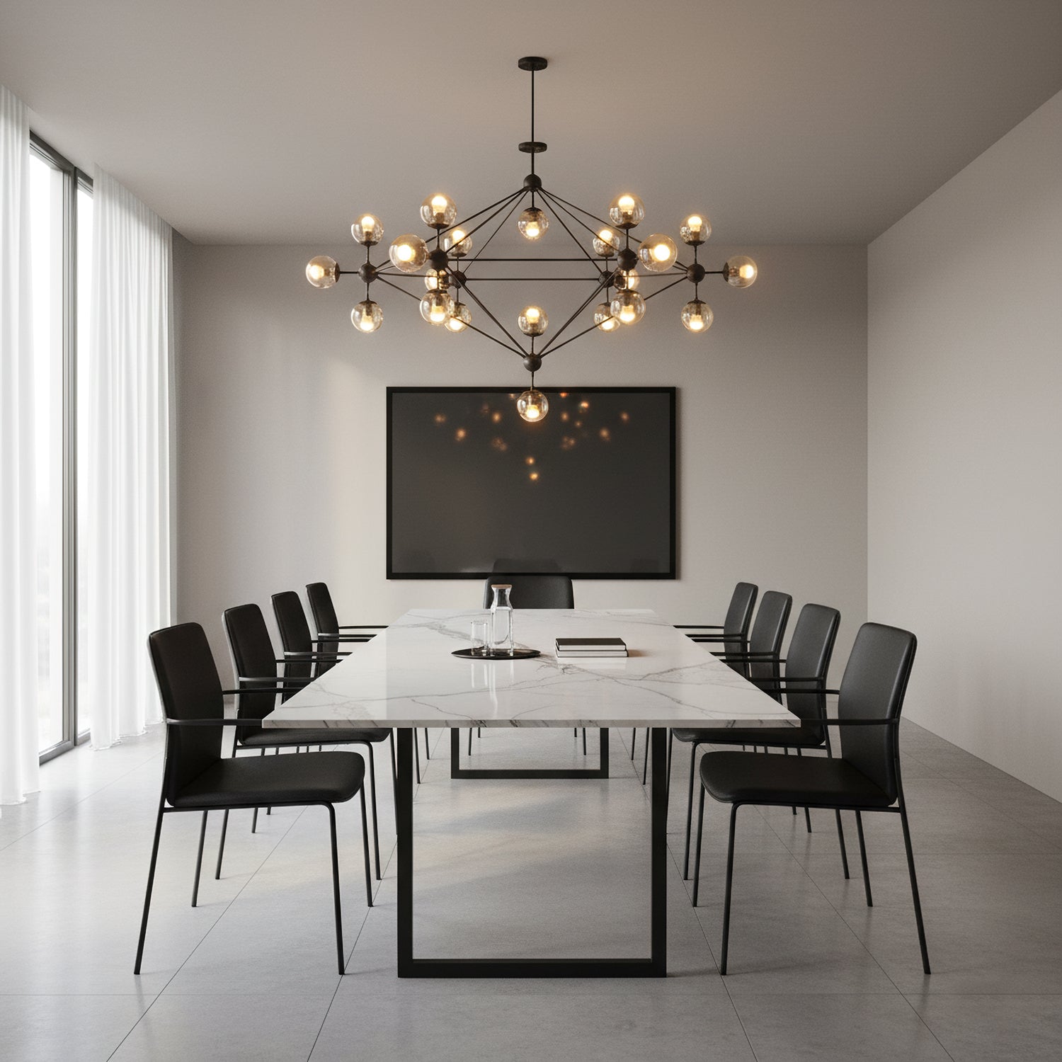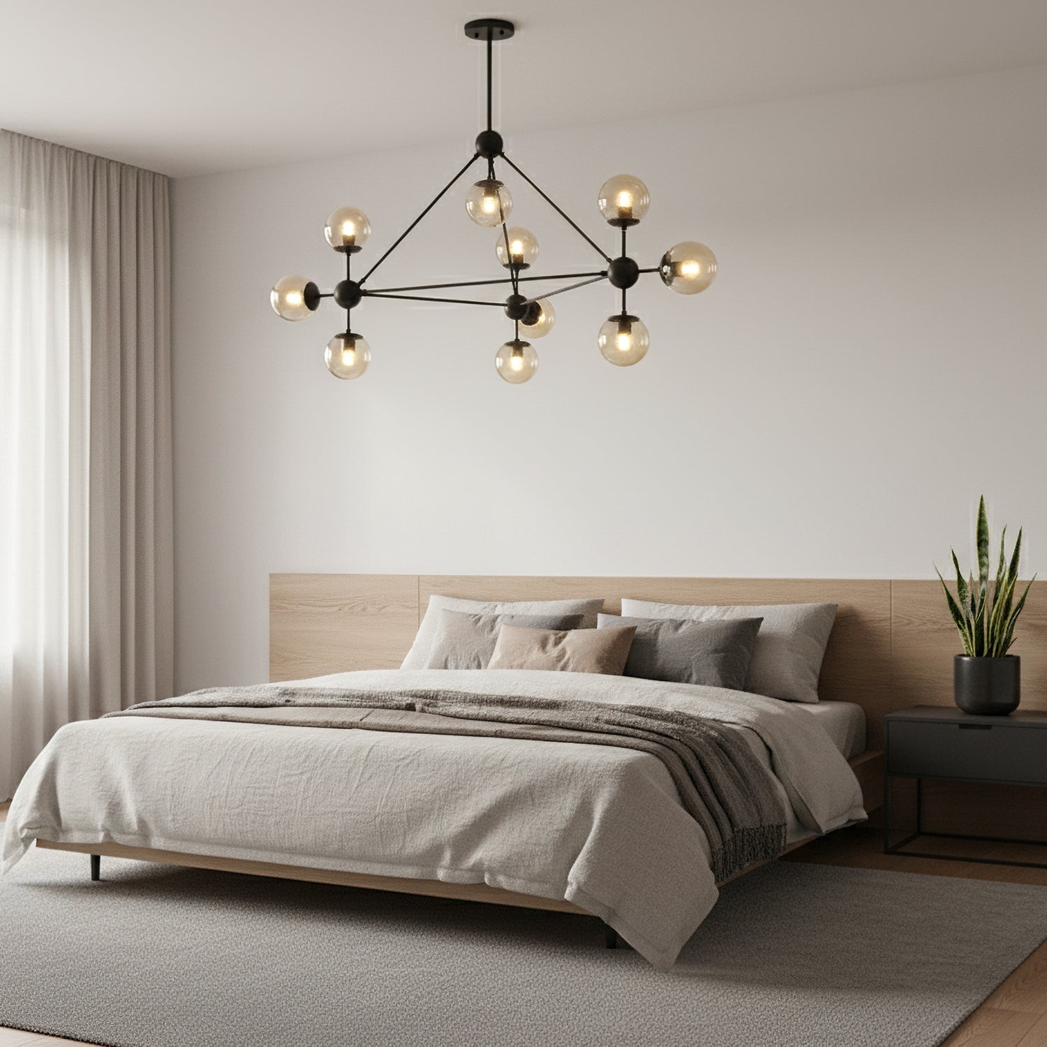 The Artemis Chandelier by Mooijane features a bold matte black iron frame that exudes a classic industrial vibe. Its architectural design, reminiscent of a deconstructed molecule or futuristic structure, makes it more than just a light—it’s a sculptural statement. Ideal for modern lofts, dining rooms, or living spaces seeking striking, contemporary character.