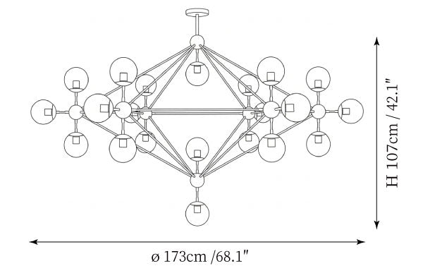 - 21-Lights Size: Dia 173cm x H 107cm / ∅ 68.1″ x H 42.1″. (3.9" suspension rod.)