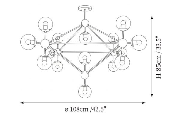 - 15-Lights Size: Dia 108cm x H 85cm / ∅ 42.5″ x H 33.5″. (3.9" suspension rod.)