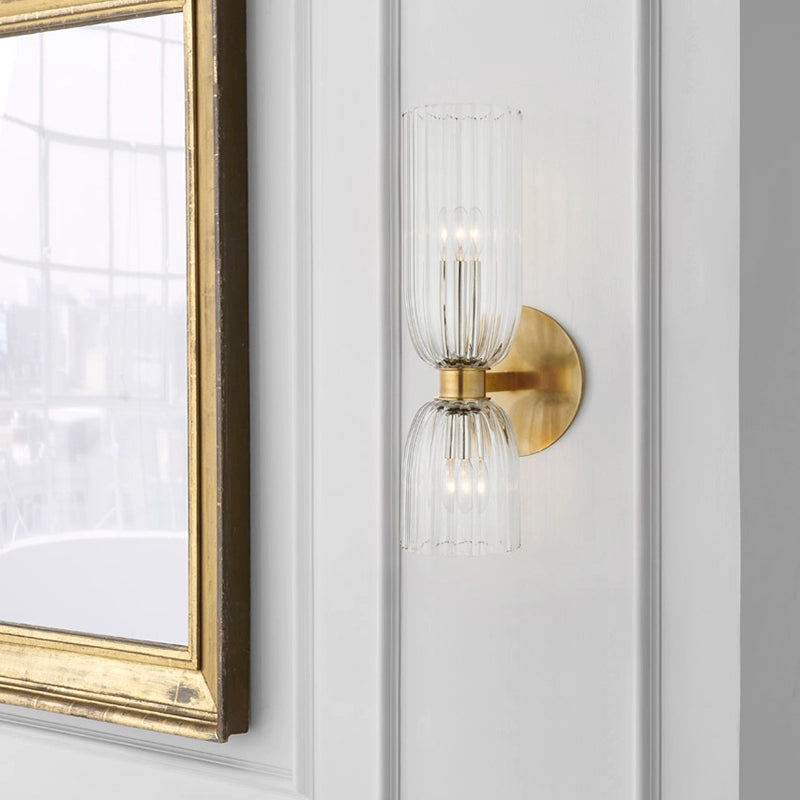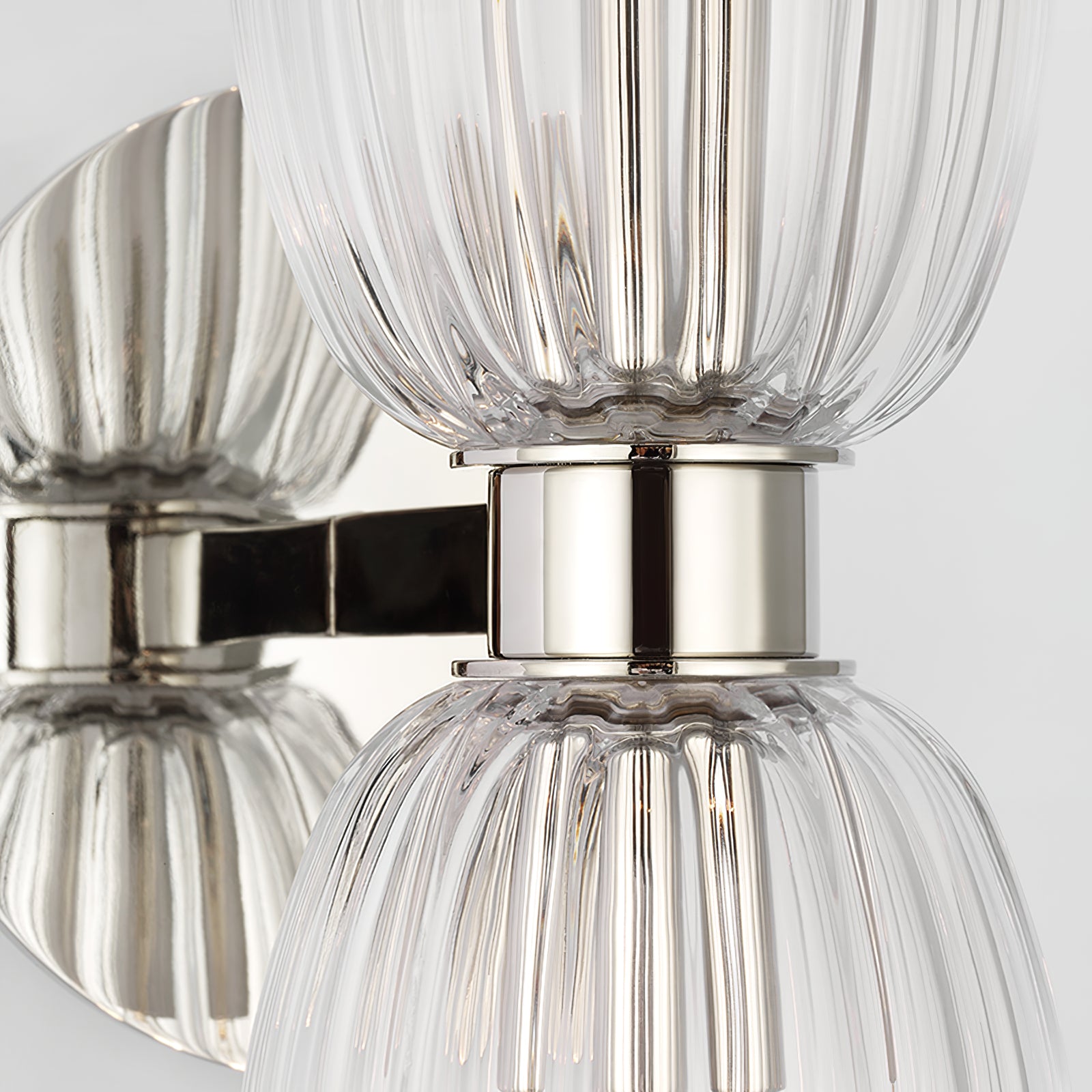 Elevate your space with the Asalea Double Bath Wall Sconce. Reinterpreting mid-century French design, this wall sconce combines clear ribbed glass with polished nickel and hand-honed bronze finishes for a sophisticated silhouette. Perfect for bathrooms and hallways, this wall sconce will add elegance and ample light to any interior style.