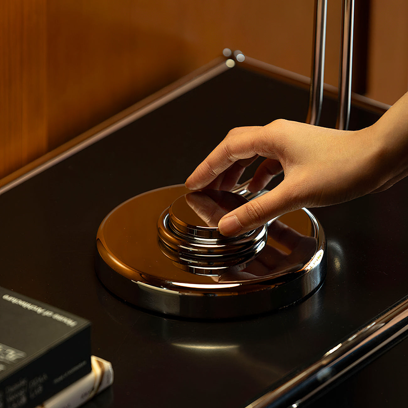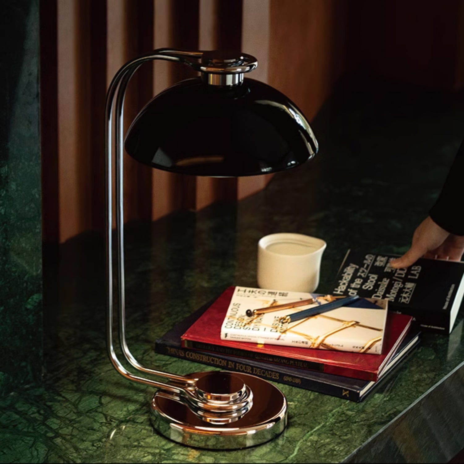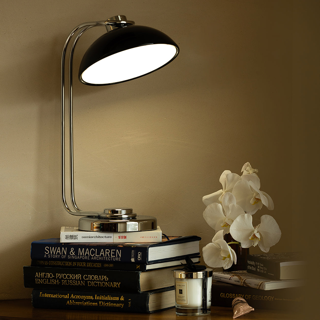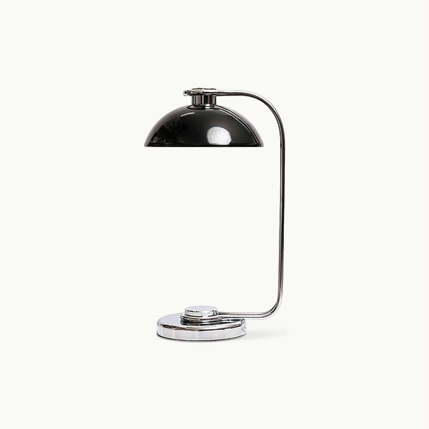 Elevate your modern space with the Athena Table Lamp from Mooijane. This striking lamp features a polished chrome base and an adjustable black dome shade, providing both style and practical lighting. Its curved arm design creates an elegant silhouette, while the adjustable positioning allows for precise lighting. Add sophistication to your workspace or bedside table with the Athena Table Lamp.