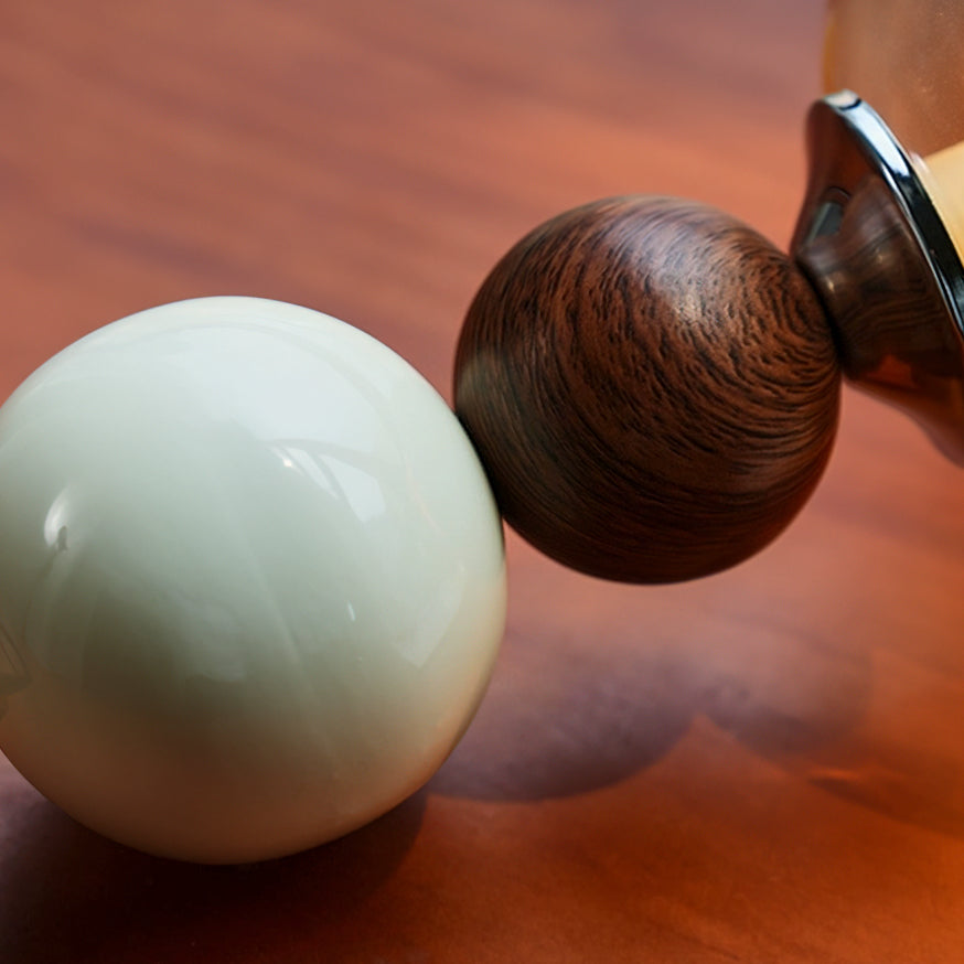 The Atlas Glass Pendant Lamp by Mooijane combines the natural warmth of wood with the elegance of glass in a refined, minimalist silhouette. A glossy top globe mirrors the smooth, solid wood centerpiece, while the clear Cognac glass shade softly envelops the light source, casting a warm, inviting glow. Perfect for dining areas, bars, or living room corners, it brings an elevated touch of elegance and comfort to any space.