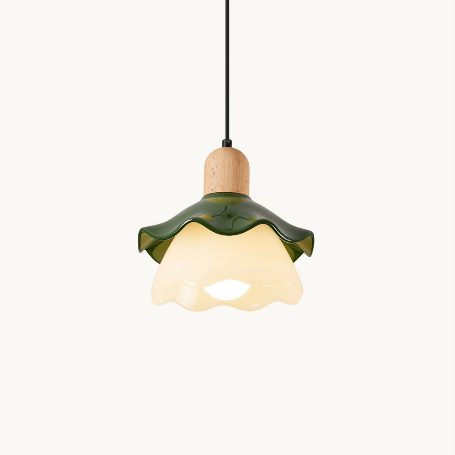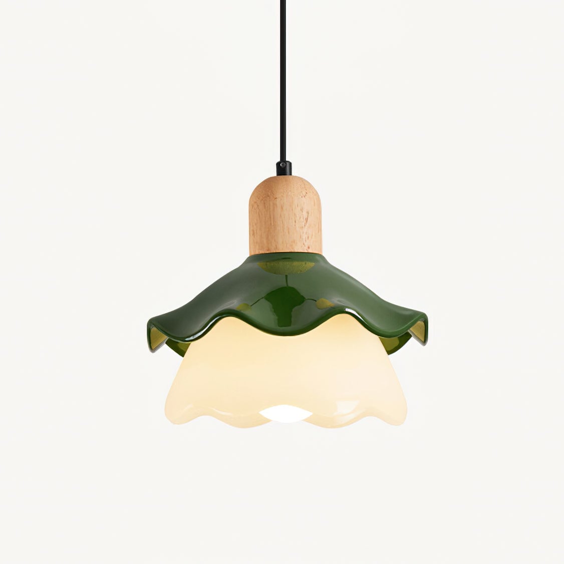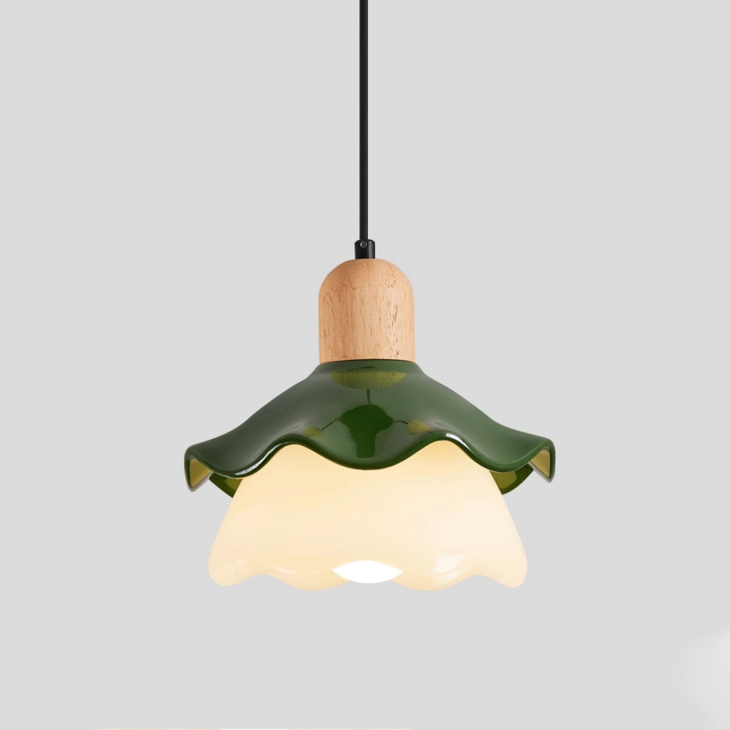 The Atolye Flower Pendant Lamp by Mooijane combines the warmth of natural wood with the elegance of modern design. Inspired by the graceful curves of a flower, its resin shade diffuses a soft, translucent glow, casting a warm and soothing halo. The wooden top showcases the natural grain, adding organic character and contrast.