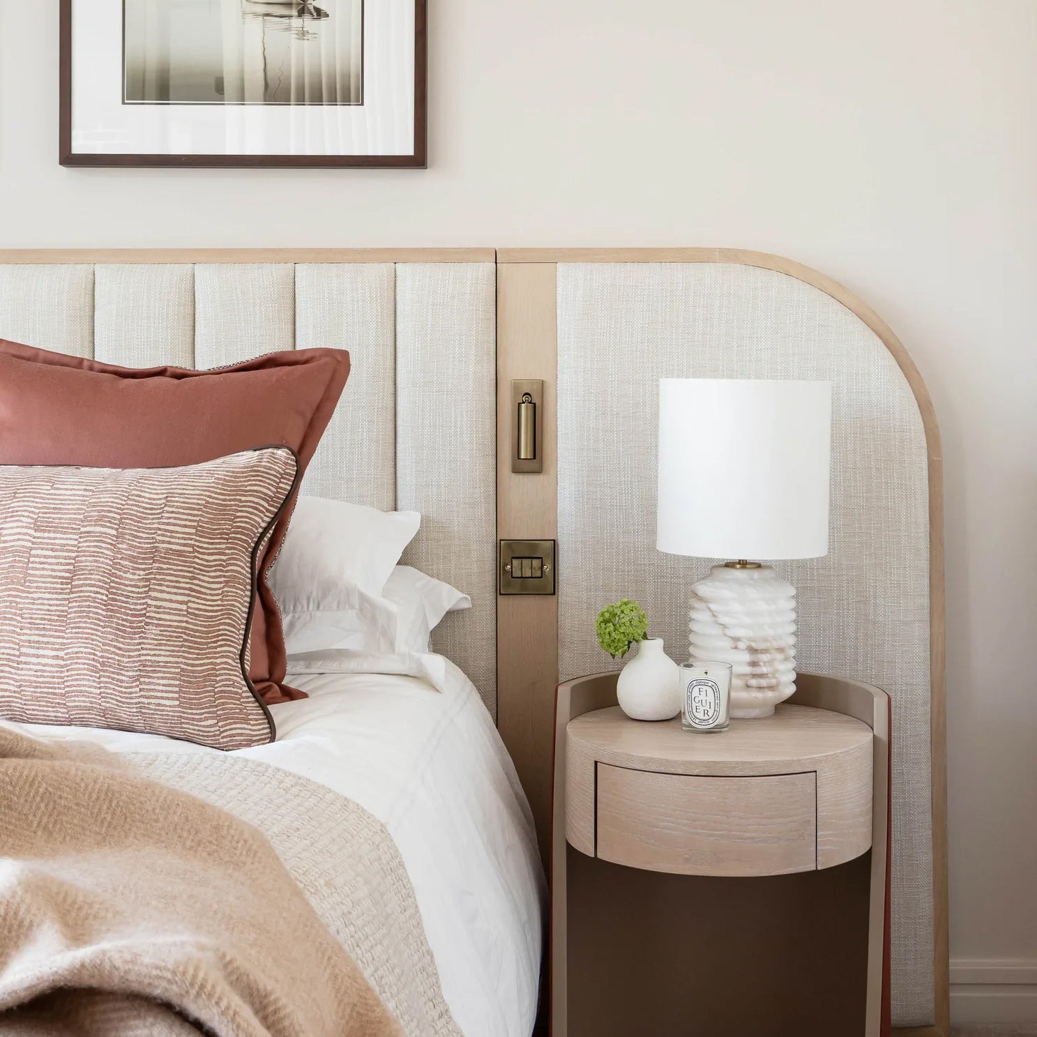 The Auria table lamp by Mooijane showcases the natural beauty of alabaster through its rich, deep brown texture. When light shines on the carved patterns and subtle grooves of the stone, it creates a stunning interplay of light and shadow, enhancing the ambiance of any room.