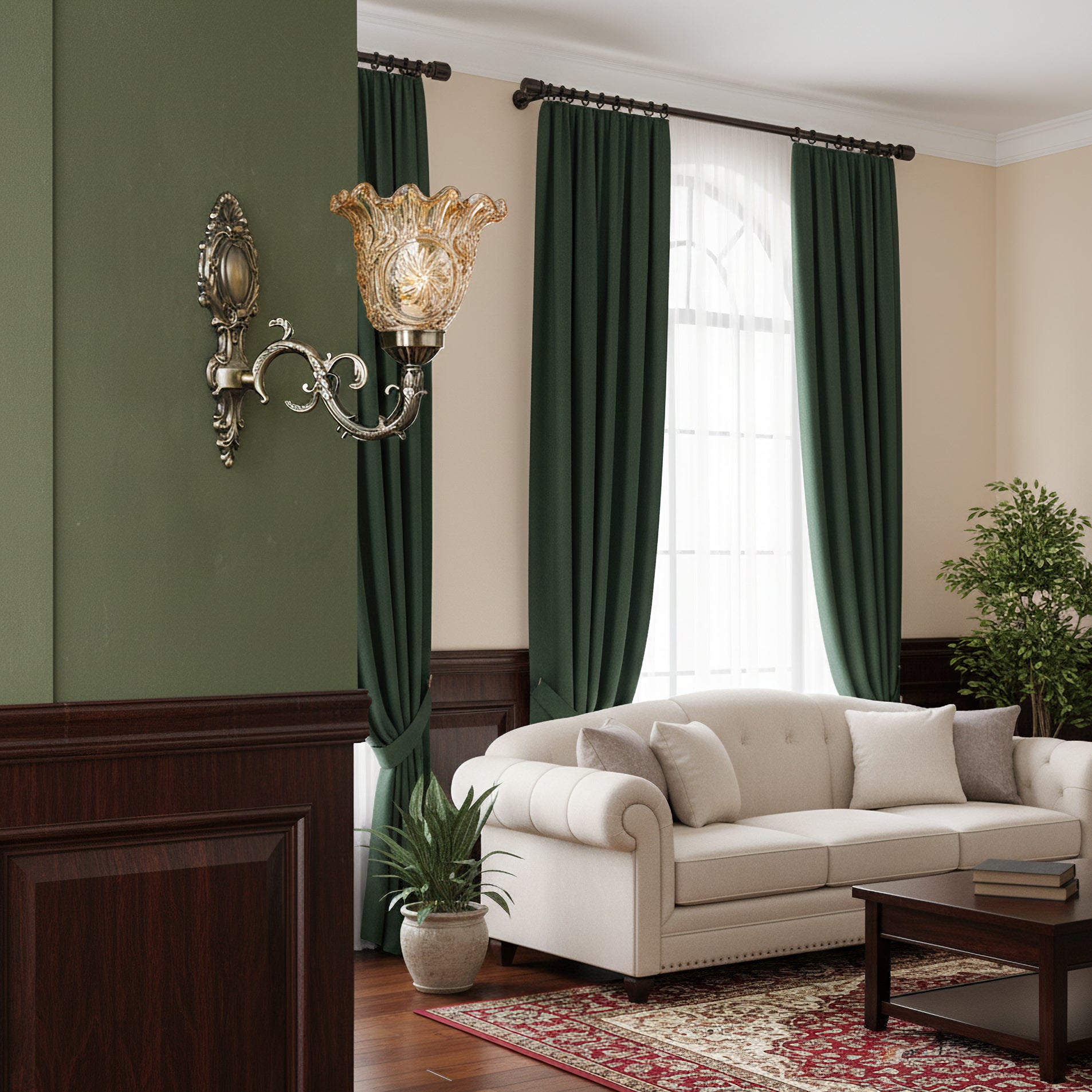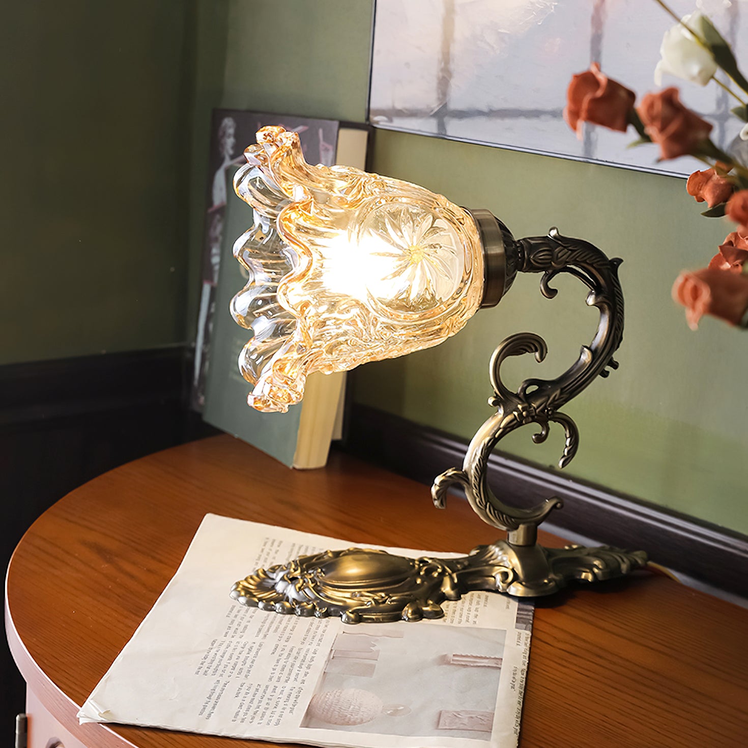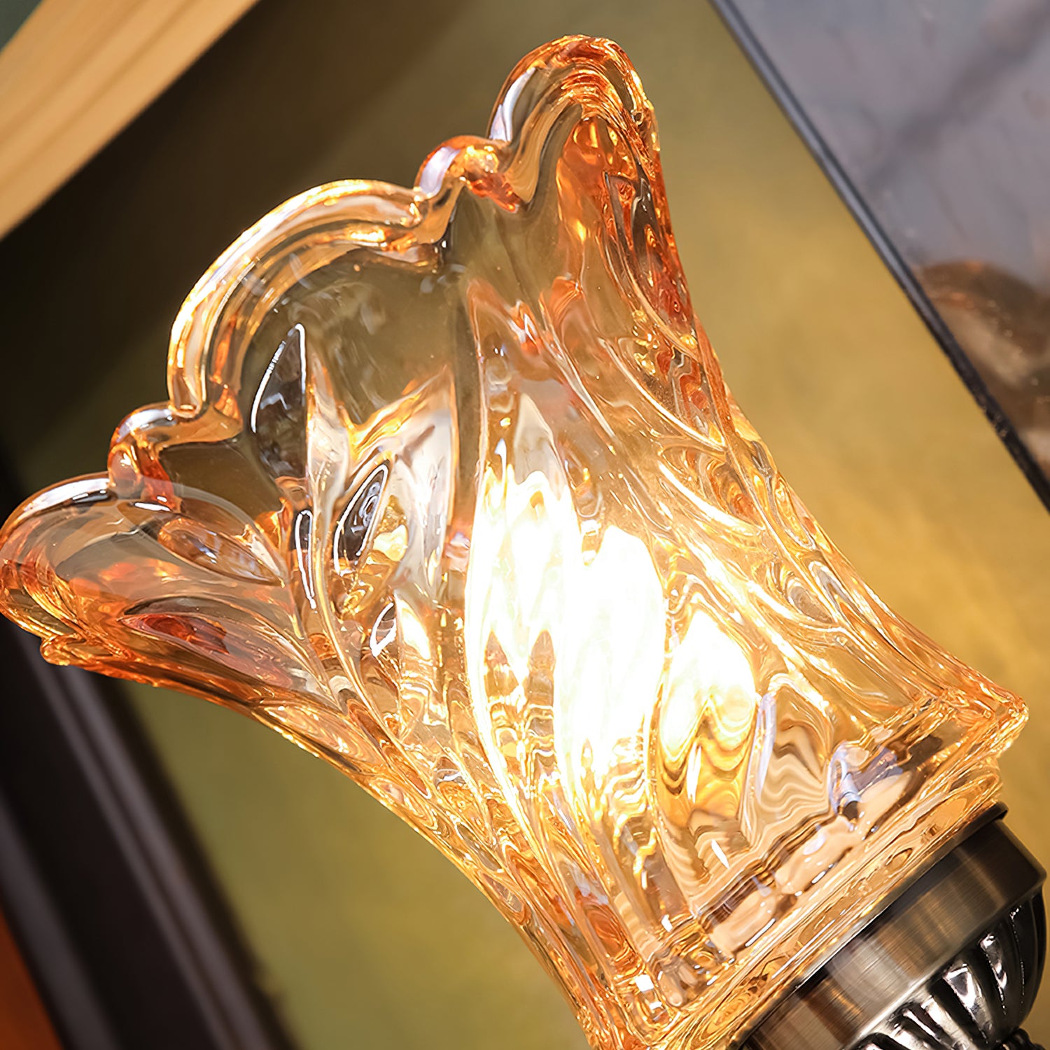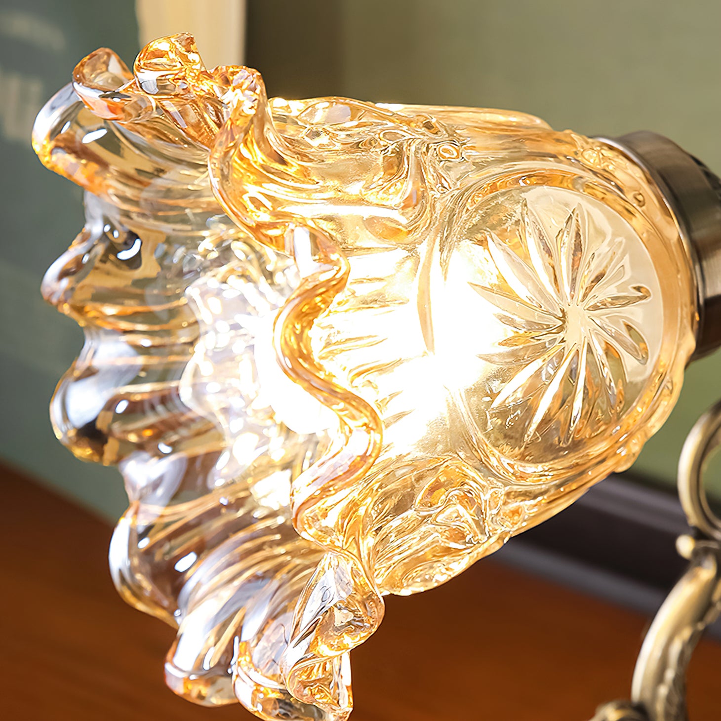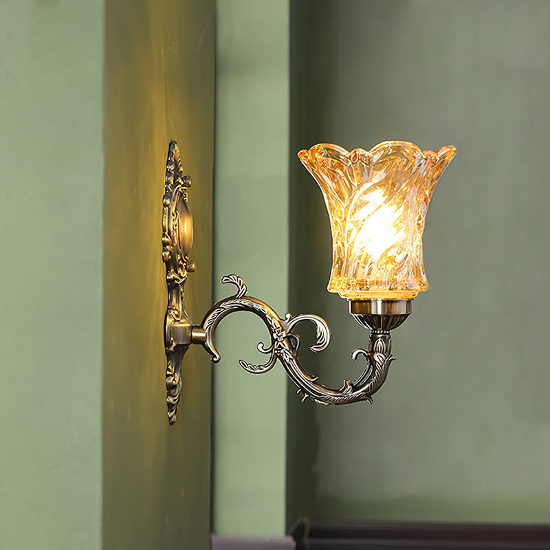 The Aveline wall lamp by Mooijane embodies vintage elegance with its refined blend of metal and glass. Its gracefully curved arms and petal-shaped glass shade create a soft, shimmering glow. This timeless lamp, with its sophisticated allure, will brighten any interior.