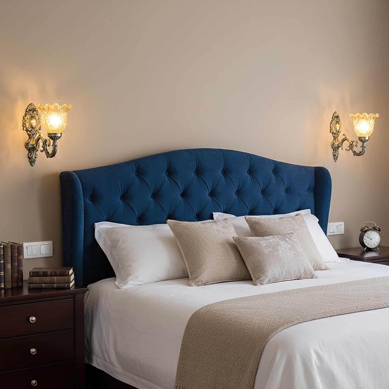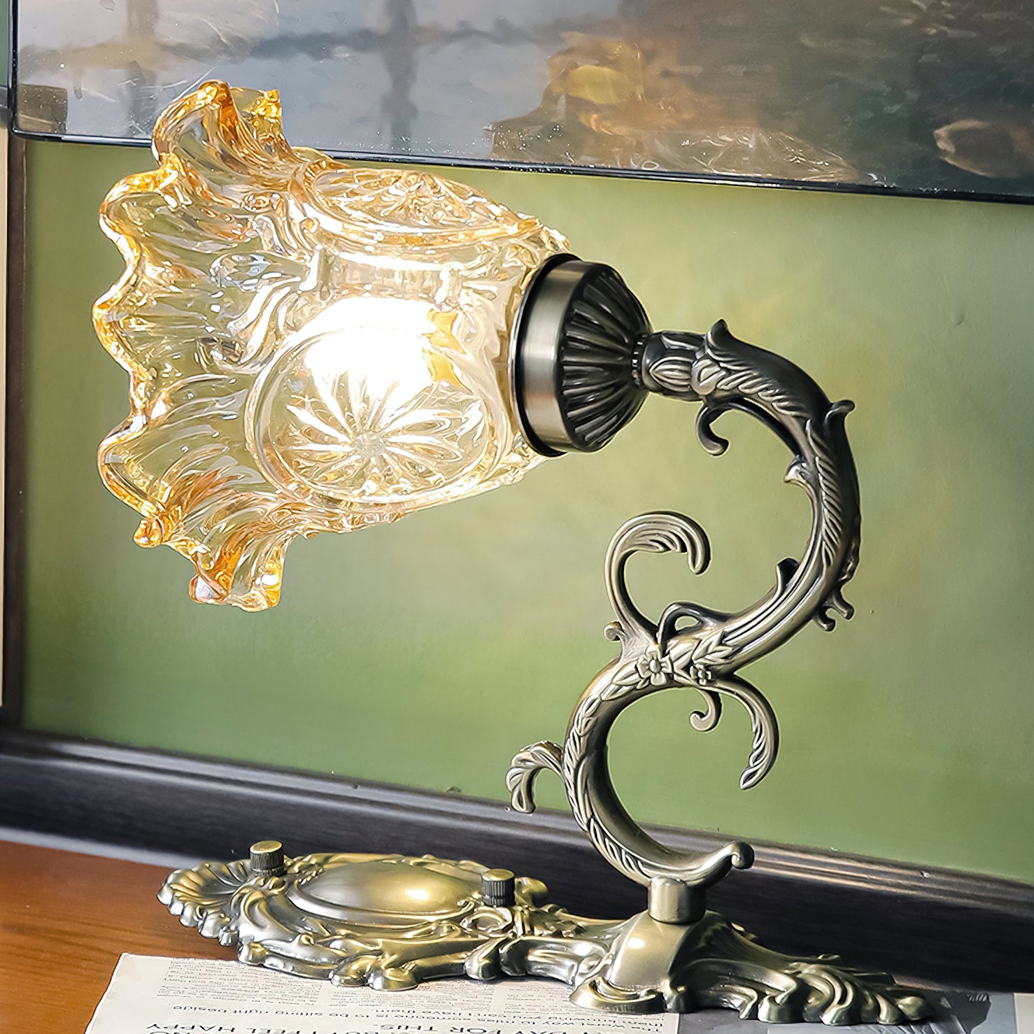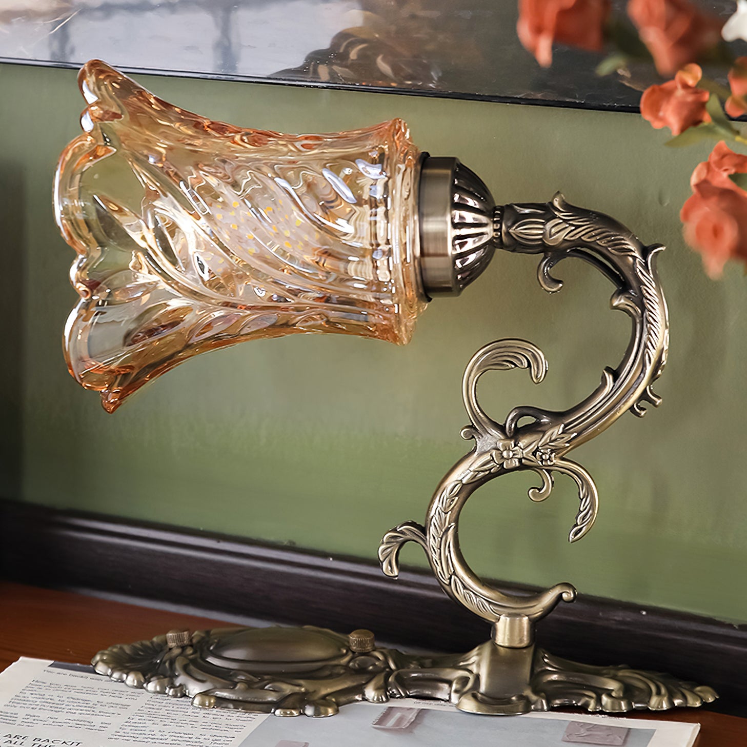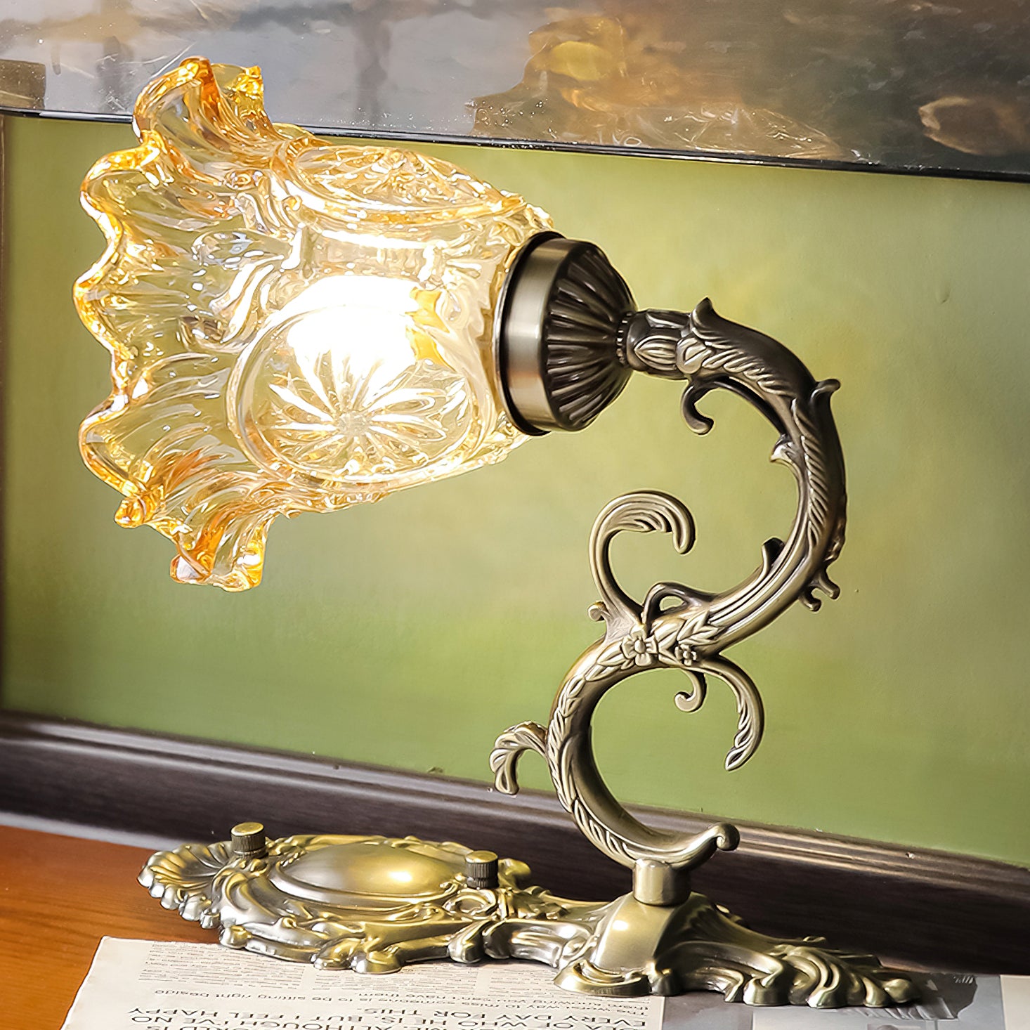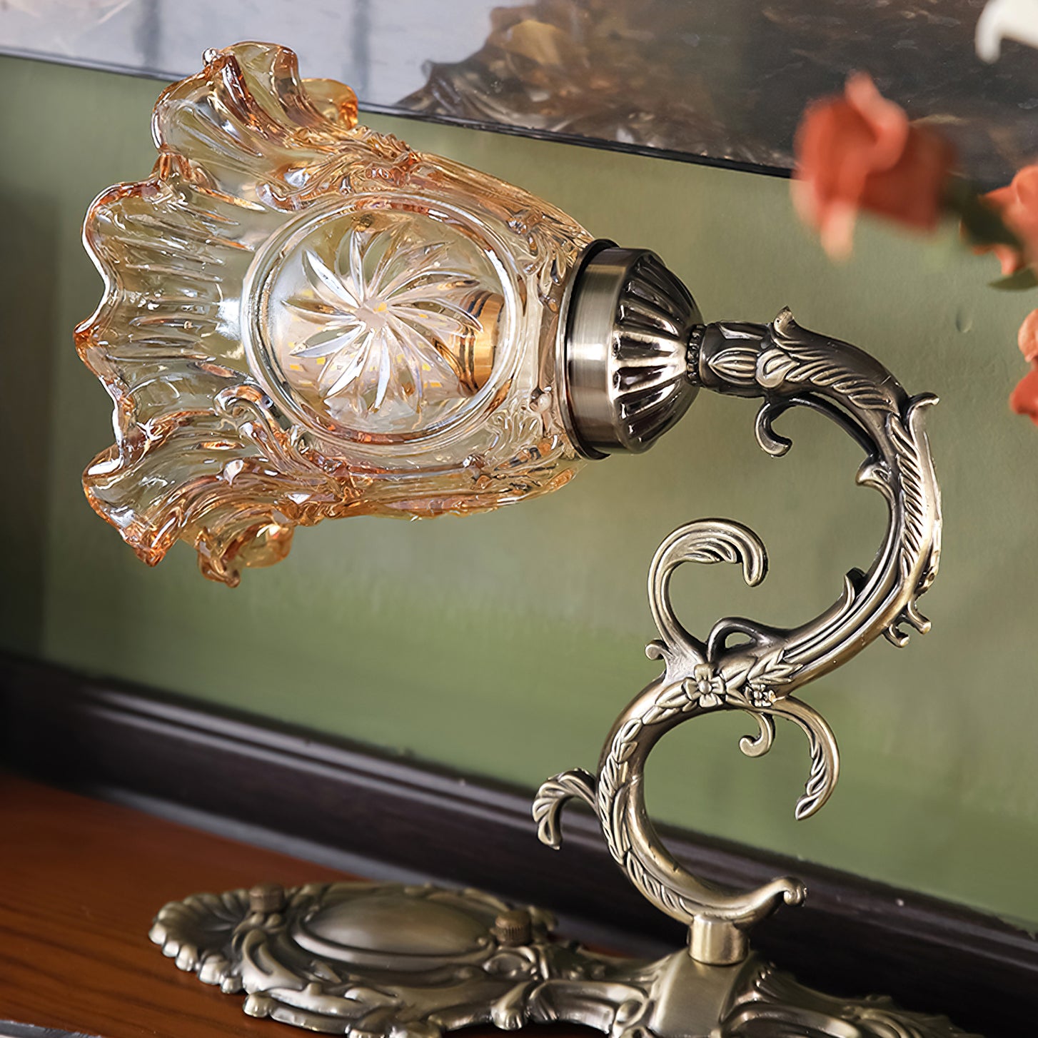 The Aveline wall lamp by Mooijane embodies vintage elegance with its refined blend of metal and glass. Its gracefully curved arms and petal-shaped glass shade create a soft, shimmering glow. This timeless lamp, with its sophisticated allure, will brighten any interior.