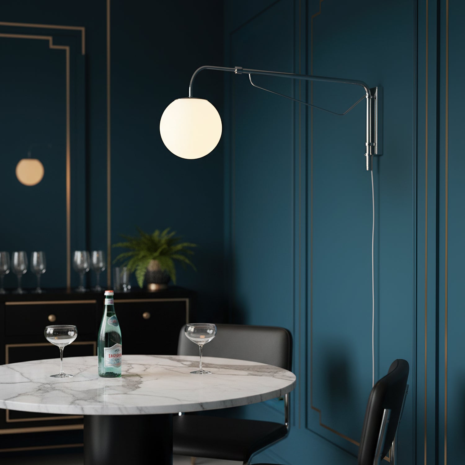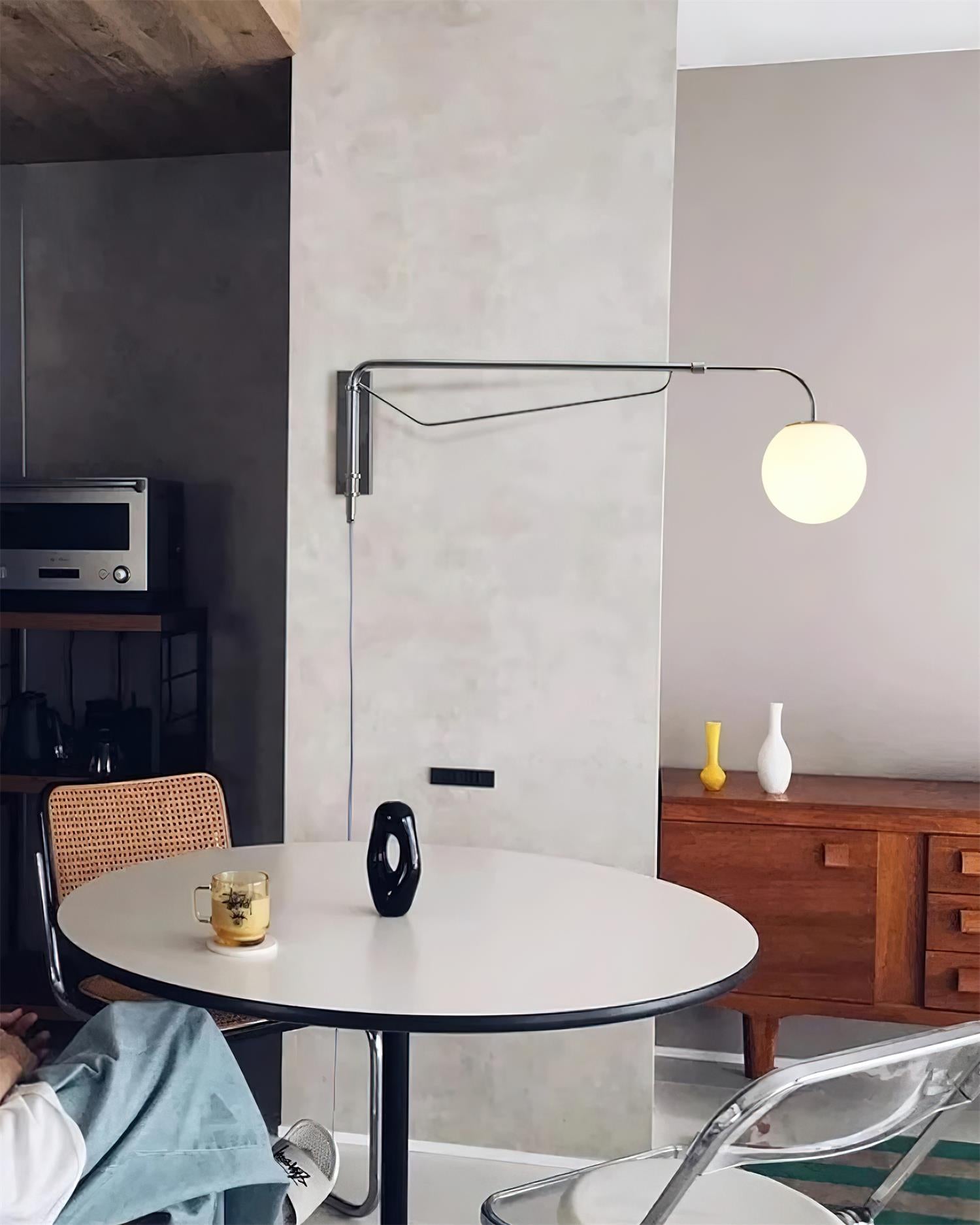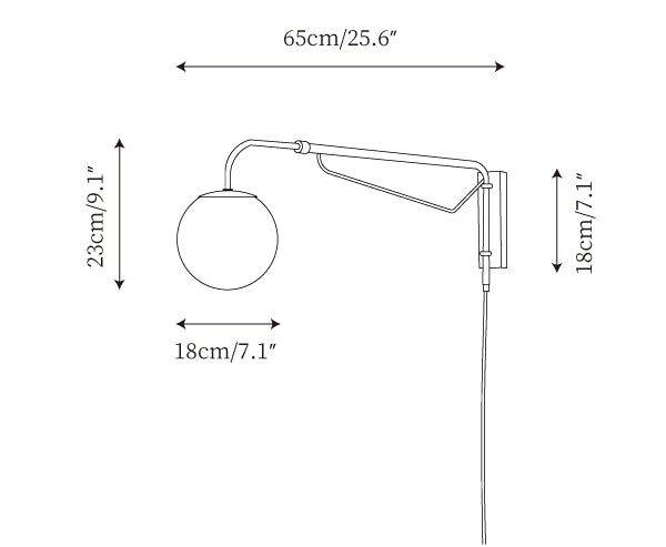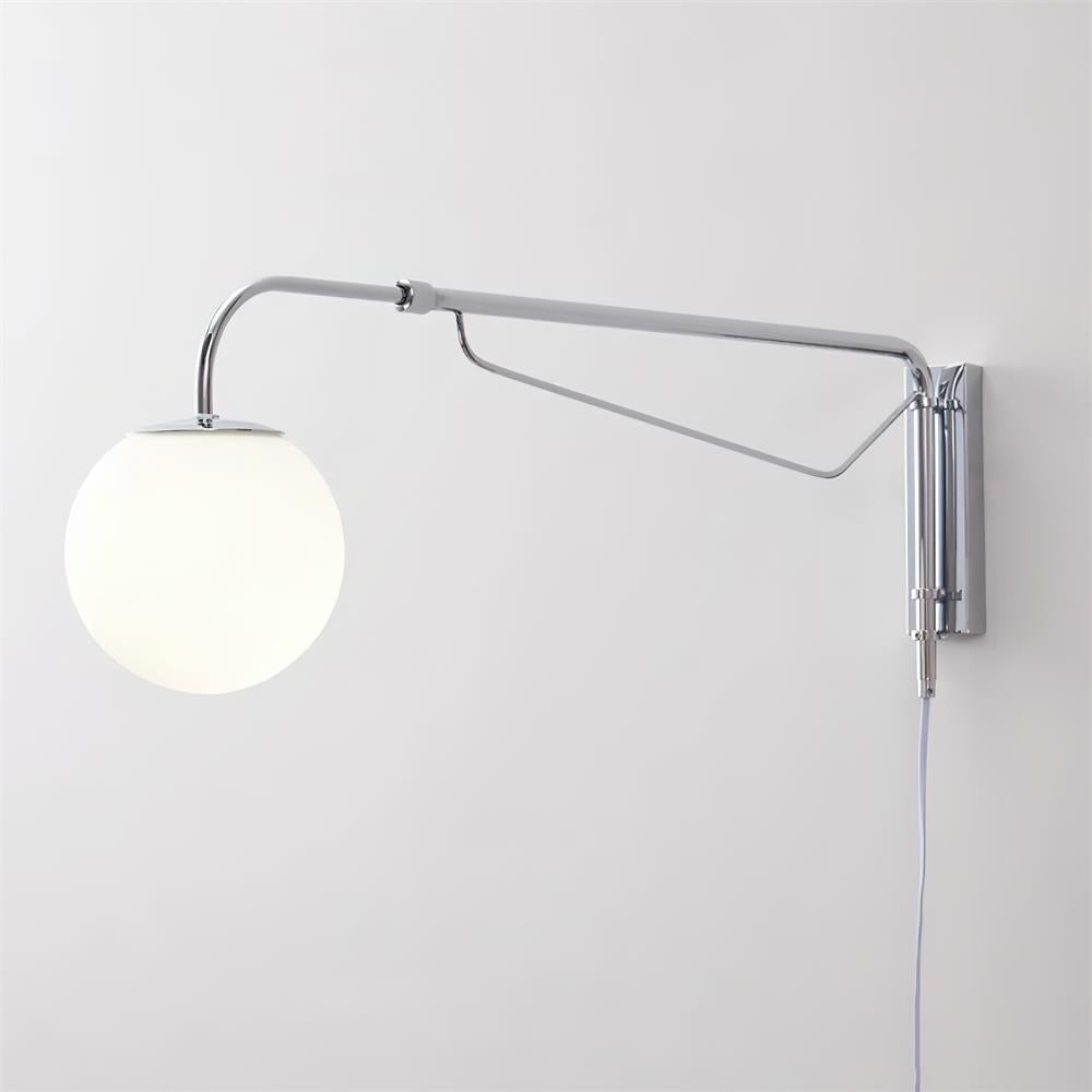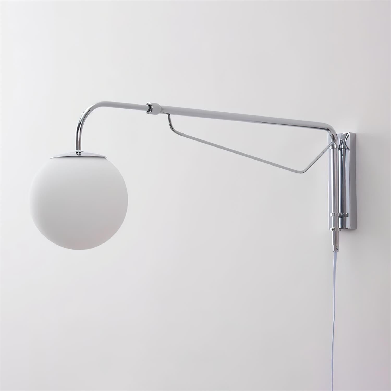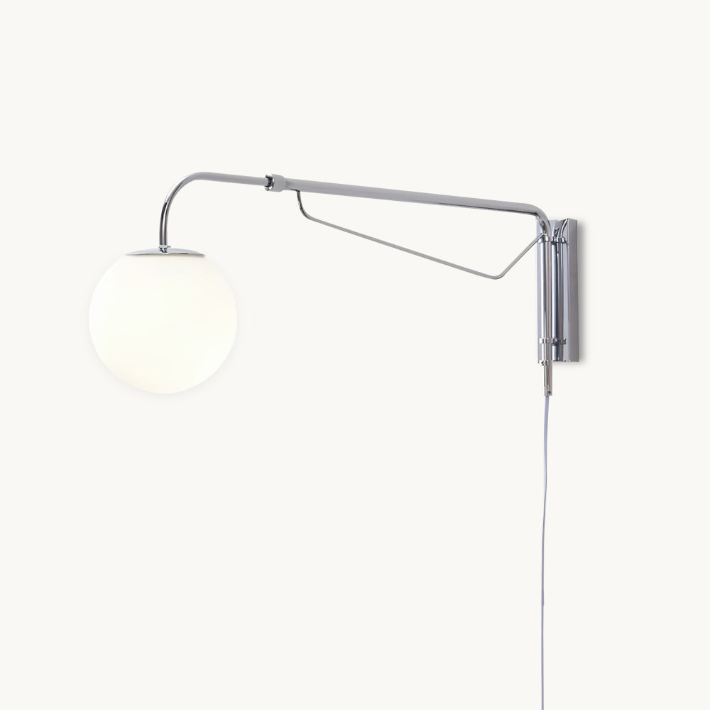 The Balin Plug-In Wall Lamp exemplifies minimalist elegance with its streamlined design and functional versatility. Featuring a slender, chrome-finished arm that extends and pivots, this lamp allows for customizable positioning to suit any reading or work area. The frosted Acrylic globe diffuses a soft, even light, providing optimal illumination without the glare. Its sleek, wall-mounted form saves space while adding a touch of modern sophistication to any room.