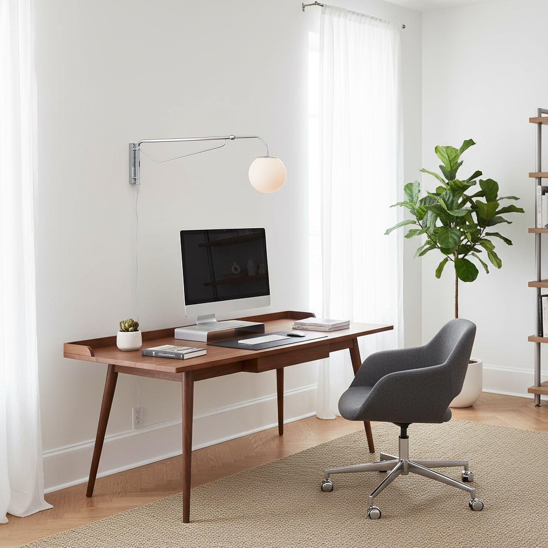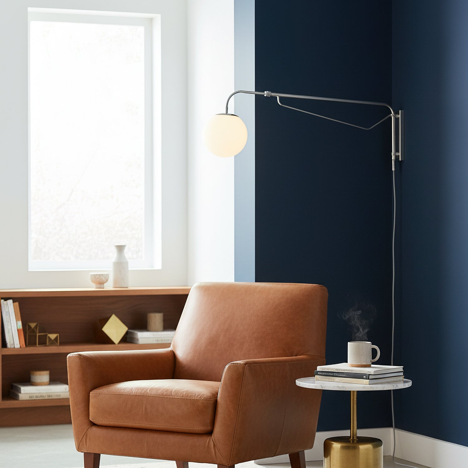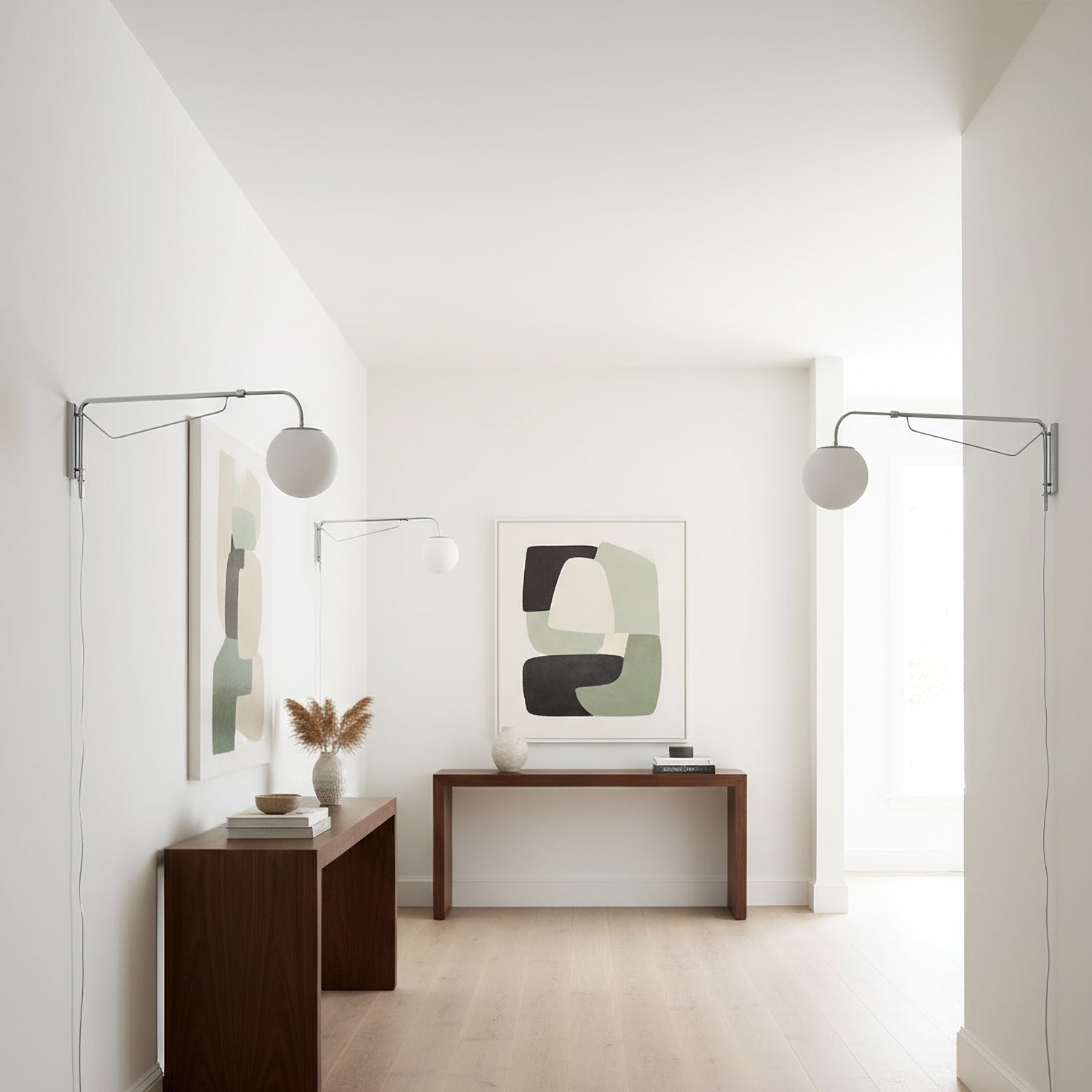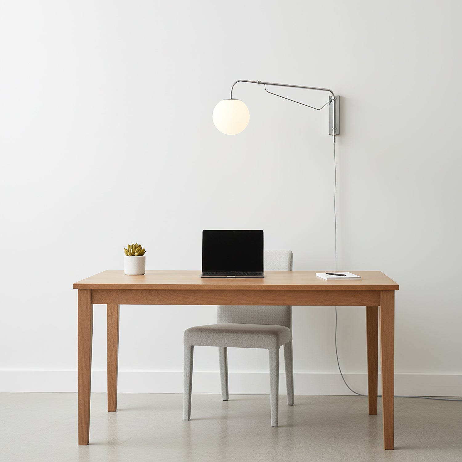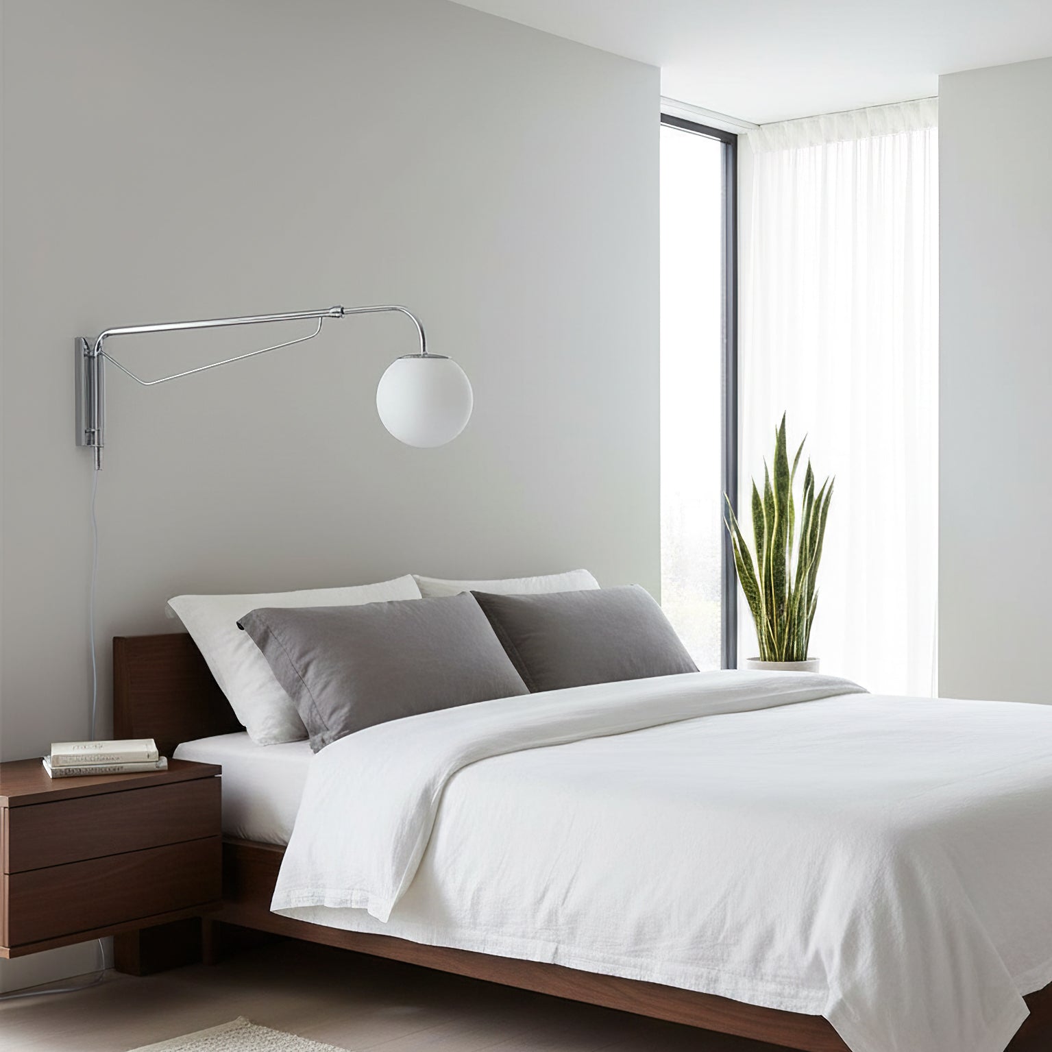 The Balin Plug-In Wall Lamp exemplifies minimalist elegance with its streamlined design and functional versatility. Featuring a slender, chrome-finished arm that extends and pivots, this lamp allows for customizable positioning to suit any reading or work area. The frosted Acrylic globe diffuses a soft, even light, providing optimal illumination without the glare. Its sleek, wall-mounted form saves space while adding a touch of modern sophistication to any room.