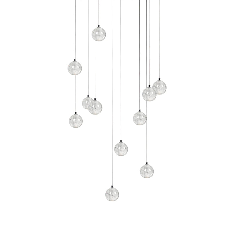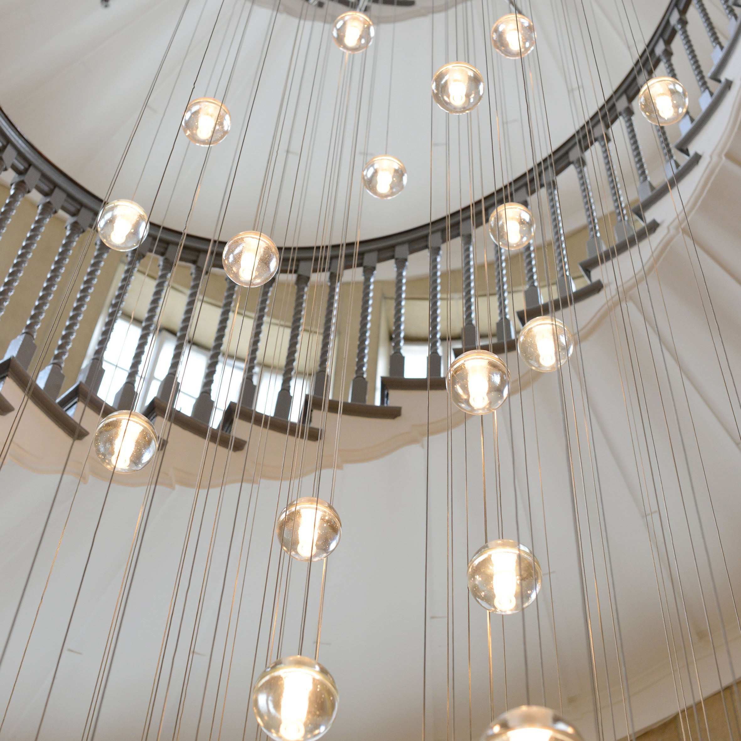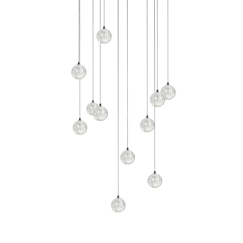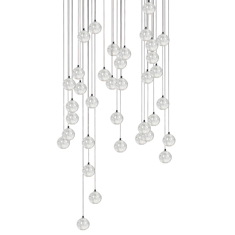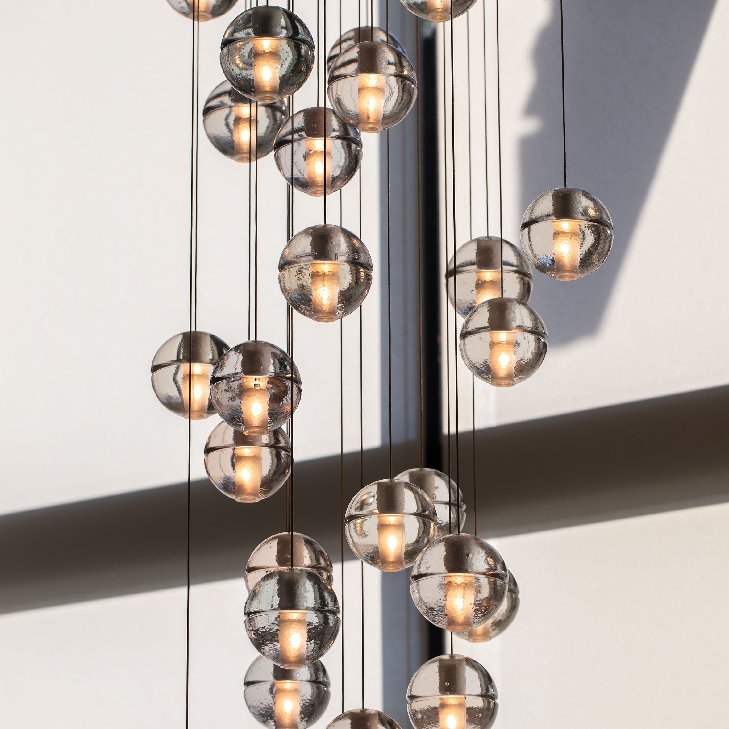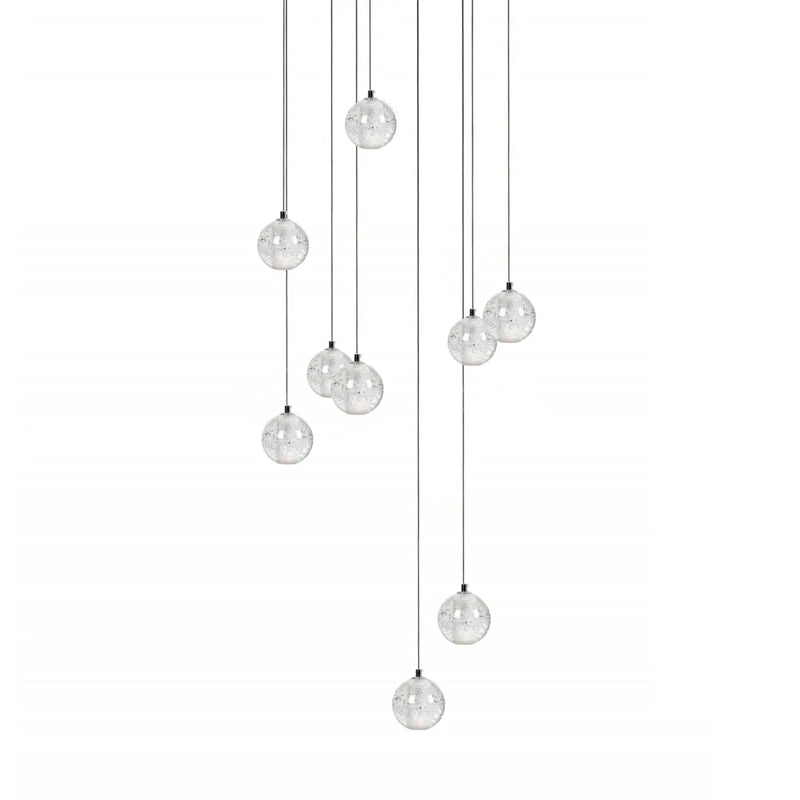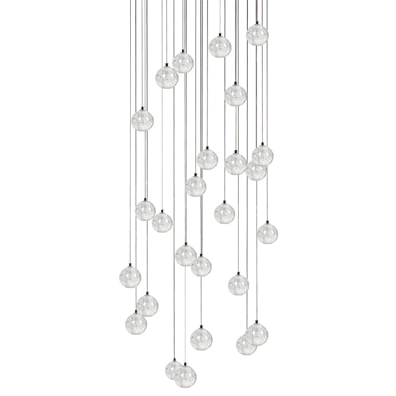 The Ball Crystal Pendant Light interacts with the imperfections of the glass to create a rich halo of light. Visually quite subtle, they gain tremendous strength when clustered in random formations along horizontal and vertical applications. Popular residential and commercial applications include kitchens, restaurants, bedrooms and closets, hallways, patios, staircase illumination, foyers and lobbies, and other large indoor and outdoor configurations in private and public spaces.