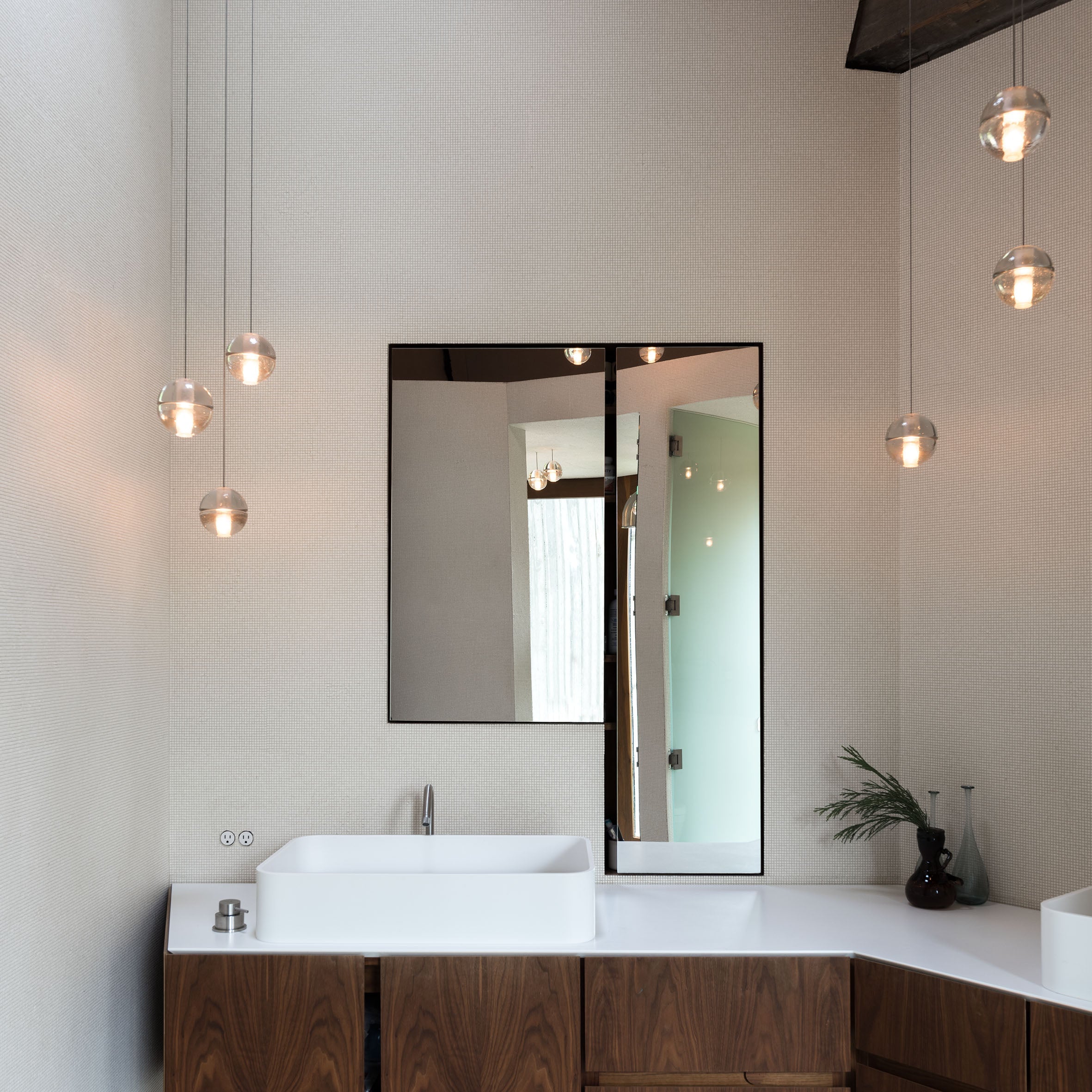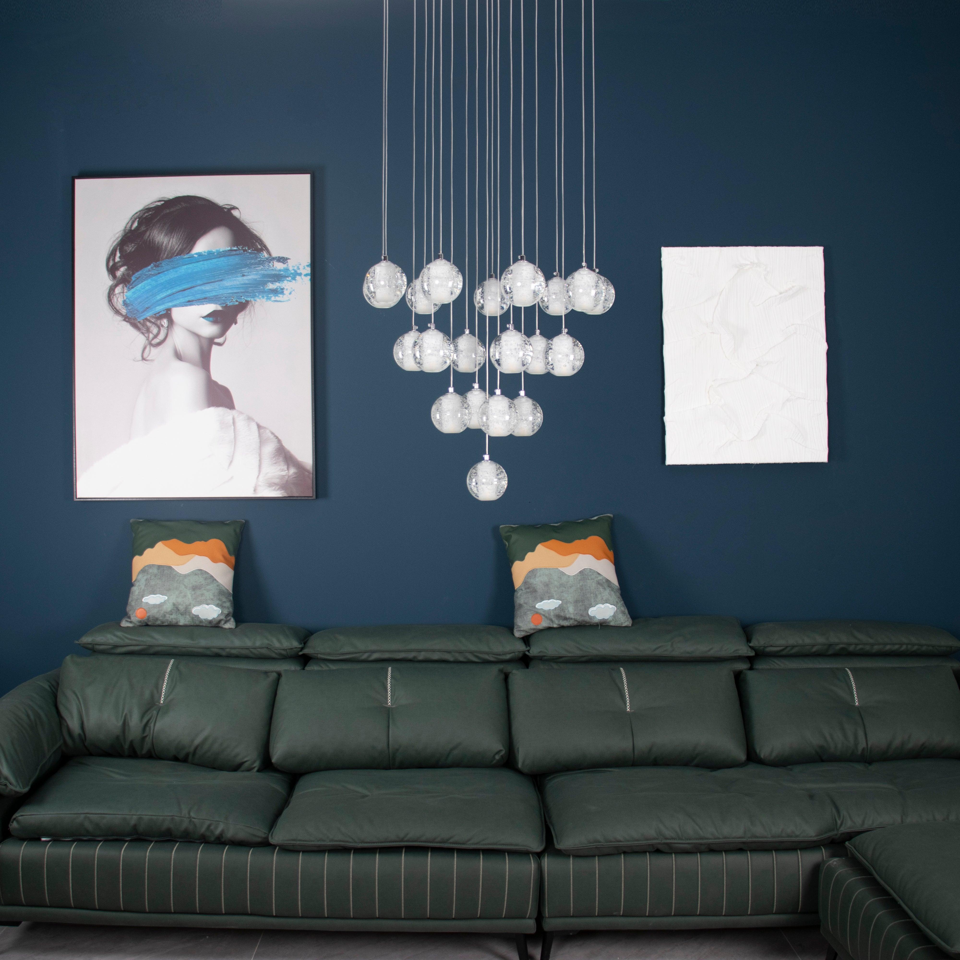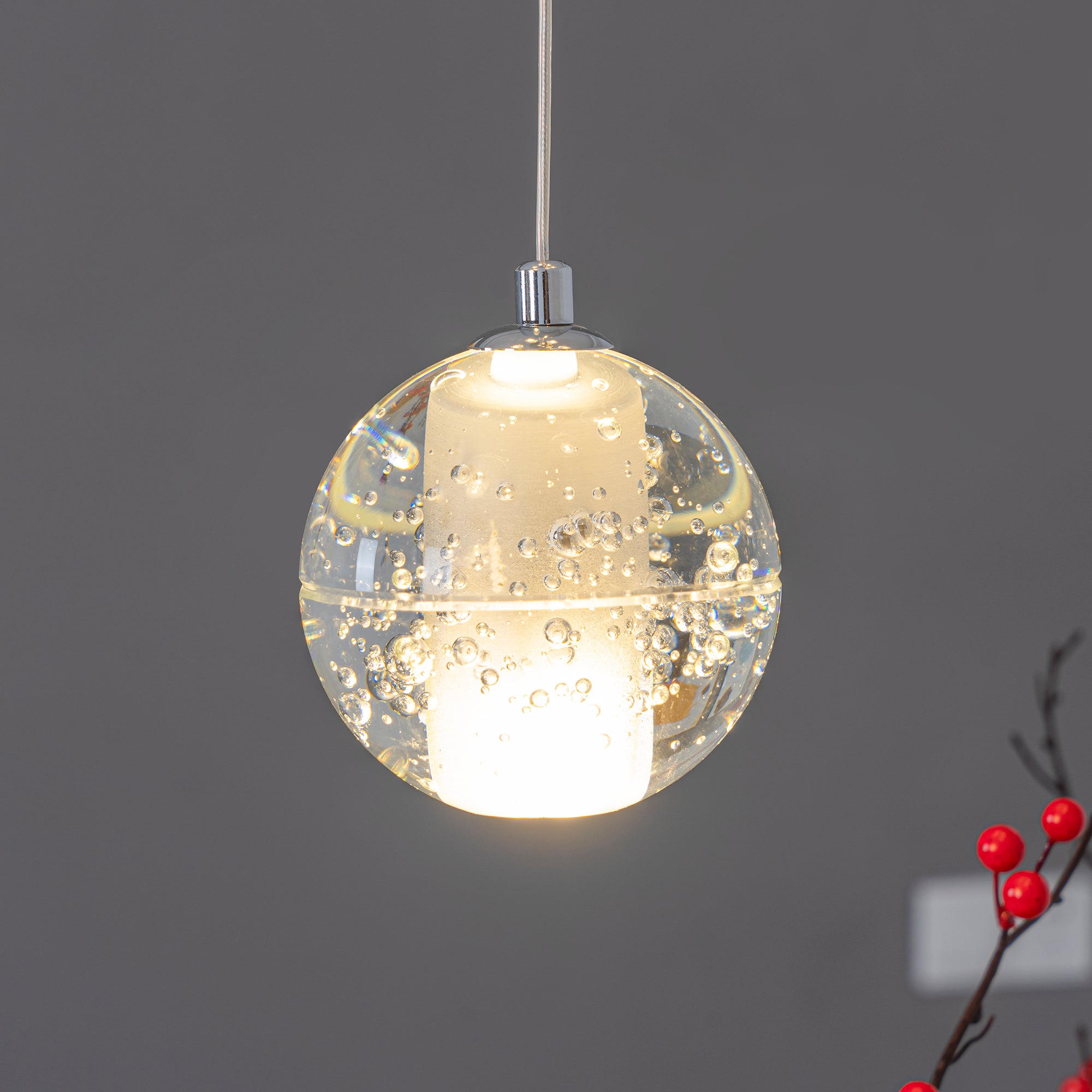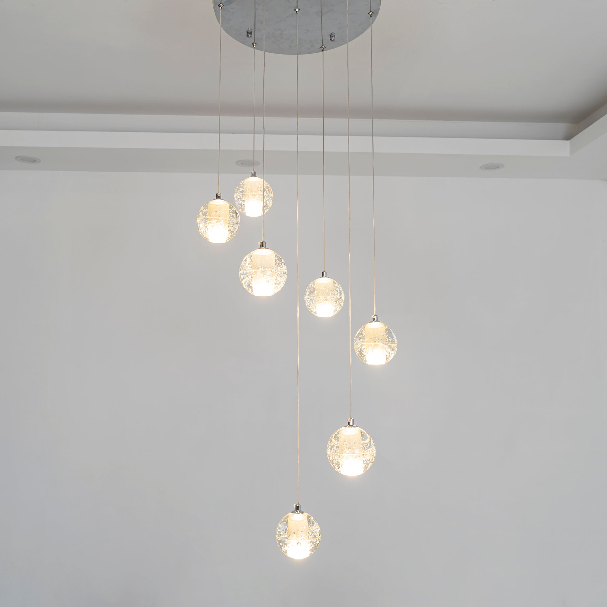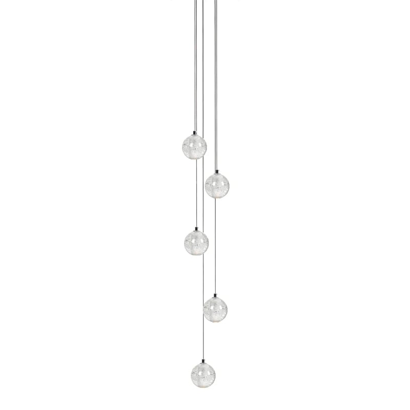 The Ball Crystal Pendant Light interacts with the imperfections of the glass to create a rich halo of light. Visually quite subtle, they gain tremendous strength when clustered in random formations along horizontal and vertical applications. Popular residential and commercial applications include kitchens, restaurants, bedrooms and closets, hallways, patios, staircase illumination, foyers and lobbies, and other large indoor and outdoor configurations in private and public spaces.