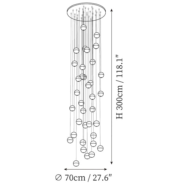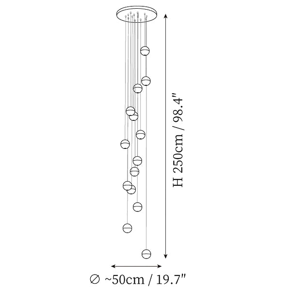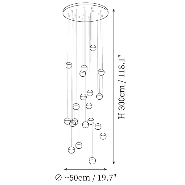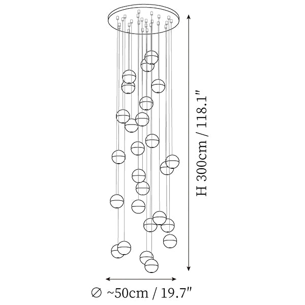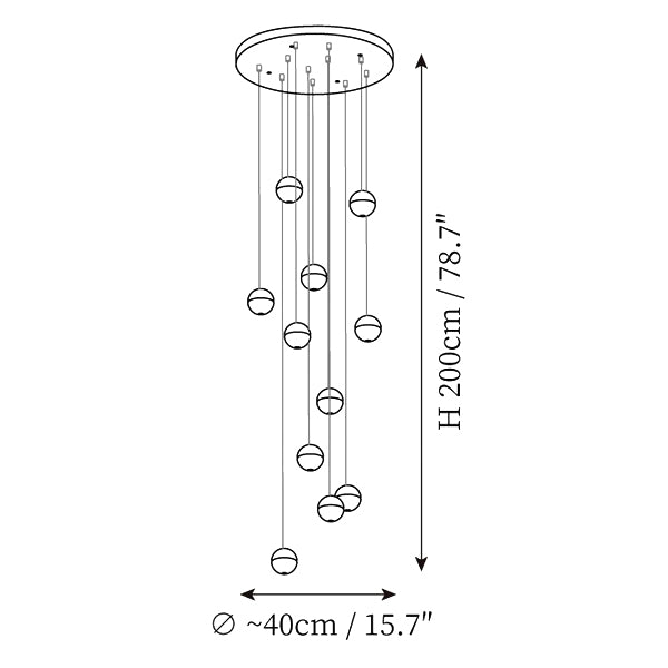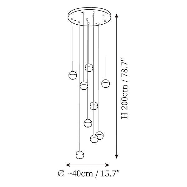 - 9 heads size: Dia 40cm x 200cm / ∅ 15.7″ x 78.7″ (Round canopy)
