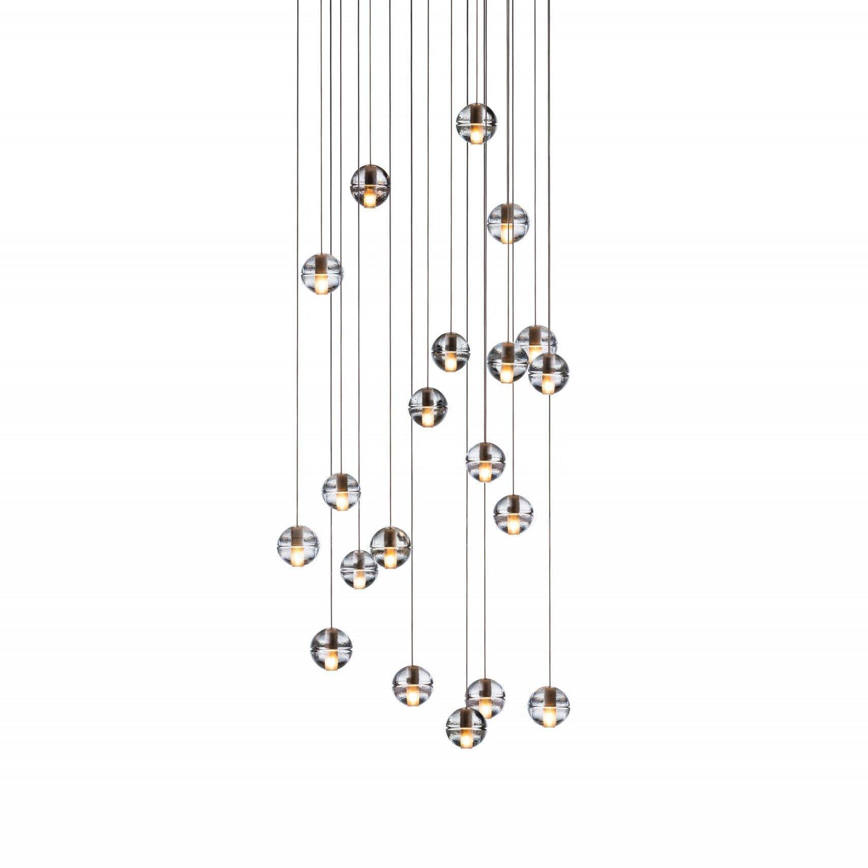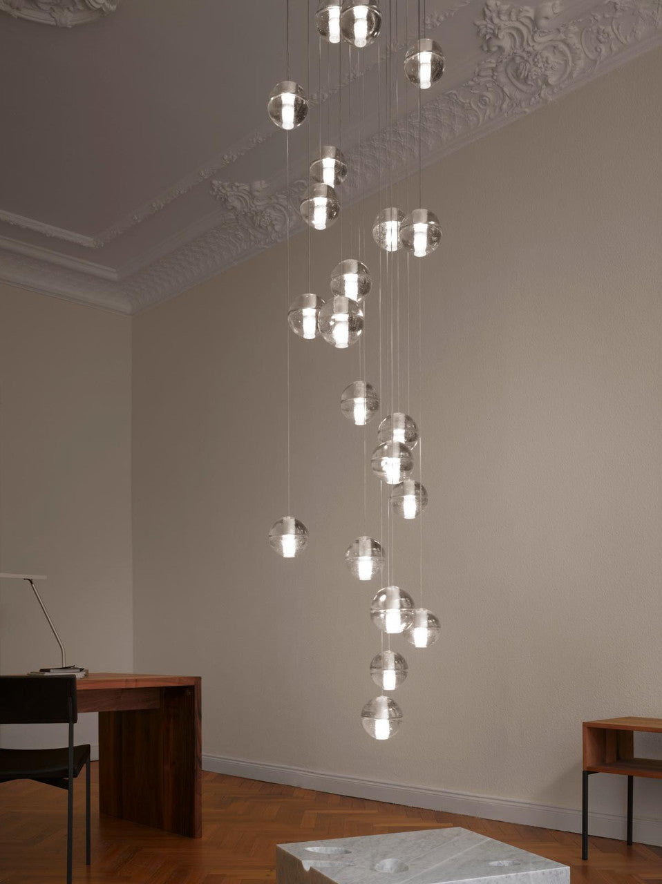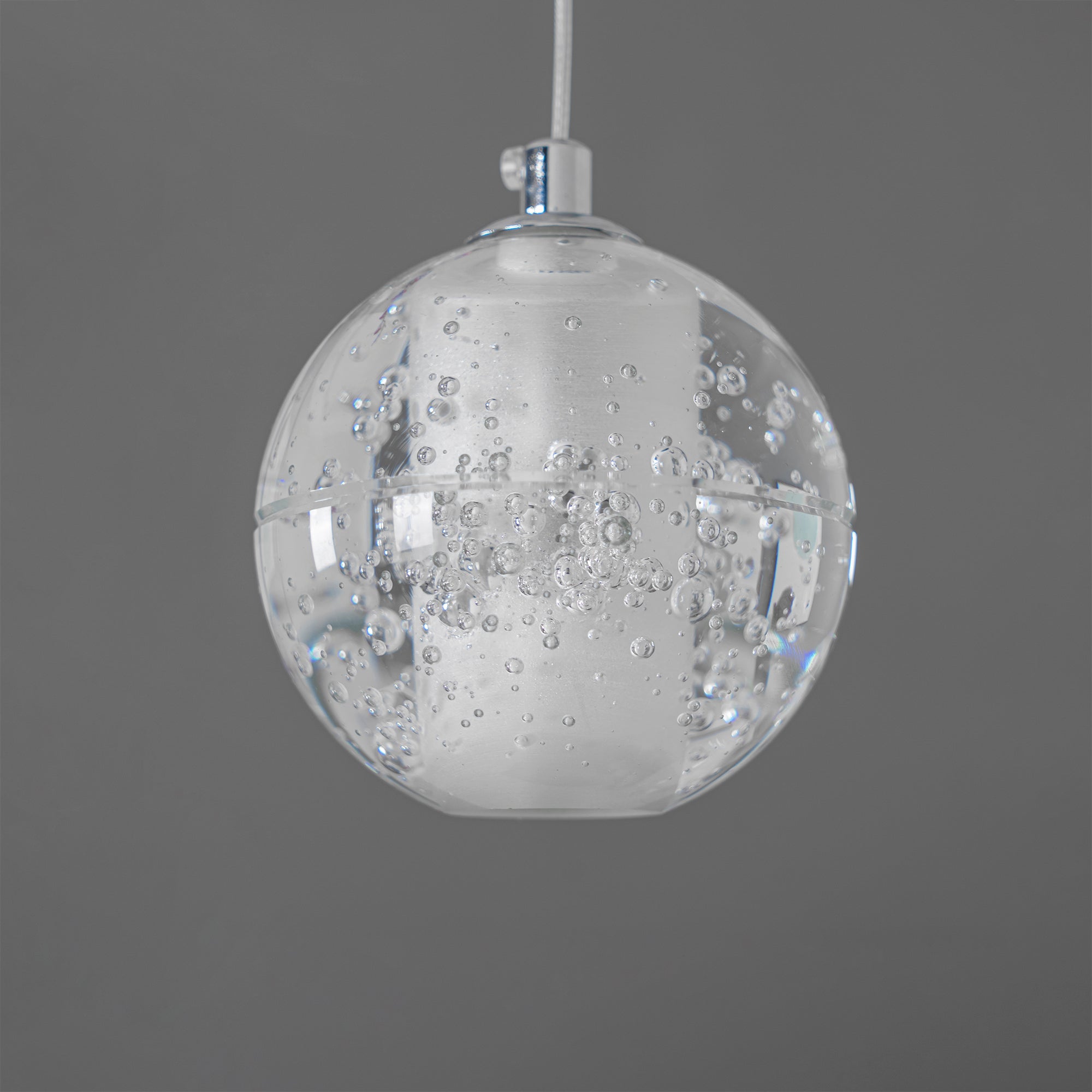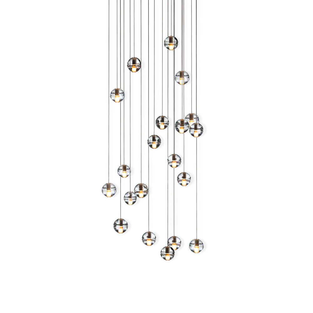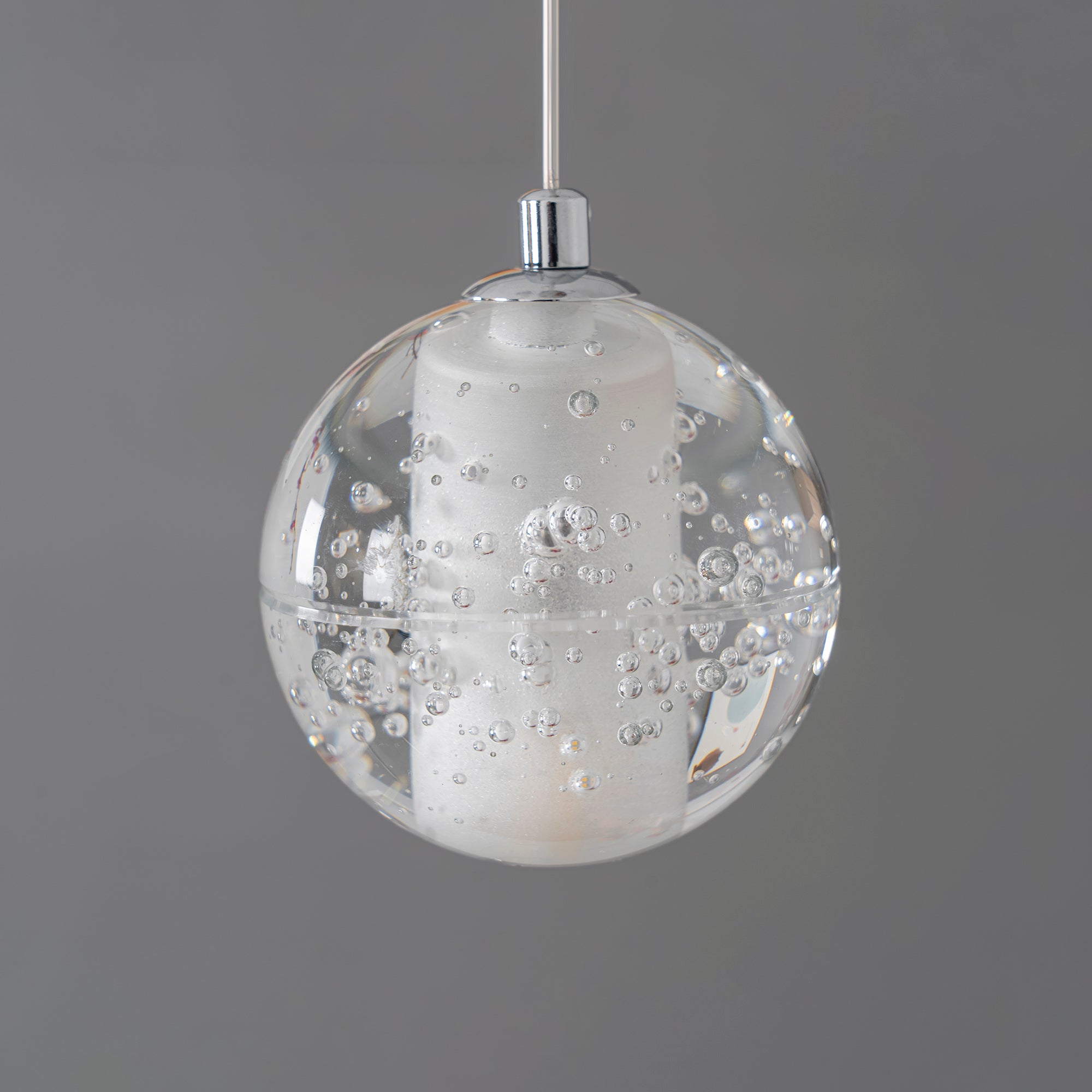The Ball Crystal Pendant Light is a glowing sphere of hand-cast glass, each distinctive piece creating a unique light. A frosted, cylindrical void houses either a low voltage xenon/halogen or LED light, illuminating the bubbles and imperfections of each articulated sphere. Individually, the pendants are visually subtle but gain an impressive atmospheric quality when clustered. the Ball Crystal Pendant Light became an instant classic and is ideal for both home and commercial properties.