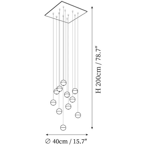 - 11 heads size: Dia 40cm x 200cm / ∅ 15.7″ x 78.7″ (Square canopy)