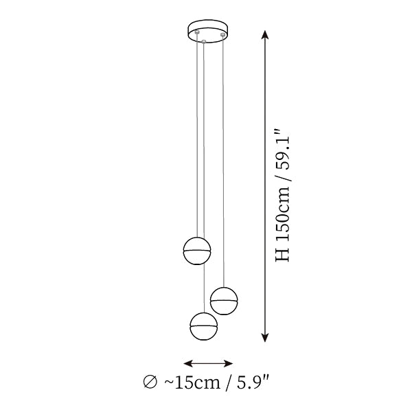 - 3 heads size: Dia 15cm x 150cm / ∅ 5.9″ x 59.1″ (Round canopy)