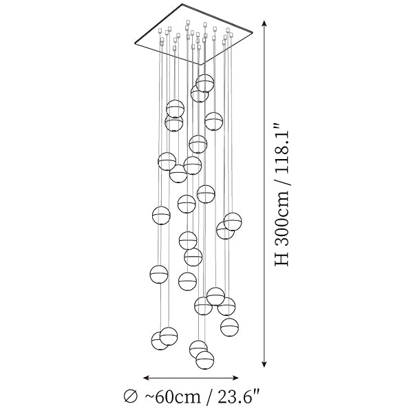 - 26 heads size: Dia 60cm x 300cm / ∅ 23.6″ x 118.1″ (Square canopy)
