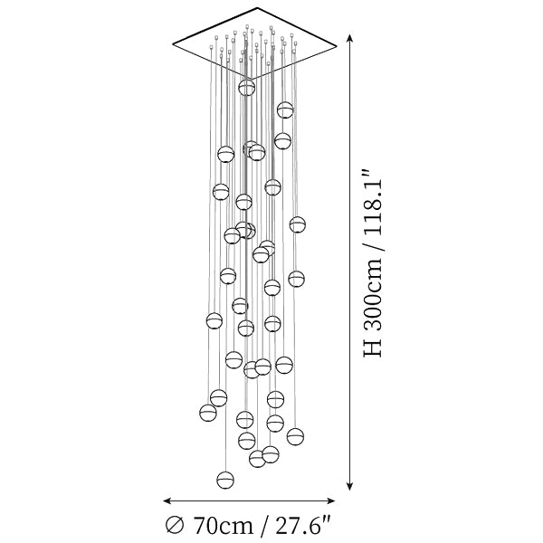 - 36 heads size: Dia 70cm x 300cm / ∅ 27.6″ x 118.1″ (Square canopy)