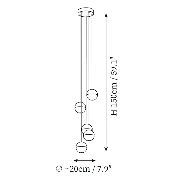 - 5 heads size: Dia 20cm x 150cm / ∅ 7.9″ x 59.1″ (Round canopy)