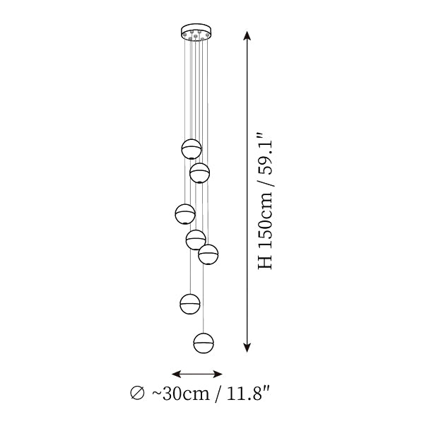 - 7 heads size: Dia 30cm x 150cm / ∅ 11.8″ x 59.1″ (Round canopy)