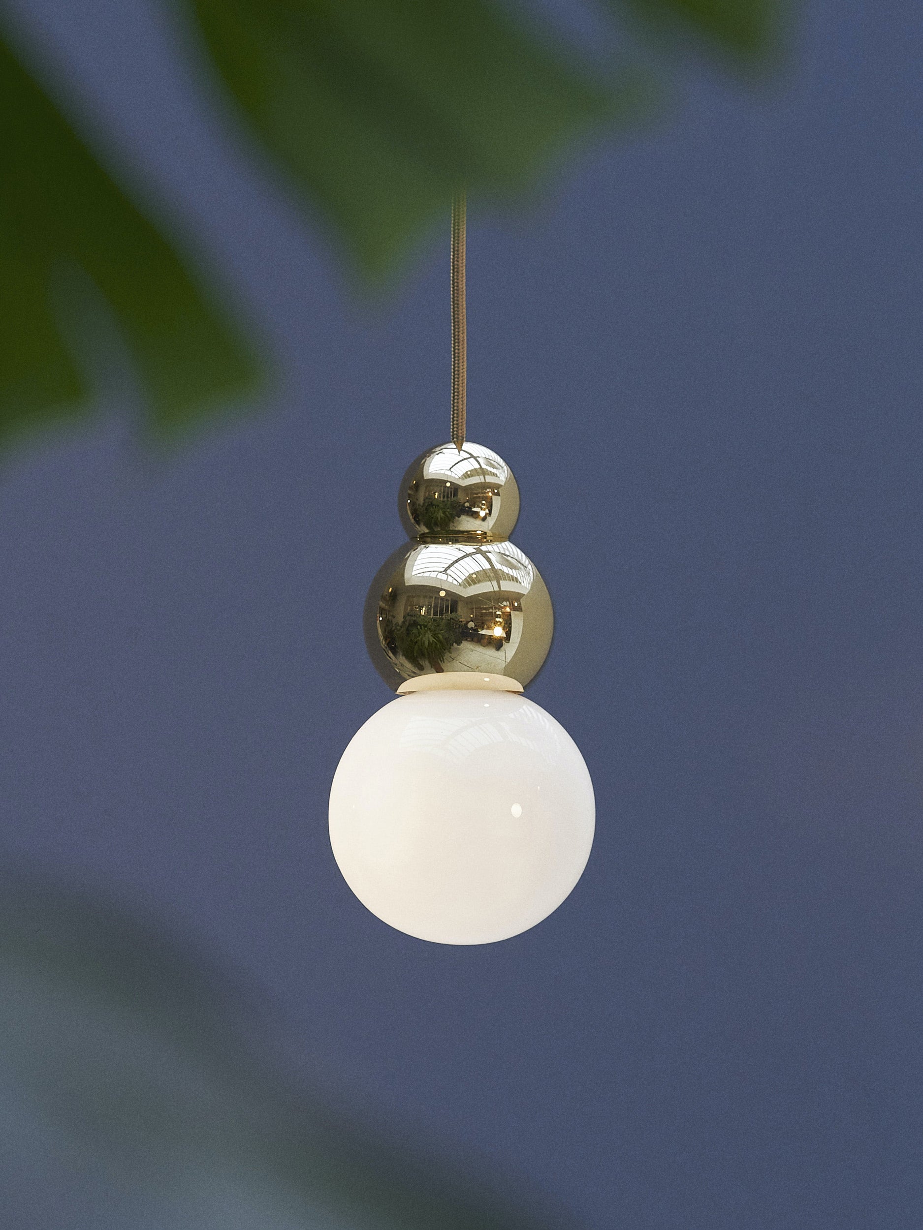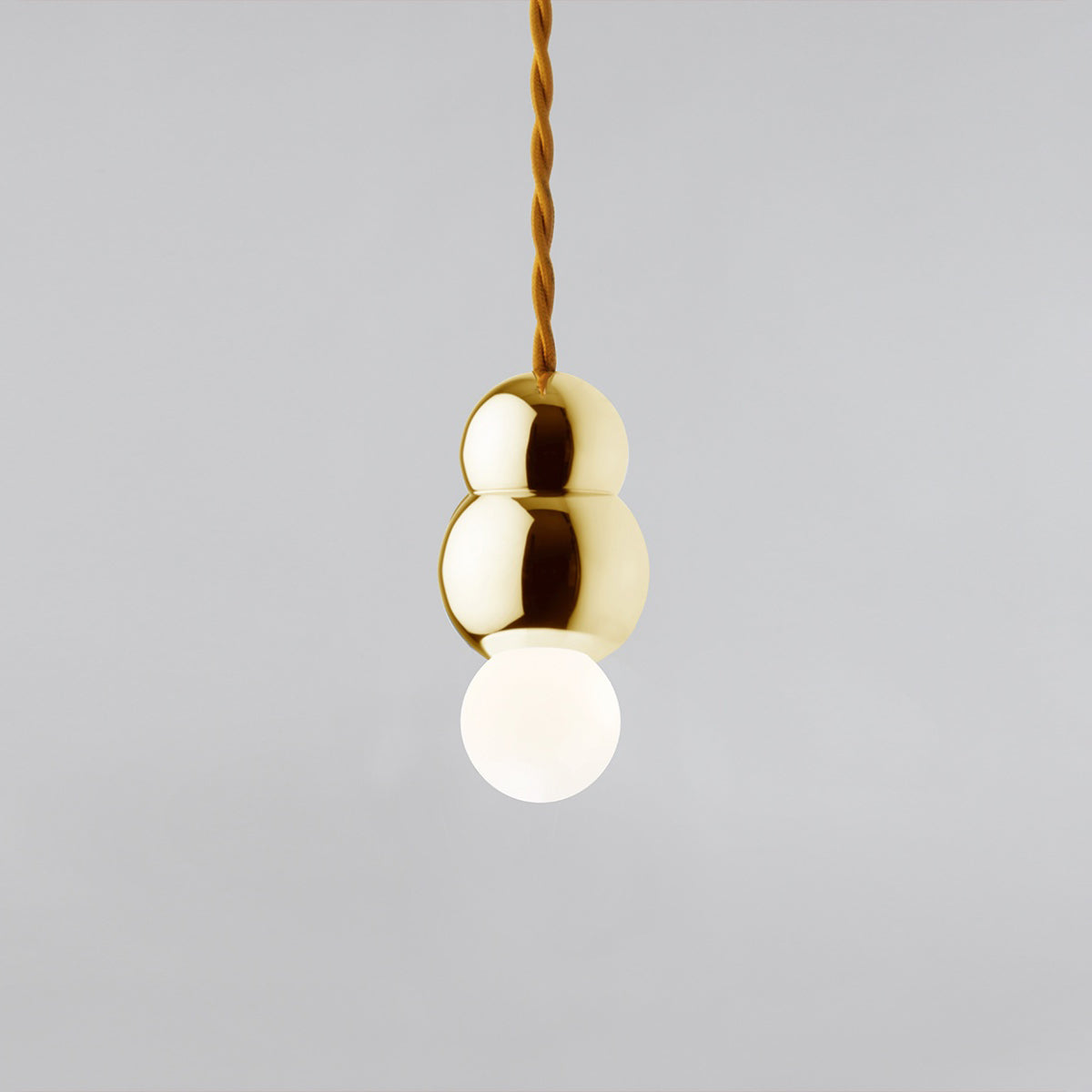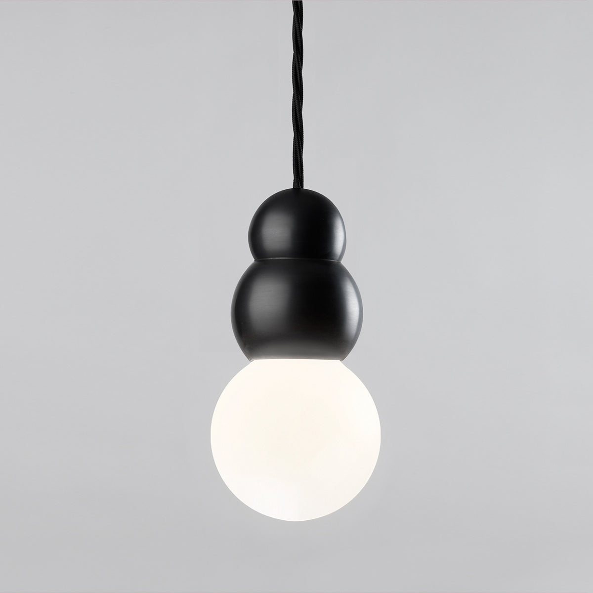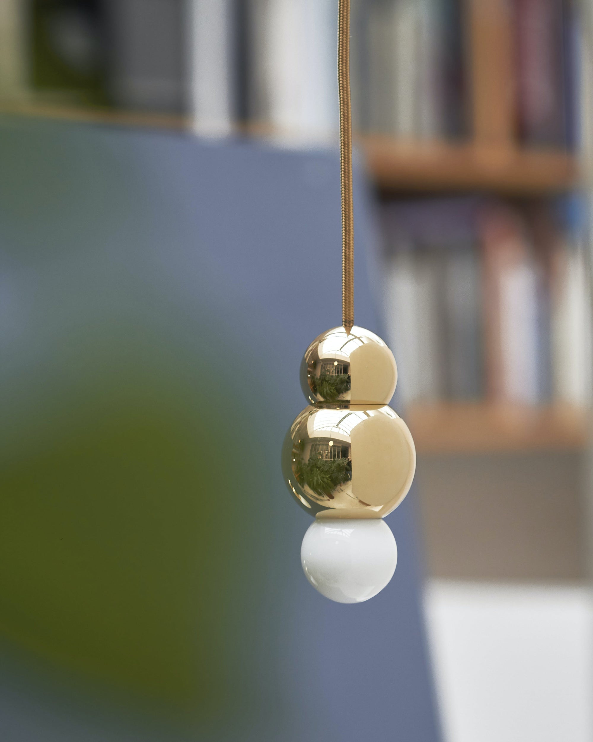 The Ball Lights consist of pendants and wall sconces. Designed around existing incandescent bulbs of that time, the project began as an exercise to abstract the bulb into a perfectly spherical ball, celebrating its perfect shape by repeating it in metal. The Ball Light pendant, part of the Ball Light series, is meant to be eye-catching in any setting but is most striking when grouped in three or more. Also available with a flex cord.
