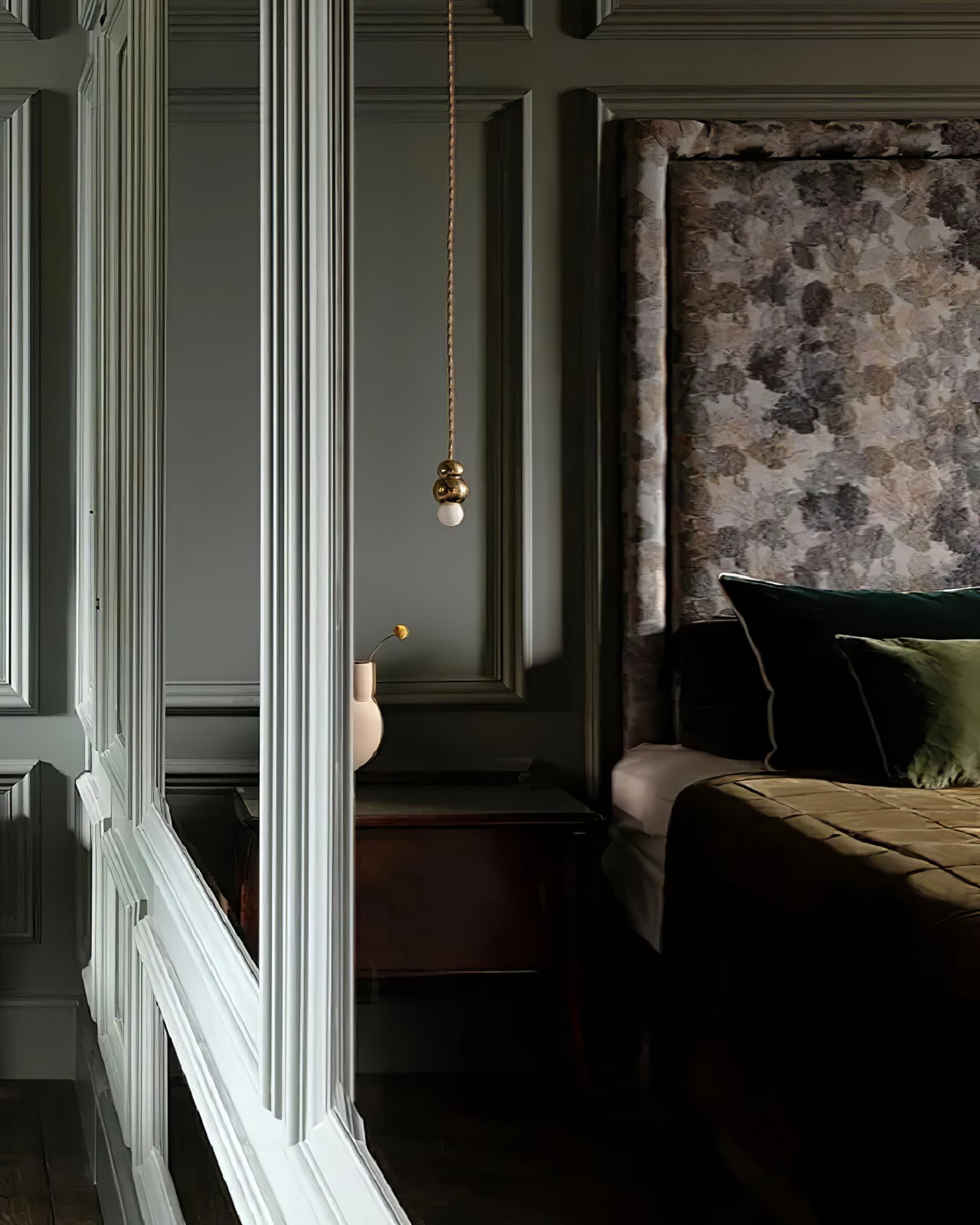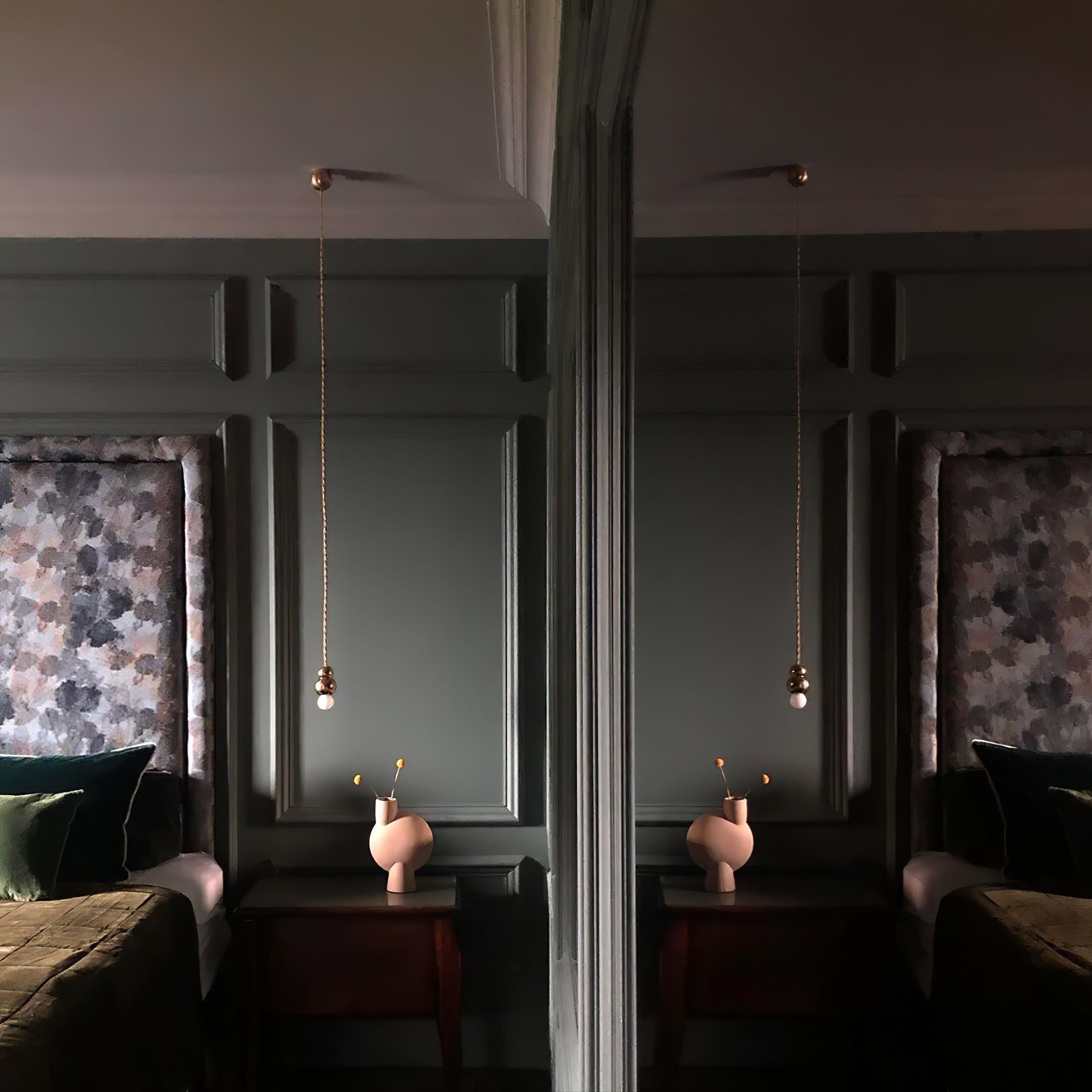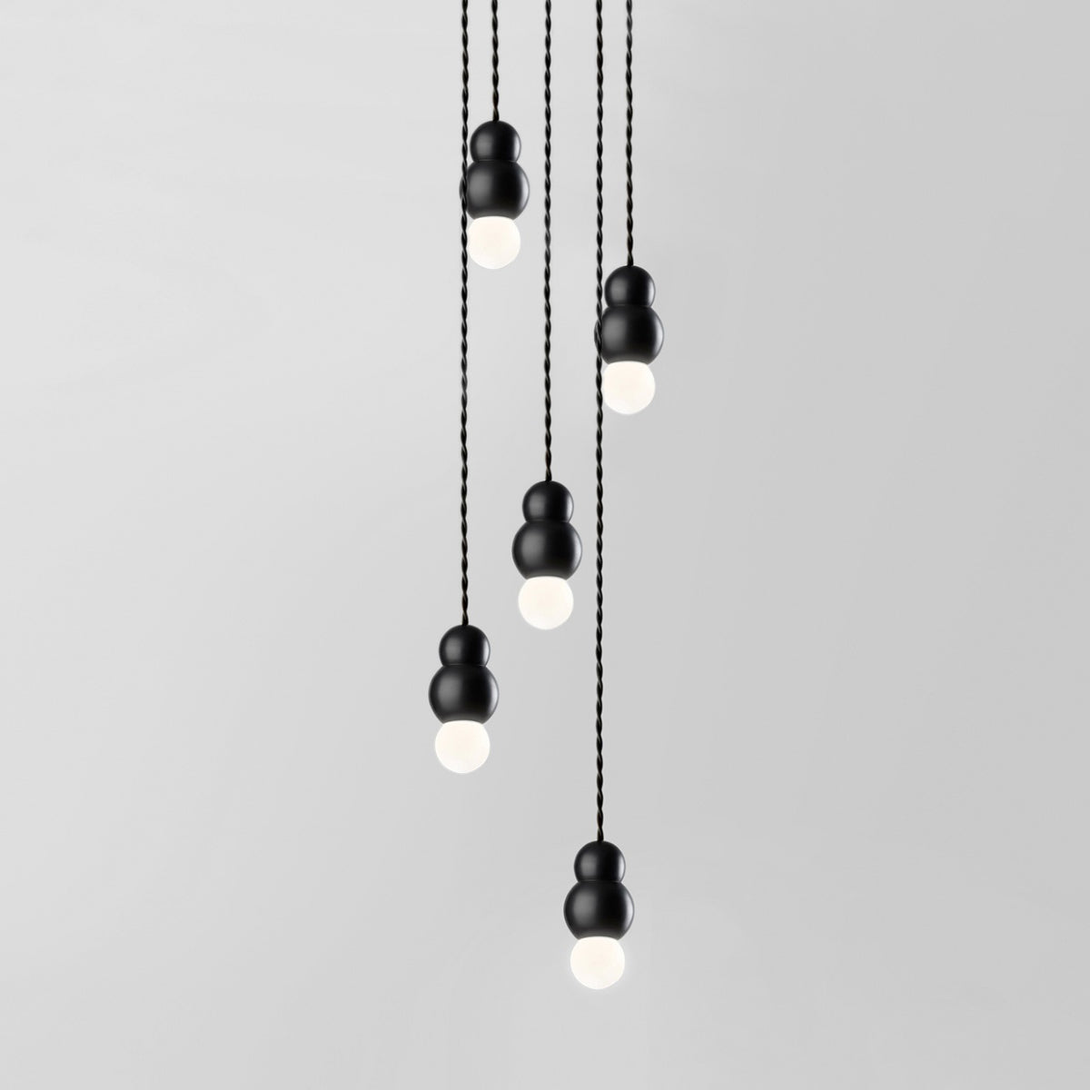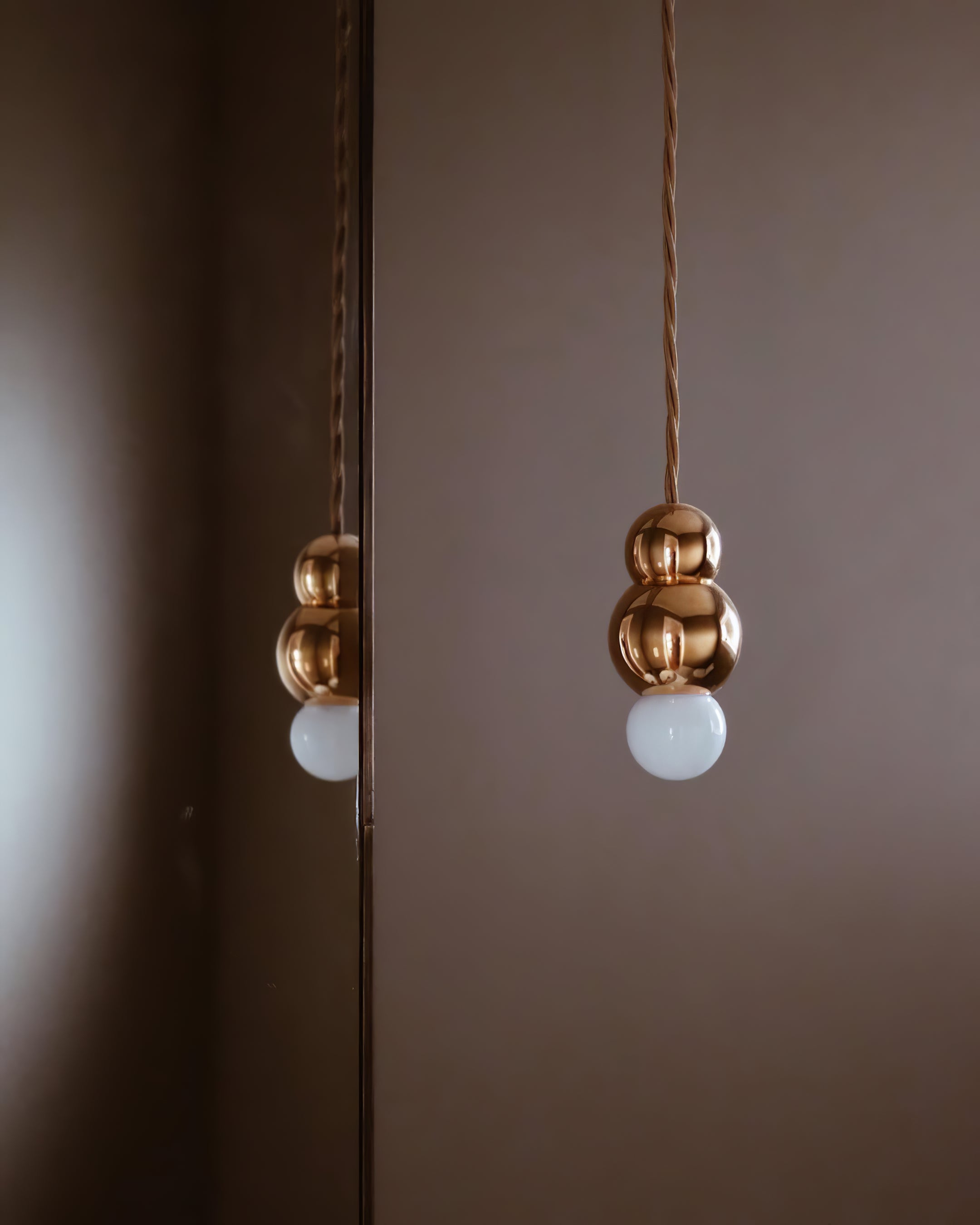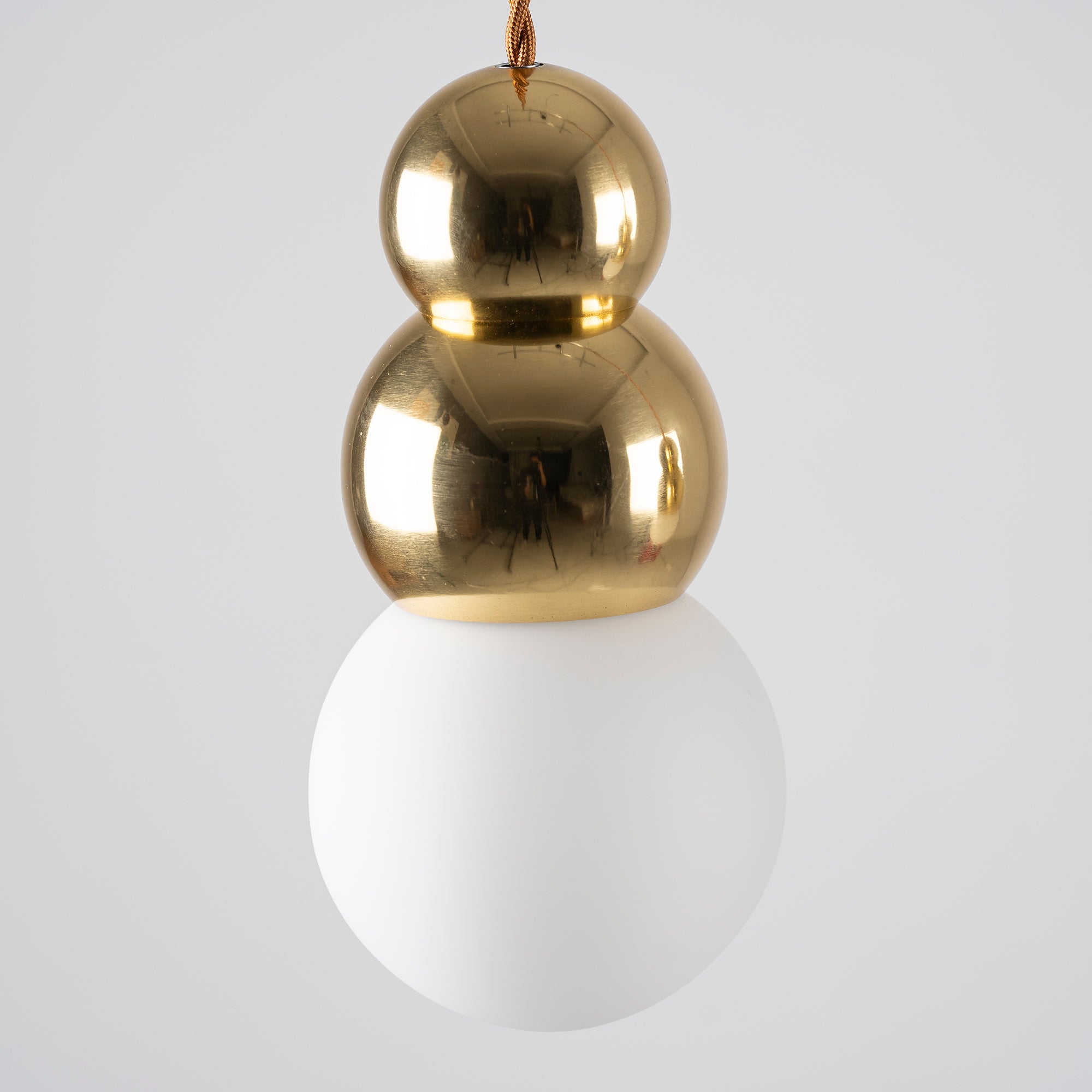 The Ball Lights consist of pendants and wall sconces. Designed around existing incandescent bulbs of that time, the project began as an exercise to abstract the bulb into a perfectly spherical ball, celebrating its perfect shape by repeating it in metal. The Ball Light pendant, part of the Ball Light series, is meant to be eye-catching in any setting but is most striking when grouped in three or more. Also available with a flex cord.