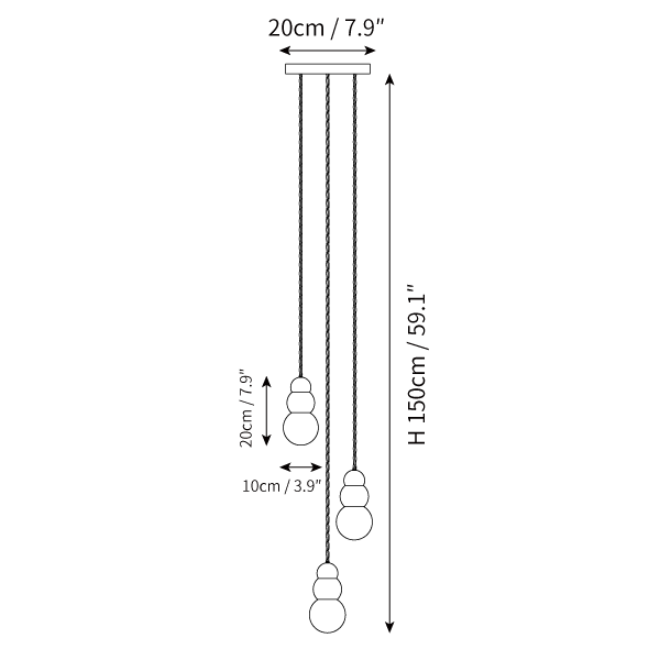 - 3 heads size: Dia 10cm x H 20cm / ∅ 3.9″ x H 7.9″