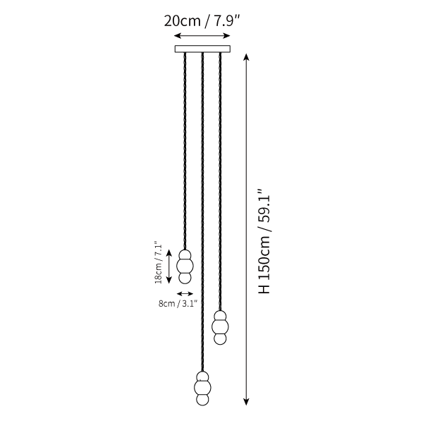 - 3 heads size: Dia 8cm x H 18cm / ∅ 3.1″ x H 7.1″