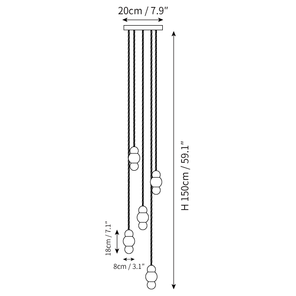 - 5 heads size: Dia 8cm x H 18cm / ∅ 3.1″ x H 7.1″