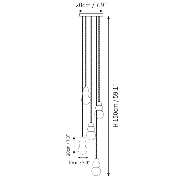 - 5 heads size: Dia 10cm x H 20cm / ∅ 3.9″ x H 7.9″