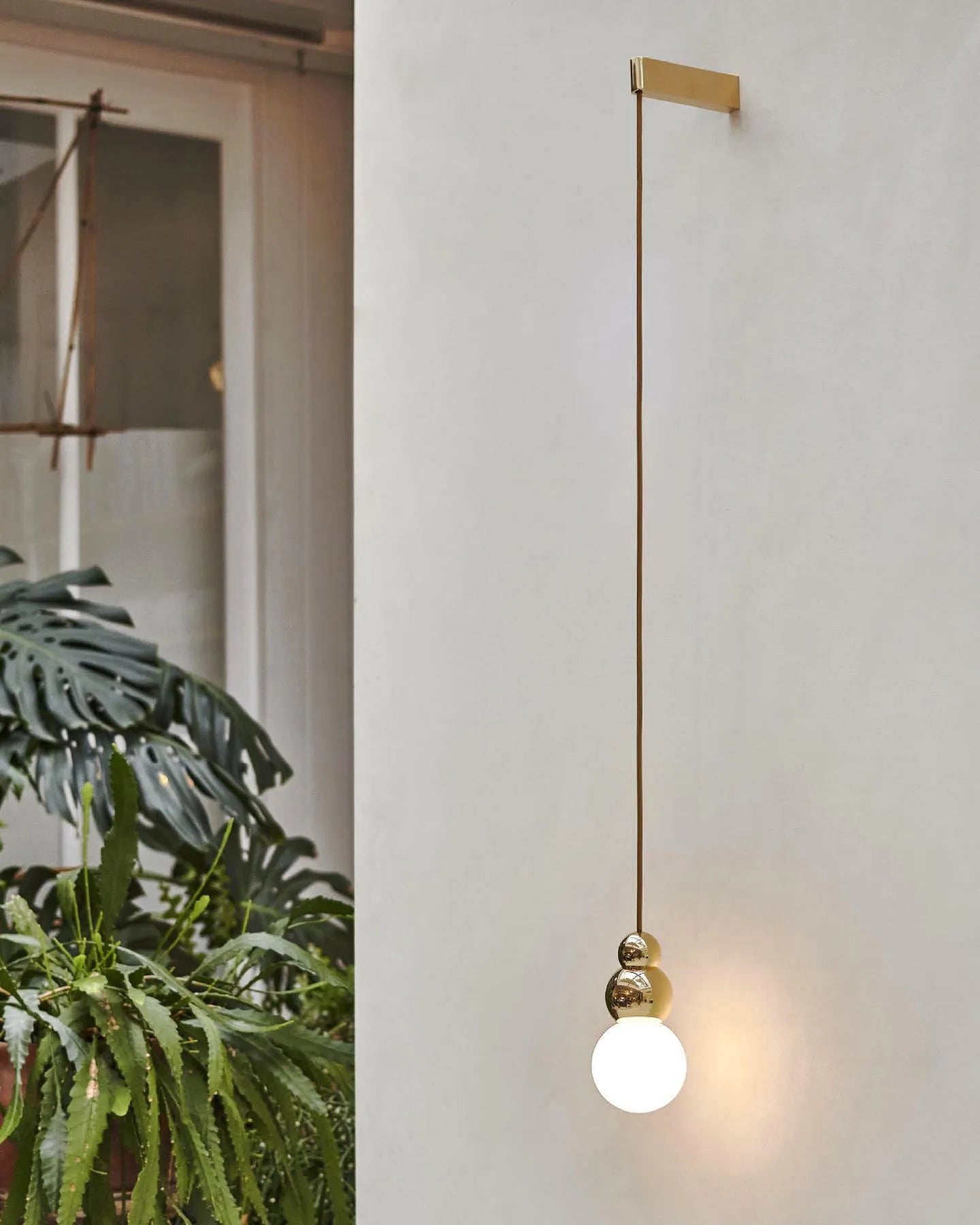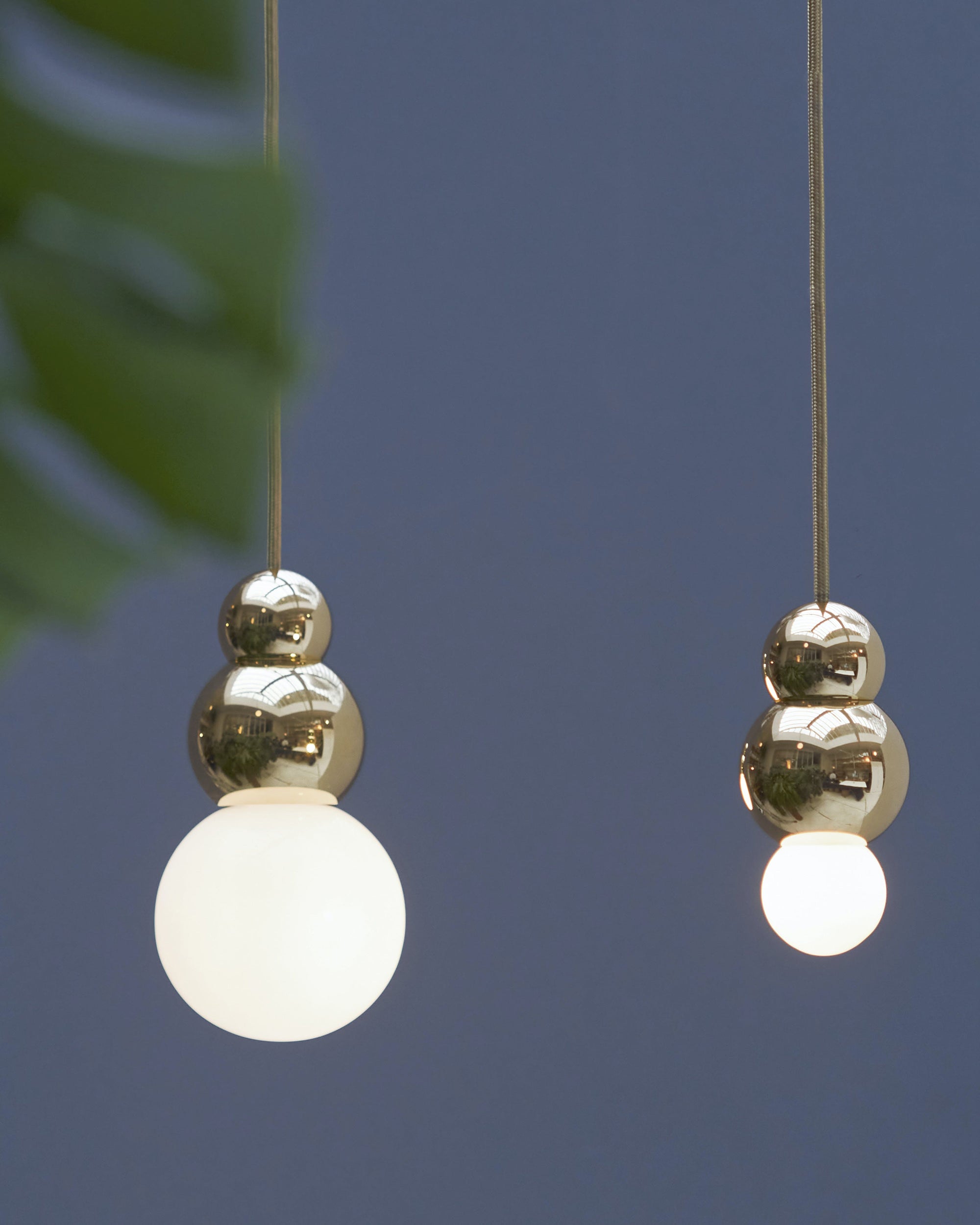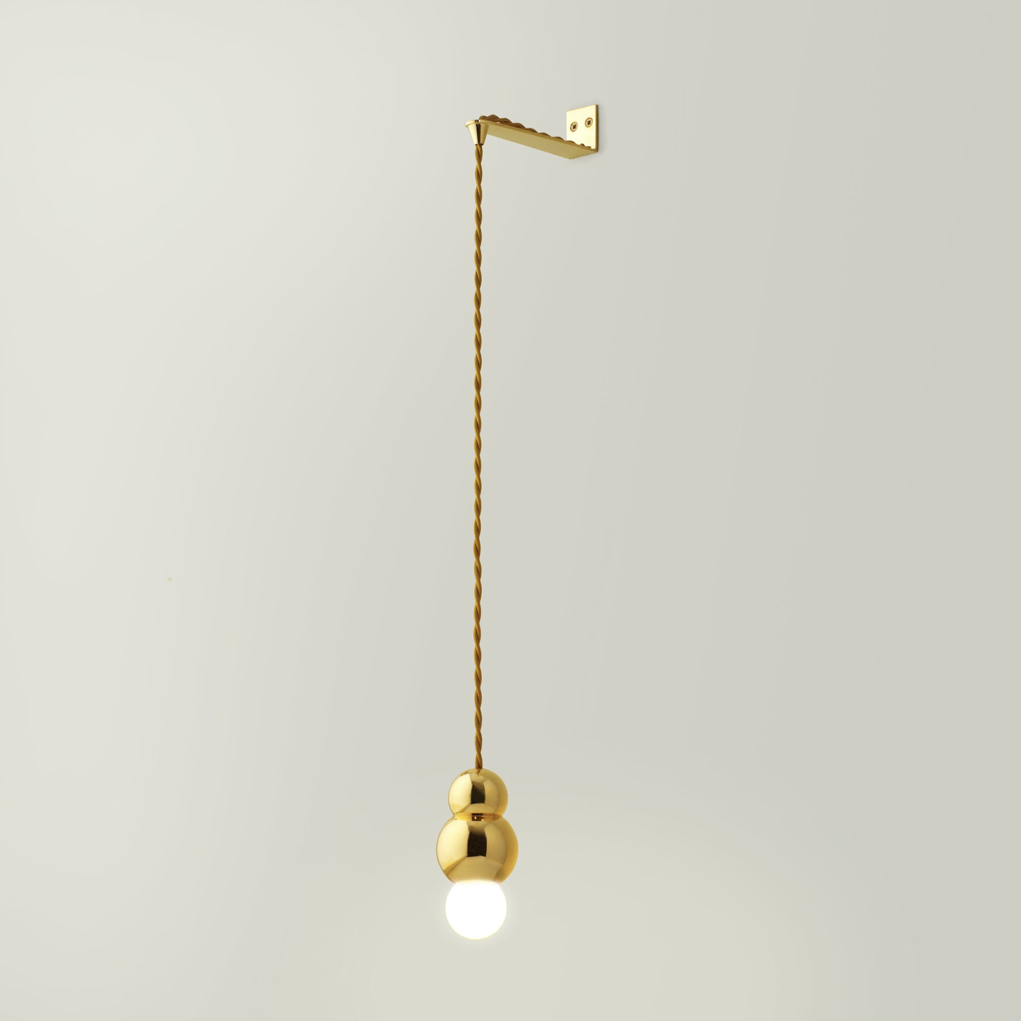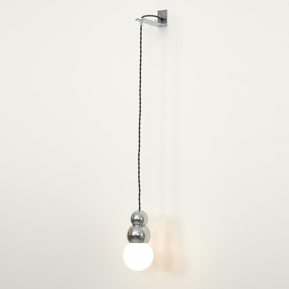 The Ball Lights consist of pendants and wall sconces. Designed around existing incandescent bulbs of that time, the project began as an exercise to abstract the bulb into a perfectly spherical ball, celebrating its perfect shape by repeating it in metal. The Ball Light pendant, part of the Ball Light series, is meant to be eye-catching in any setting but is most striking when grouped in three or more. Also available with a flex cord.