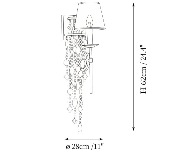 The Barfleur Wall Lamp by Mooijane combines classic elegance with a touch of modern glamour. Featuring a graceful scroll arm and an antique finish, it complements both traditional and transitional interiors. The intricately detailed bell-shaped shade and clear crystal accents create a romantic interplay of light and sparkle when illuminated. Perfect for living rooms, bedrooms, or entryways, this wall lamp adds refined charm and radiant warmth to any space.