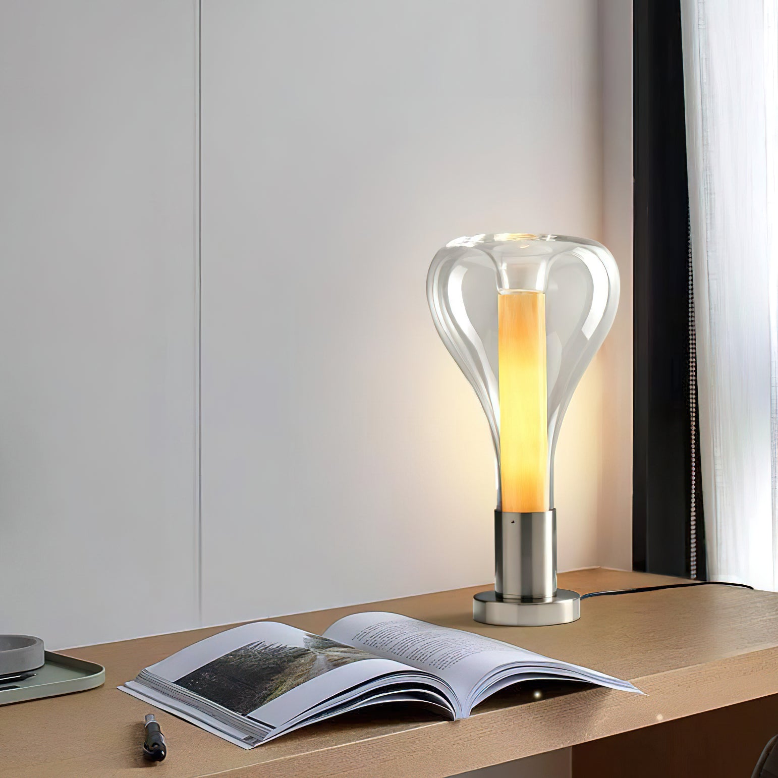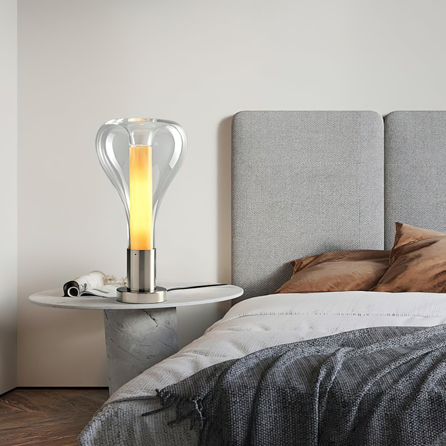 As a home decor expert, I recommend the Creative Glass Beaker Table Lamp. Its beaker design adds a unique touch to your space and offers convenience and aesthetics. With soft, warm lighting, this lamp creates a cozy and inviting atmosphere, perfect for any room. Enjoy a fancy and serene ambiance with this eye-catching lamp.
