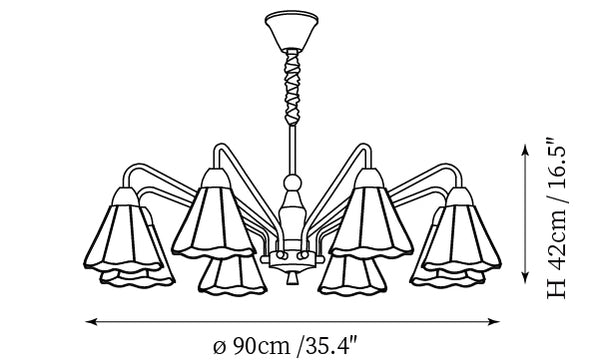 - 8-Lights Size: Dia 90cm x H 42cm / ∅ 35.4″ x H 16.5″