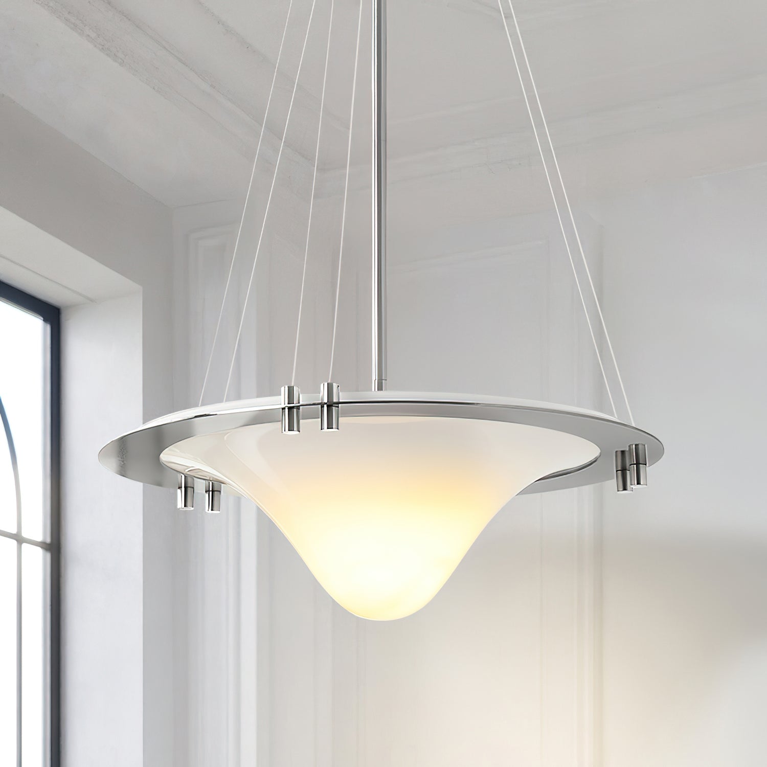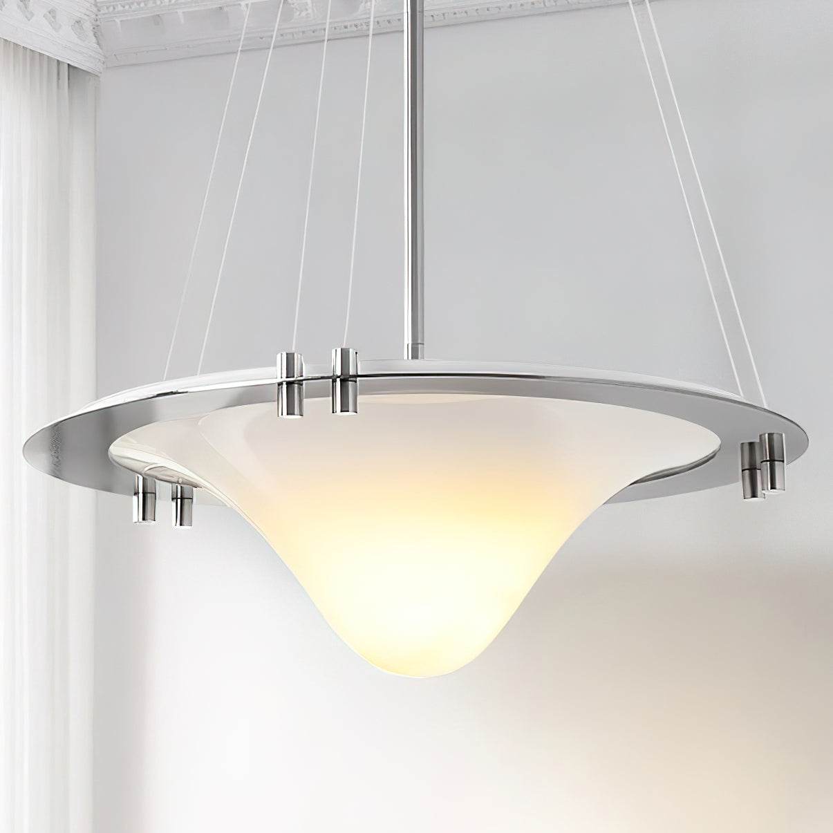 Elevate your space with the Bento pendant lamp from Mooijane. Crafted with premium materials, this elegant lighting fixture boasts a sleek chrome finish and a soft, diffused glow. Perfect for creating a warm and inviting ambiance in any room.