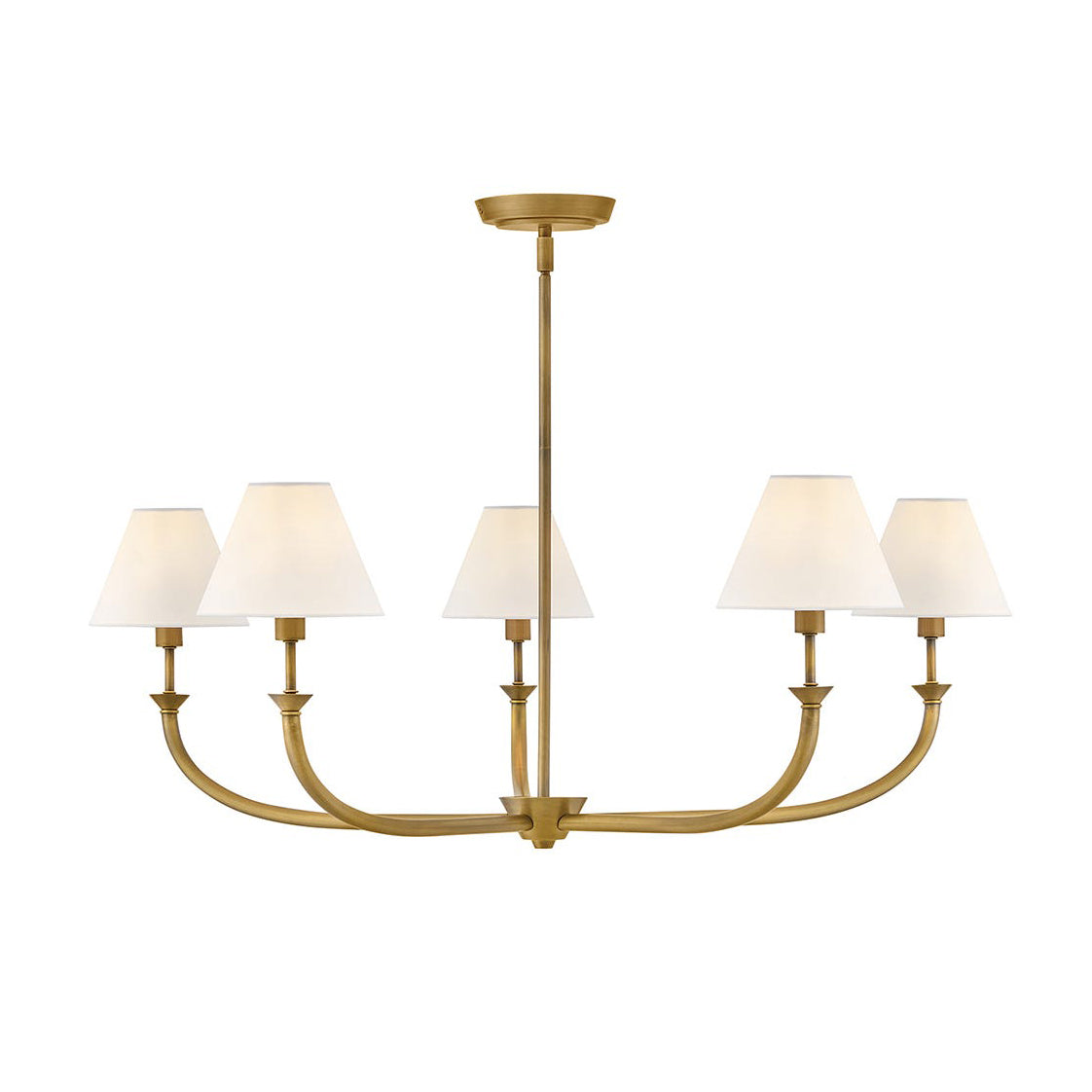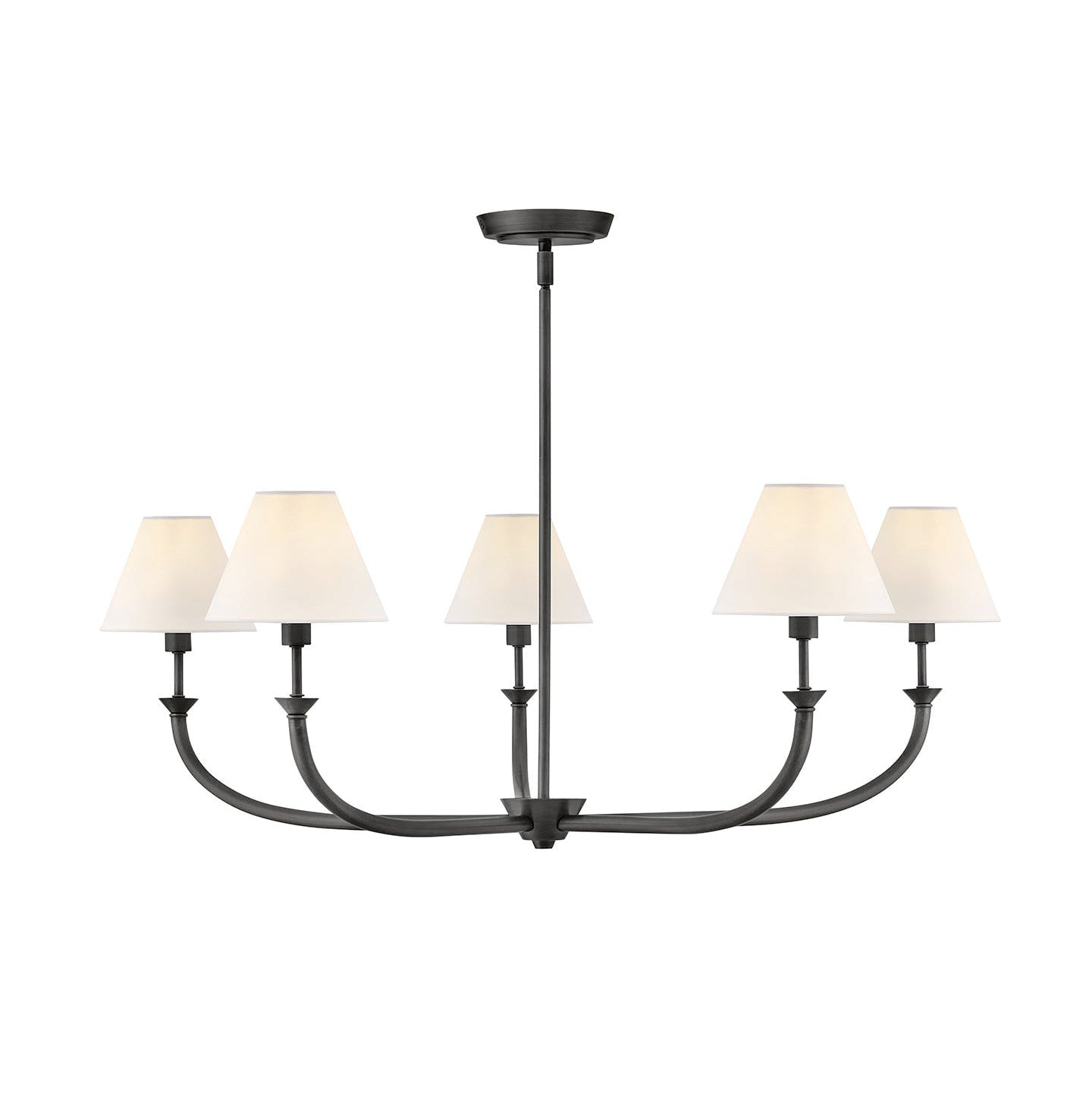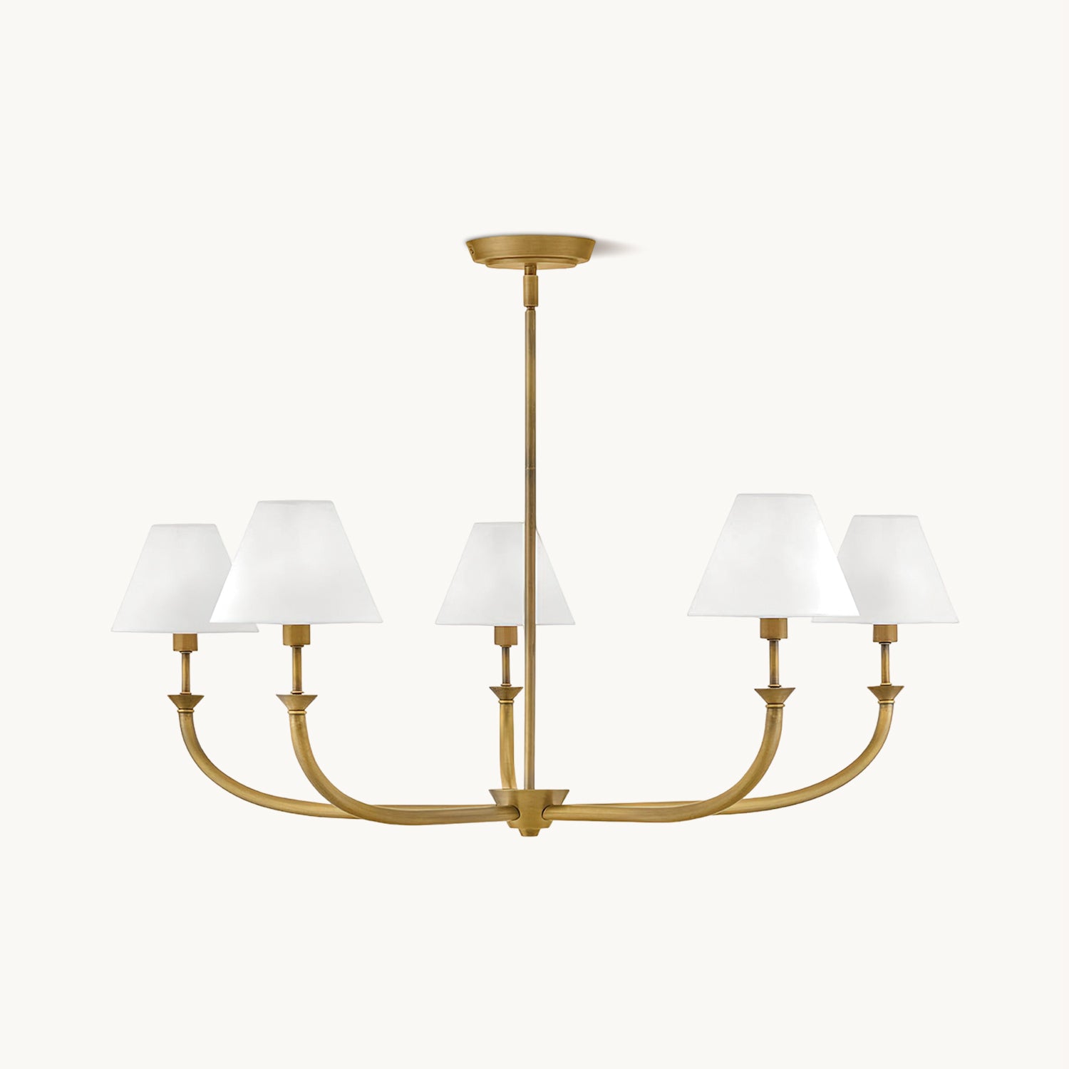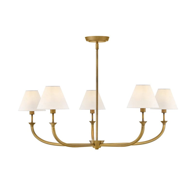 The Bianca Chandelier by Mooijane draws inspiration from traditional lighting, reimagined with a slim, contemporary silhouette. Tapered off-white linen shades gently diffuse light, creating a warm and inviting ambiance, while timeless details and classic finishes bring enduring elegance to any interior.
