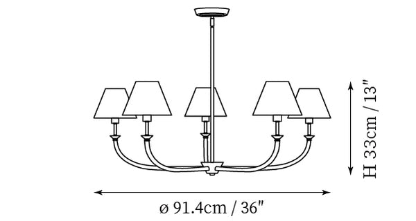 - 5-Lights Size: Dia 91.4cm x H 33cm / ∅36″ x H 13″ ( Weight: 6kg/13.2lbs )