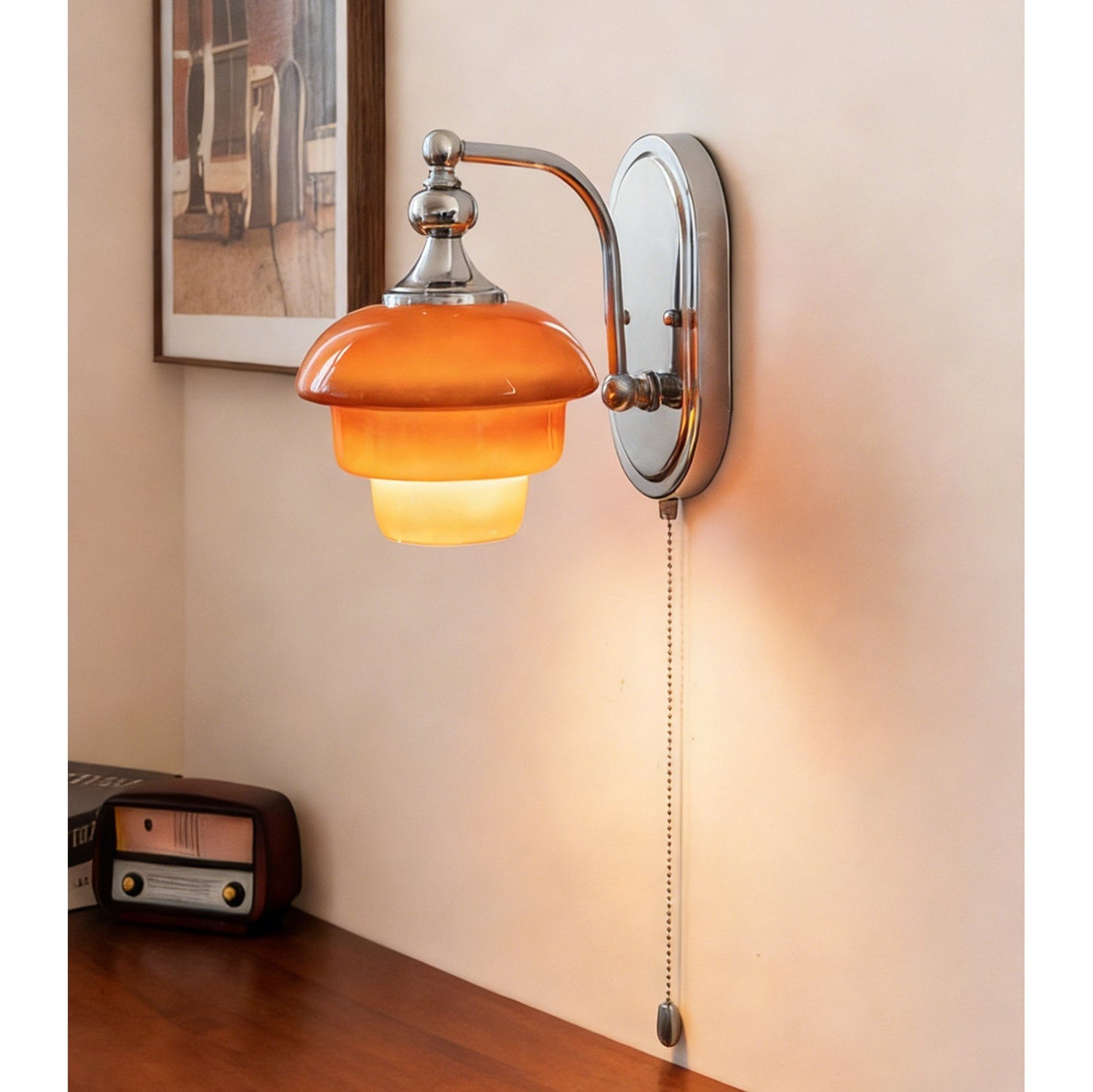 The Bidle Wall Lamp by Mooijane cleverly blends vintage style with modern sophistication, perfectly balancing the use of glass and metal materials. The smooth chrome-plated arm and base contrast beautifully with the layered glass lampshade. When lit, it emits a soft ambient light, creating a warm and comfortable atmosphere.