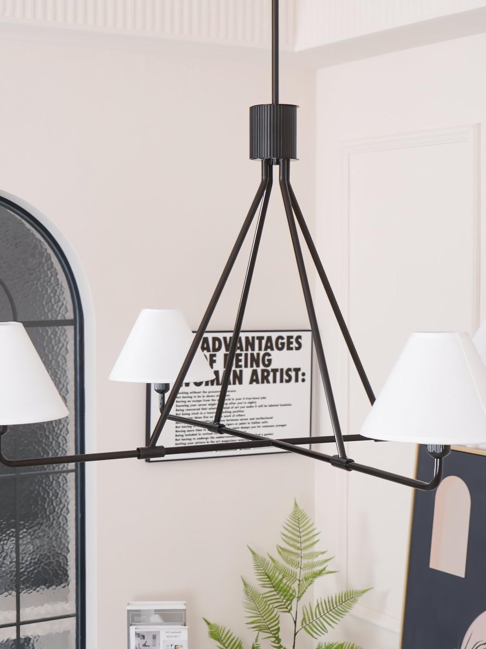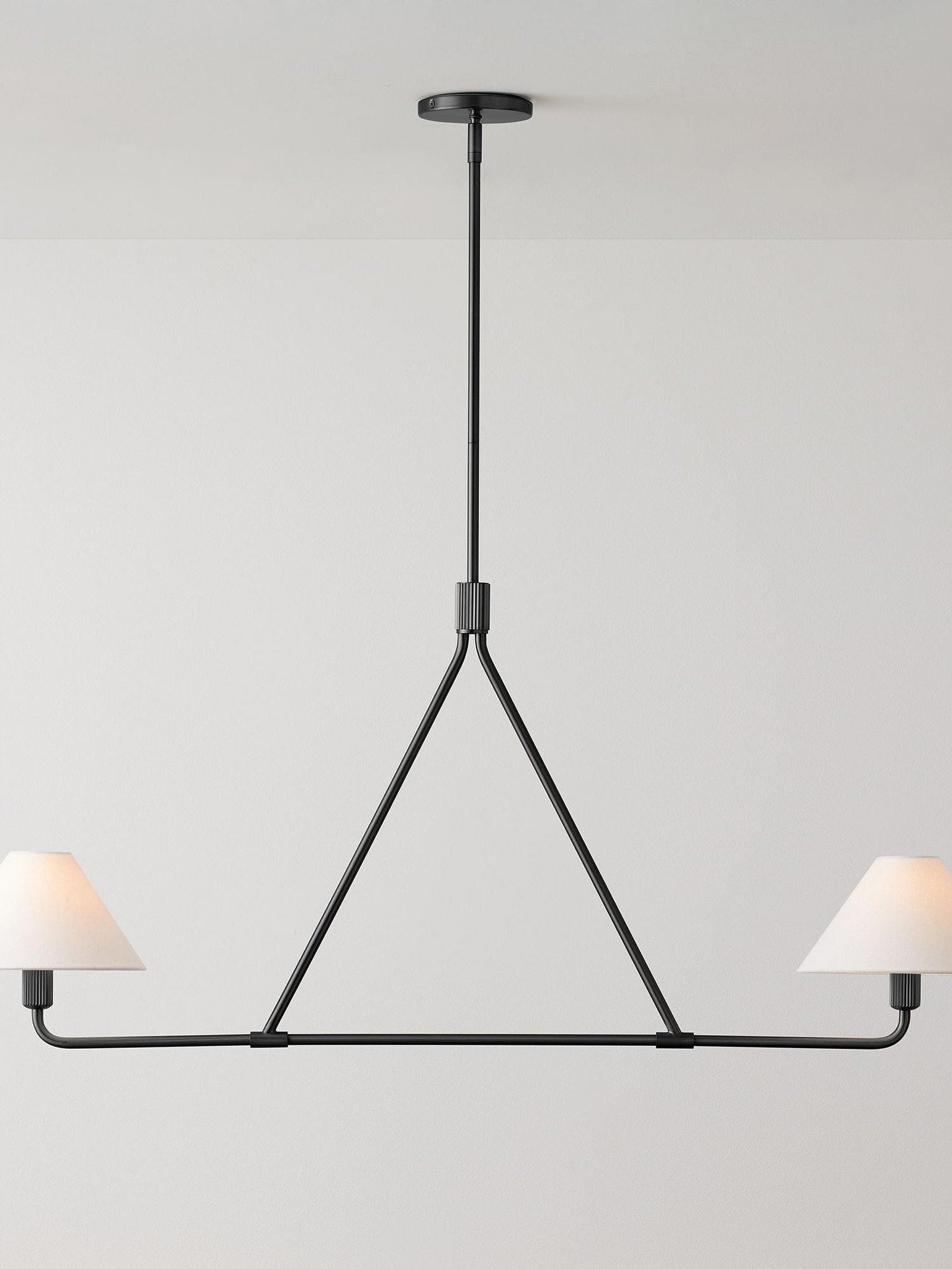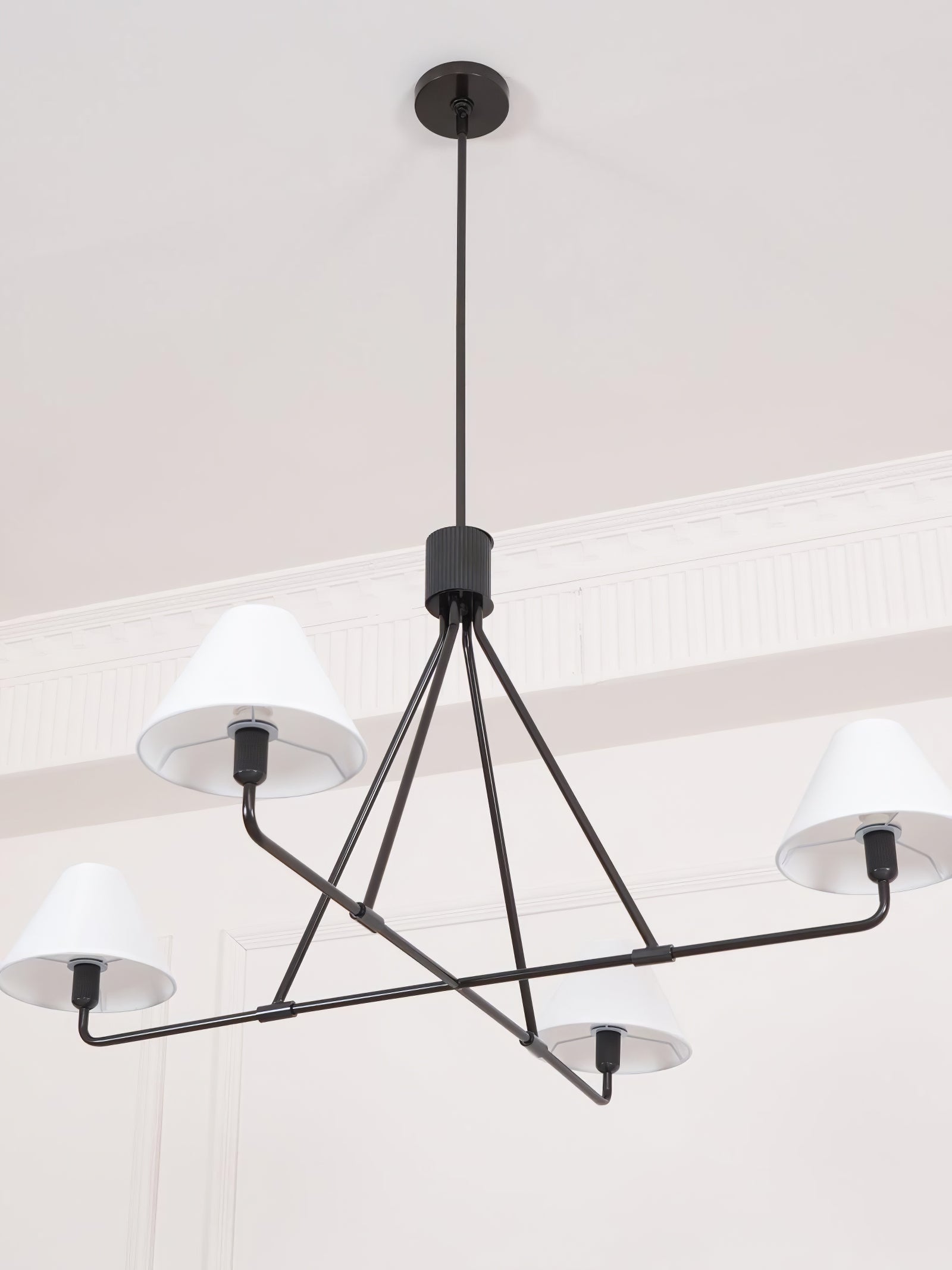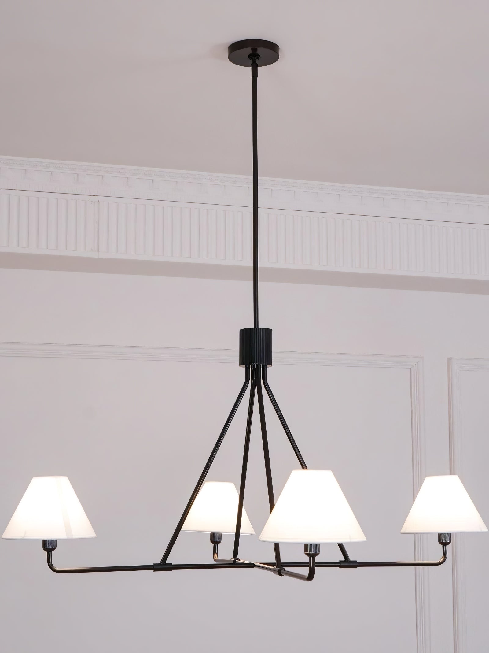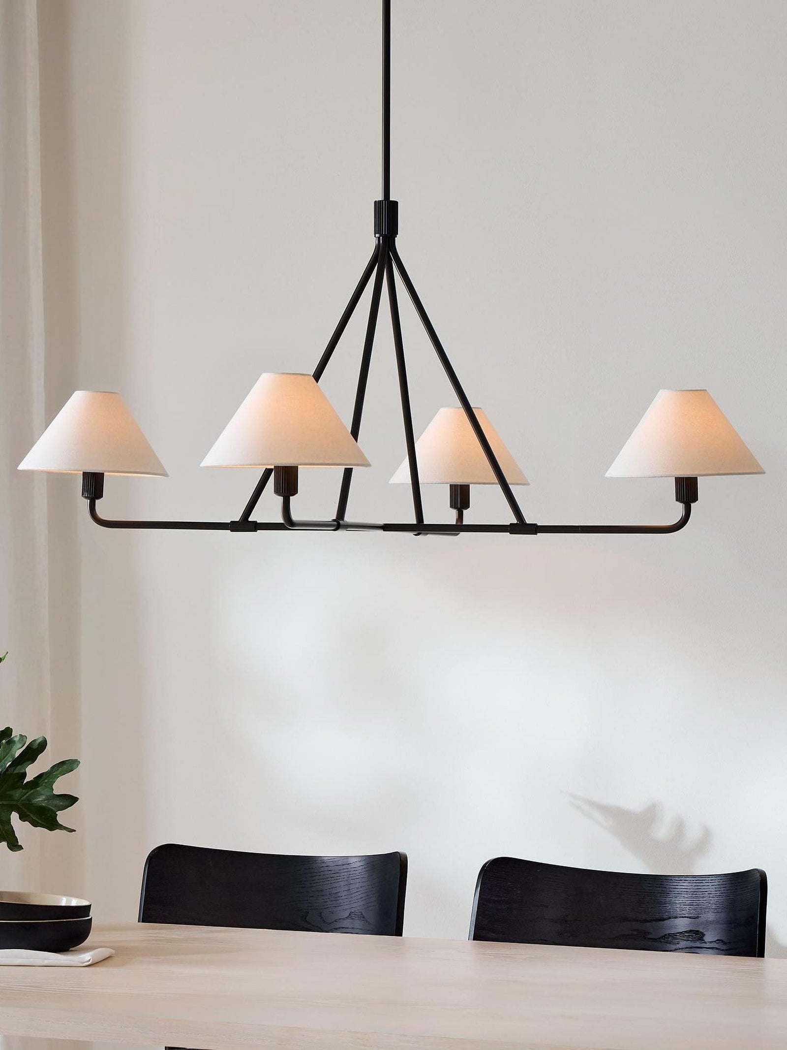 The Black Beatrix Chandelier is a minimalist masterpiece, featuring sharp angular lines and a bold architectural design. Its tapered linen shades exude modern elegance, making it the perfect statement piece above dining tables or console areas. Constructed with a durable steel frame, this contract-grade chandelier ensures long-lasting style and functionality. Ideal for spaces seeking a balance of contemporary flair and timeless charm.