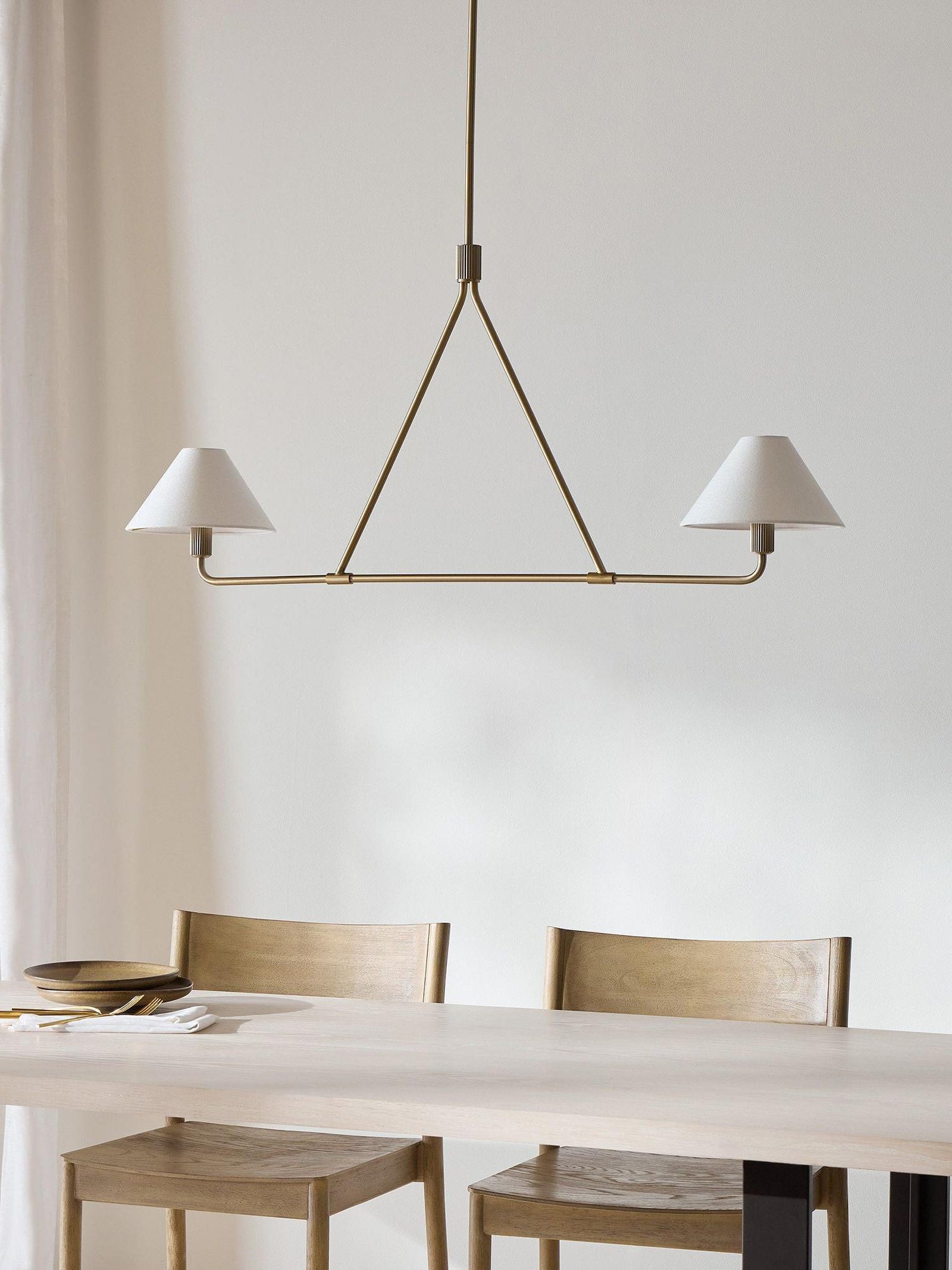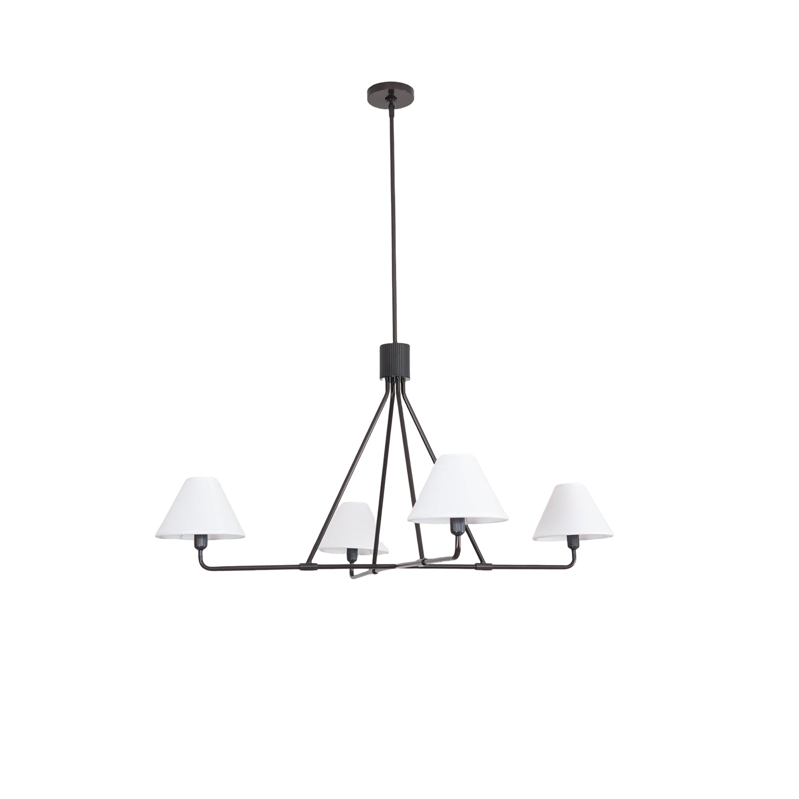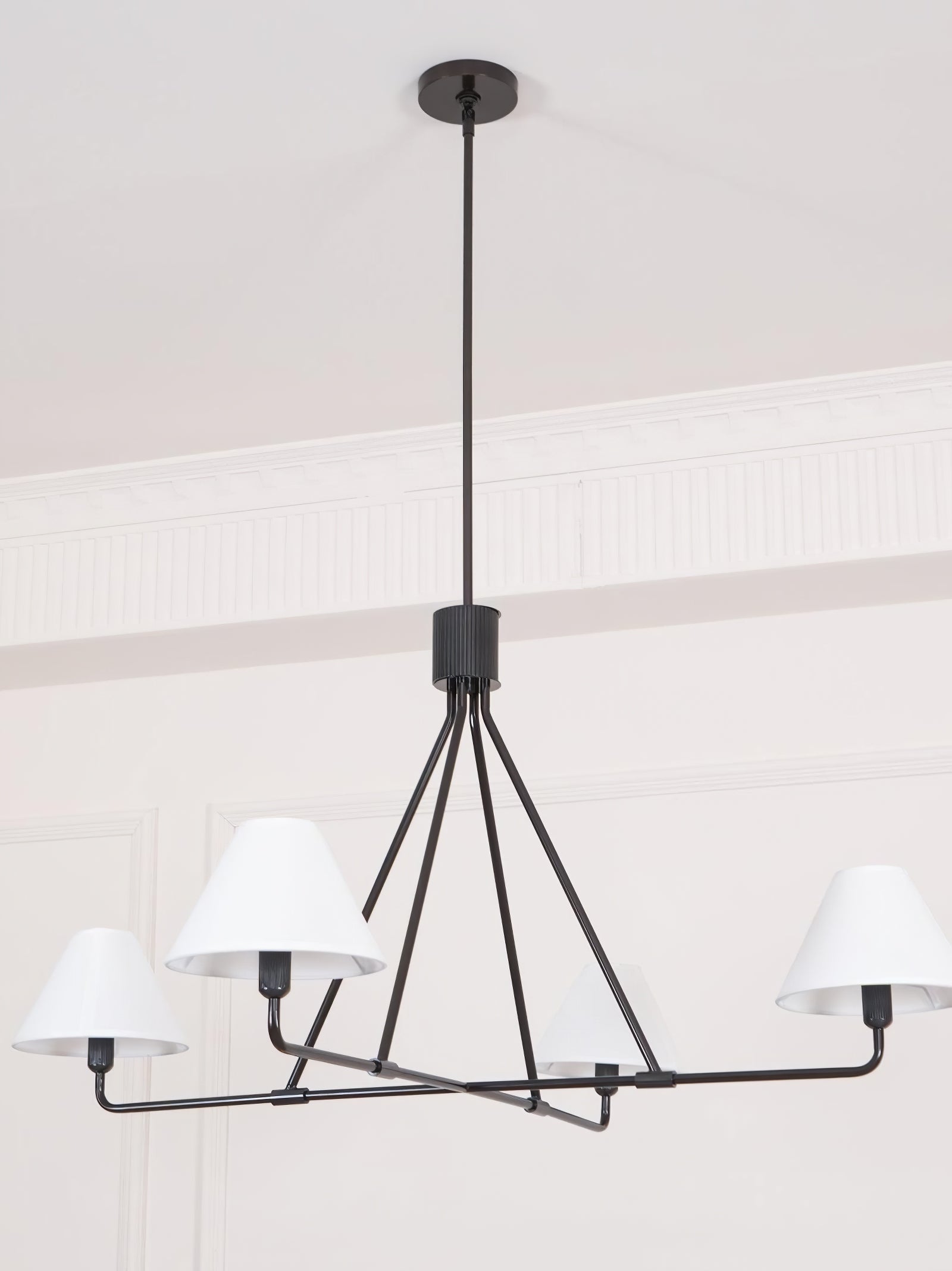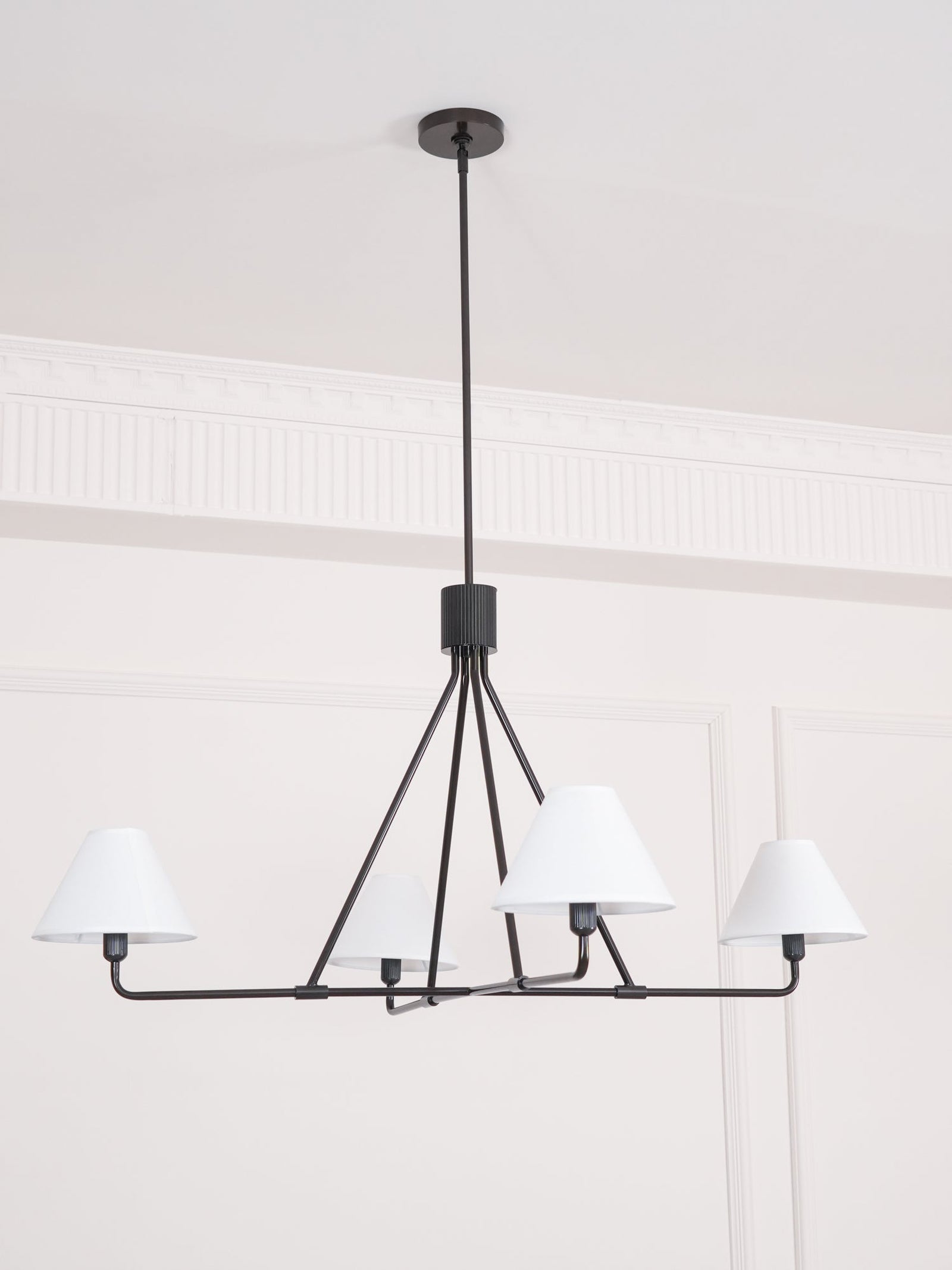 The Black Beatrix Chandelier is a minimalist masterpiece, featuring sharp angular lines and a bold architectural design. Its tapered linen shades exude modern elegance, making it the perfect statement piece above dining tables or console areas. Constructed with a durable steel frame, this contract-grade chandelier ensures long-lasting style and functionality. Ideal for spaces seeking a balance of contemporary flair and timeless charm.