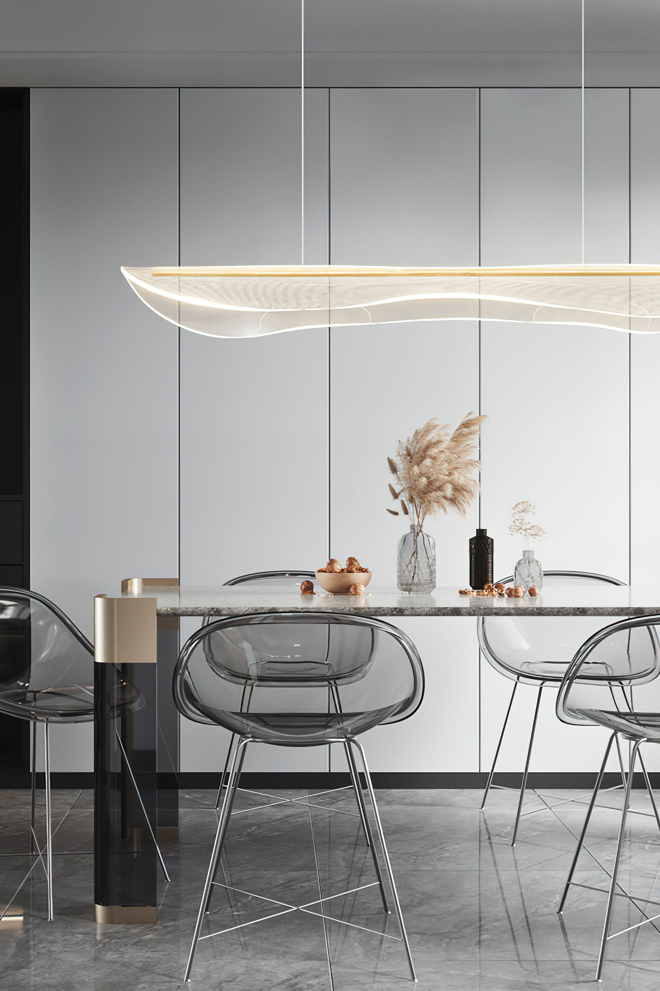 This Blk Dining Room Chandelier is the perfect addition to your dining room, combining artistic and versatile style with expert craftsmanship. Each piece is expertly polished, producing a luster with a fine texture and sophisticated elegance. Made of thickened PM MA acrylic, its light weight make it an ideal choice for restaurants, its engraving light and uniform, sure to highlight your sense of design. Enjoy lasting and superior quality with this beautiful chandelier.