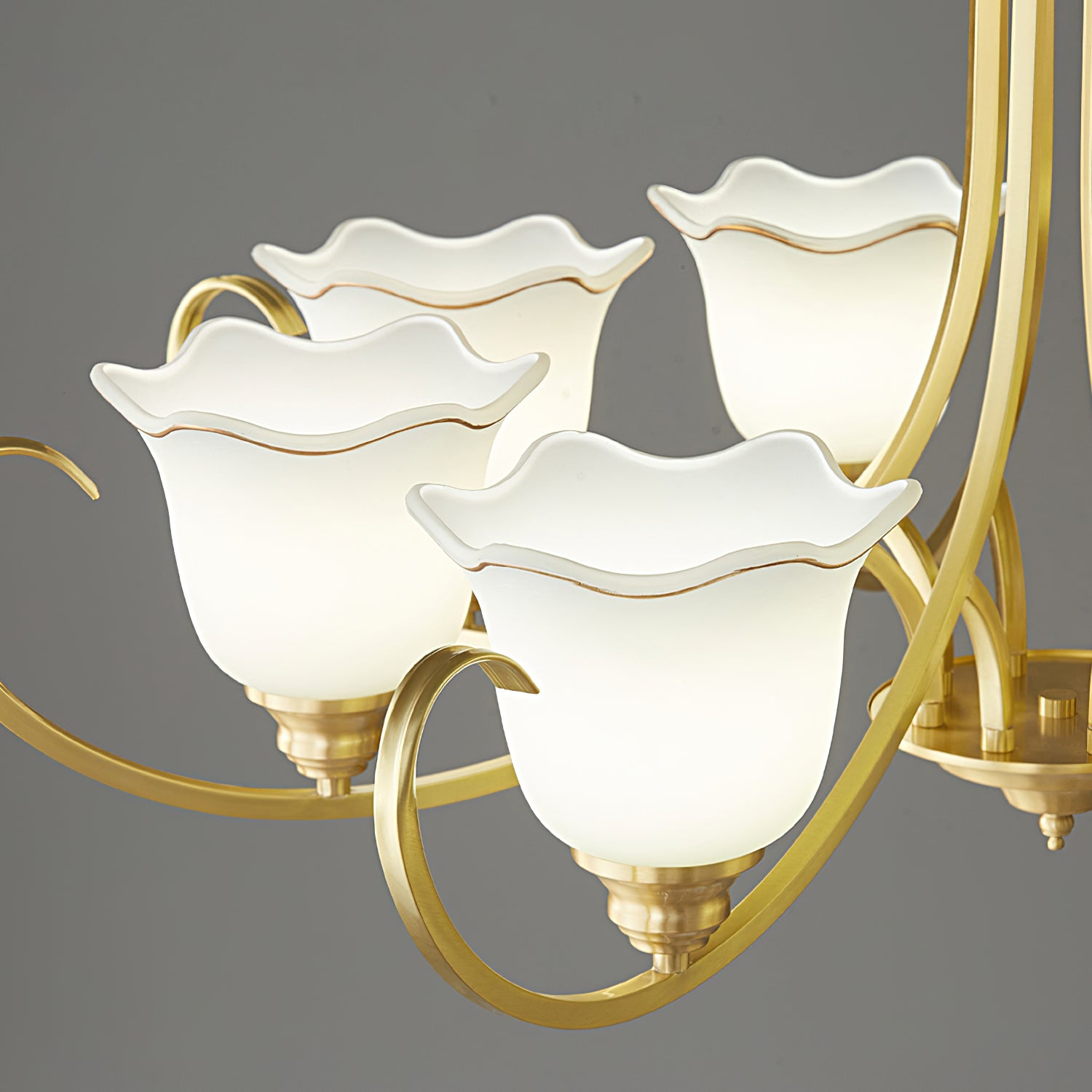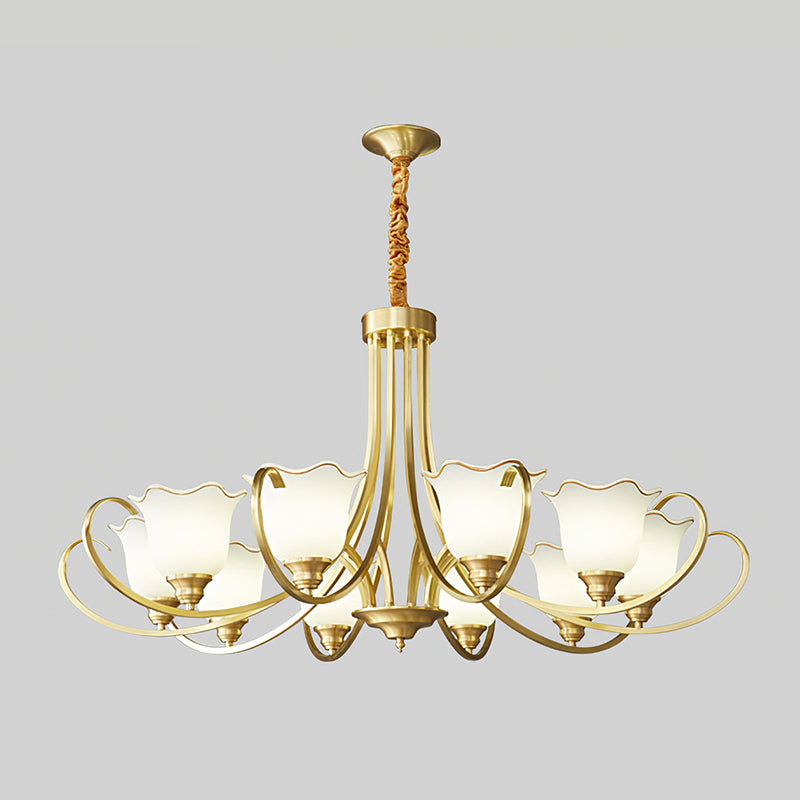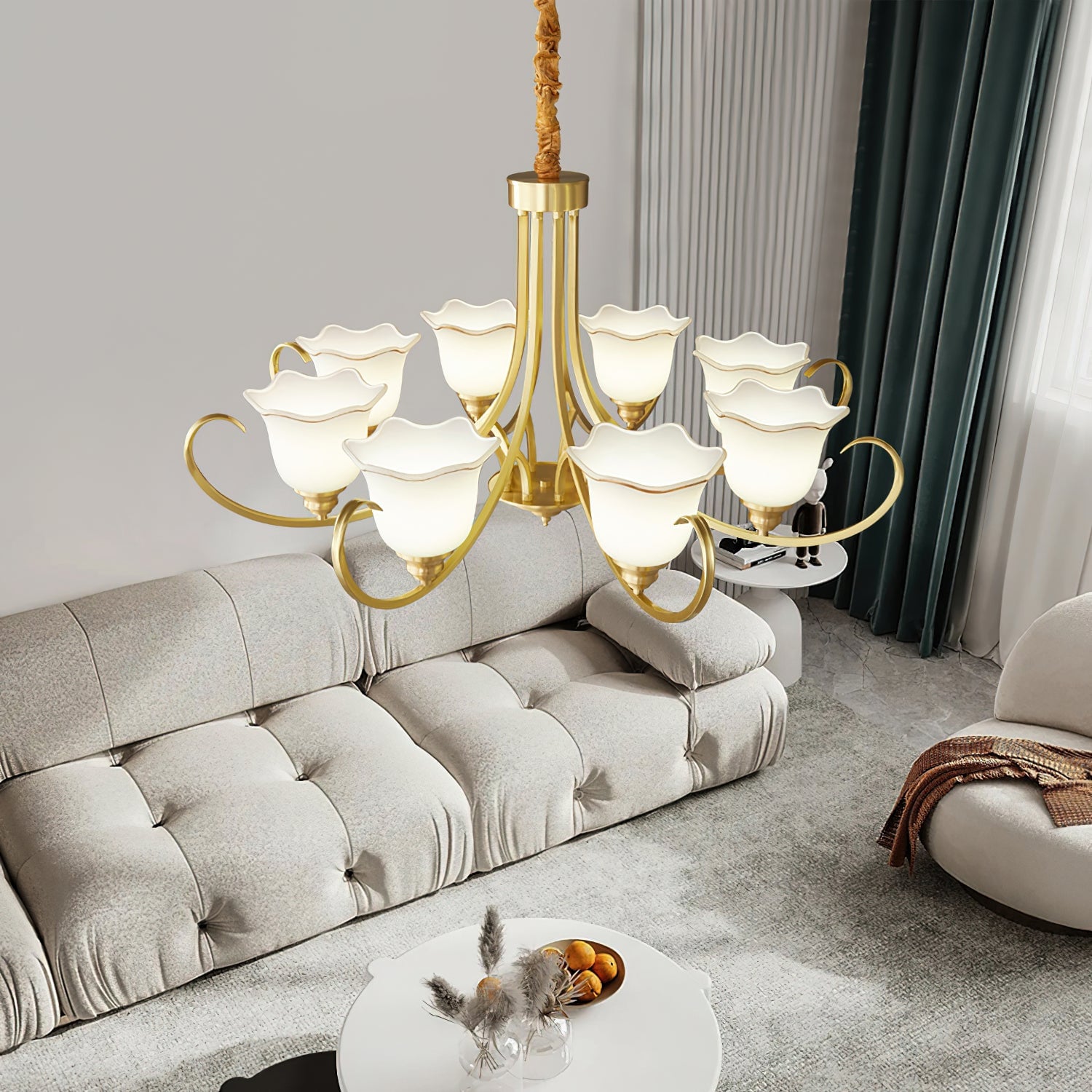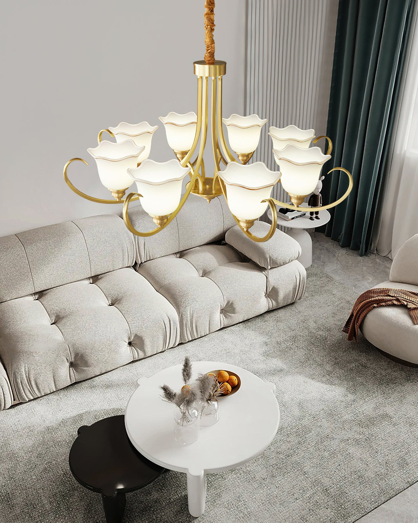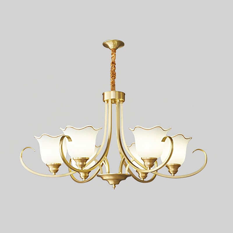 Bring a touch of elegance to your living room with our Blooming Flower Glass Chandelier. This American-style chandelier features a sleek glass shade and brass body that will add a modern and sophisticated touch to your living room. Bring the beauty of nature into your home with this stunning piece.