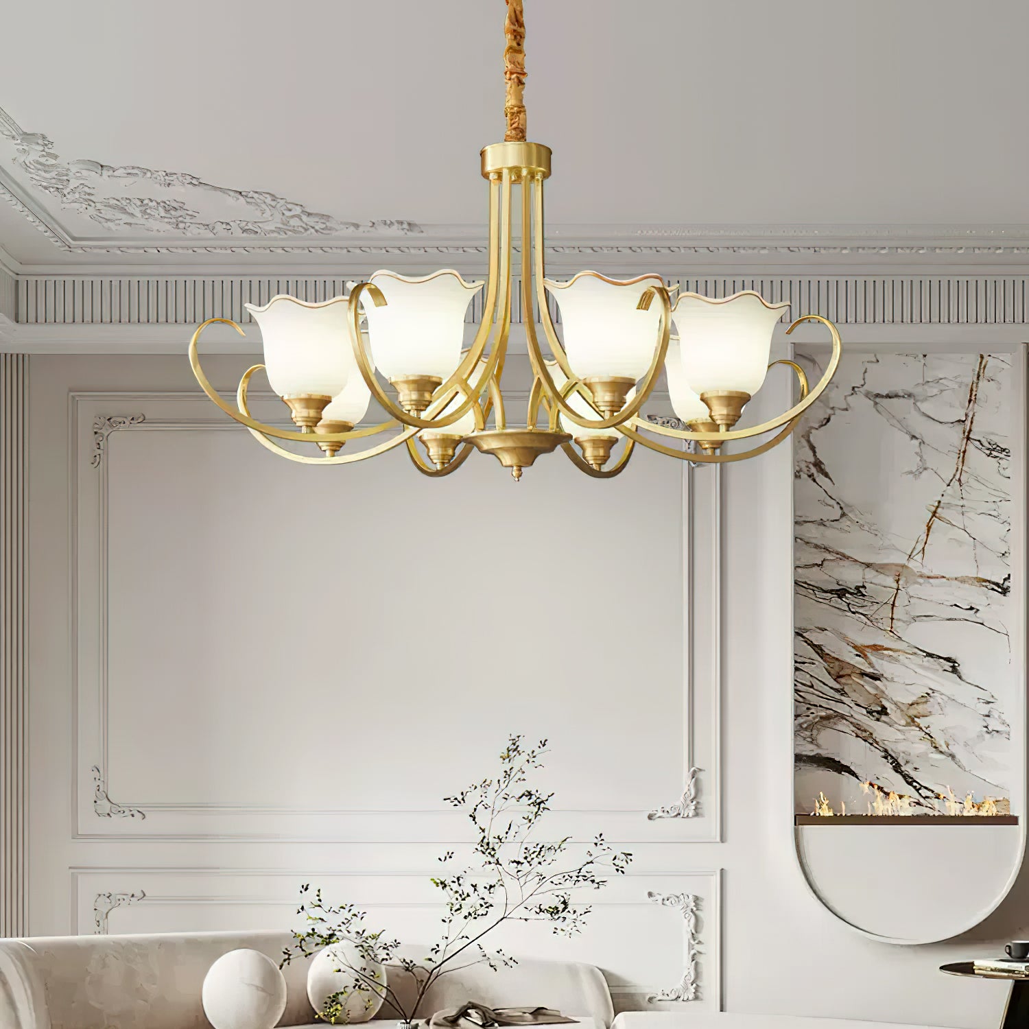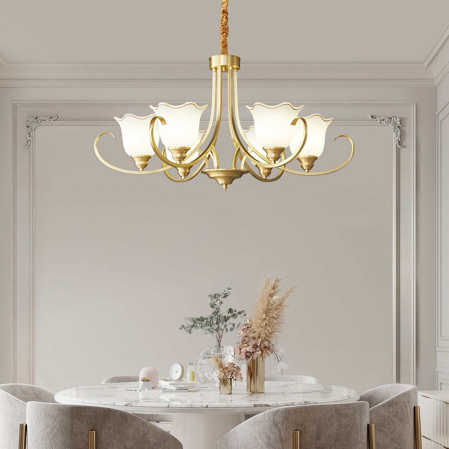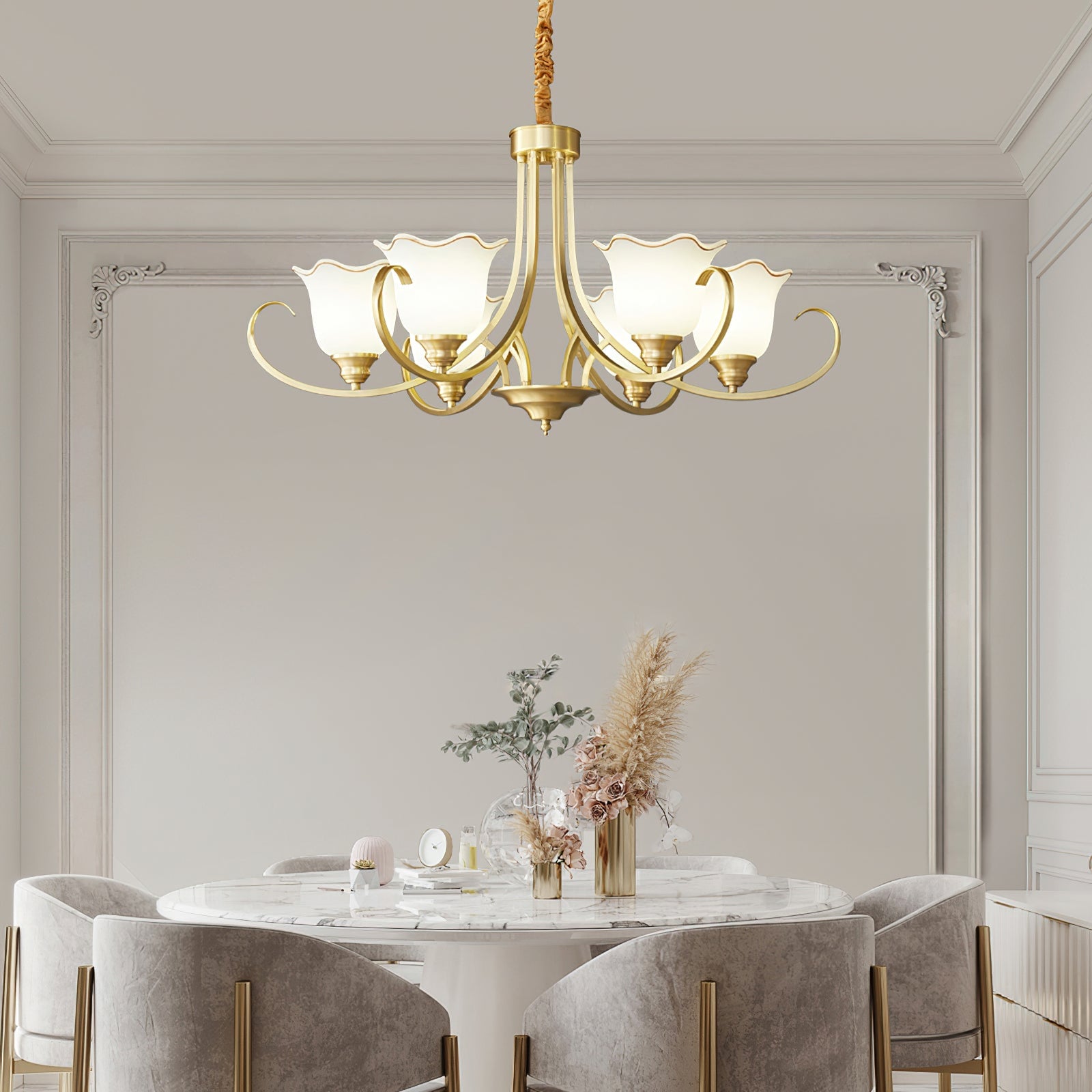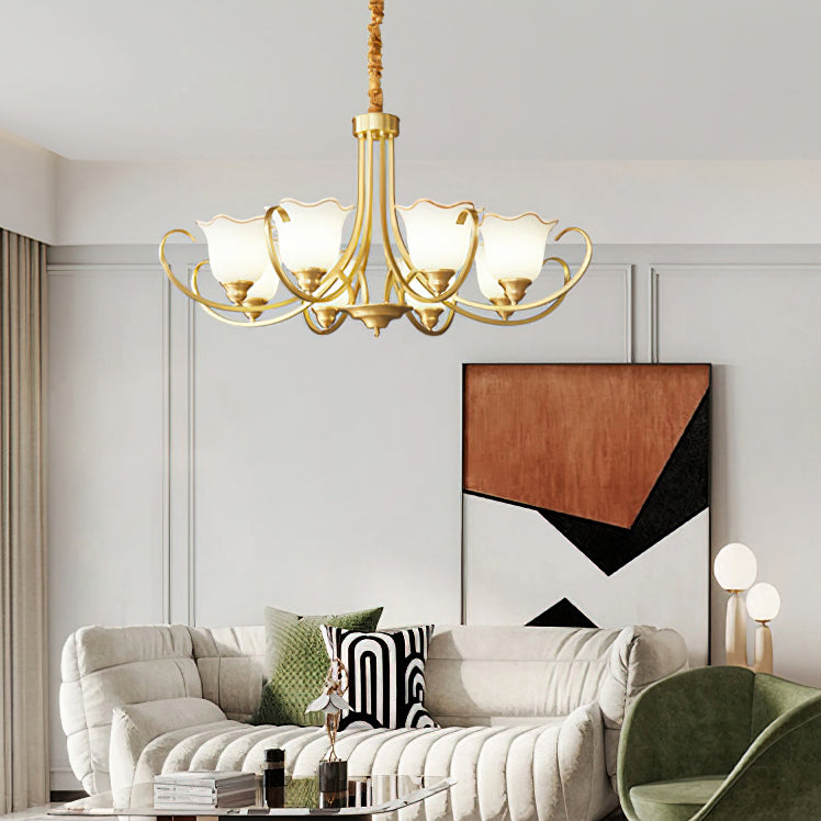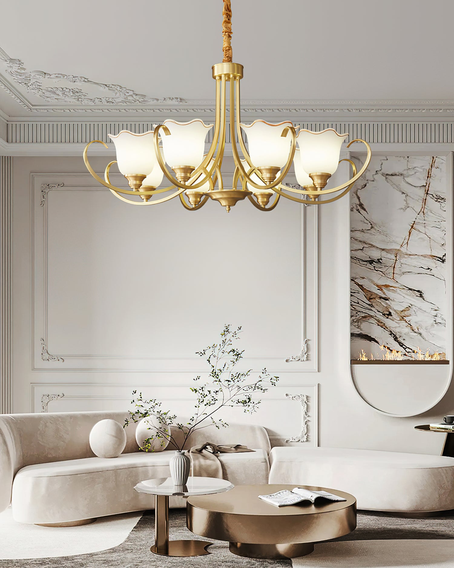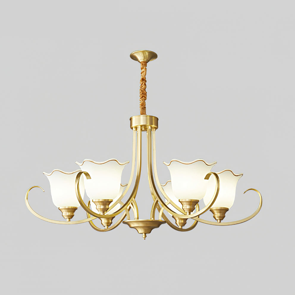 Bring a touch of elegance to your living room with our Blooming Flower Glass Chandelier. This American-style chandelier features a sleek glass shade and brass body that will add a modern and sophisticated touch to your living room. Bring the beauty of nature into your home with this stunning piece.